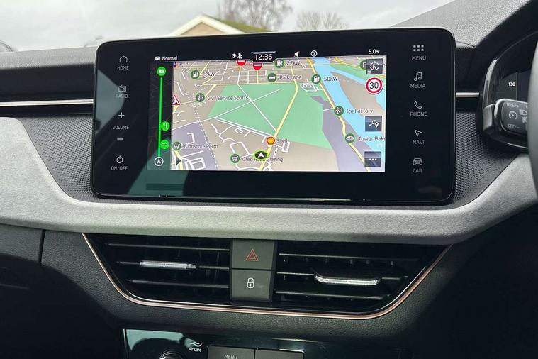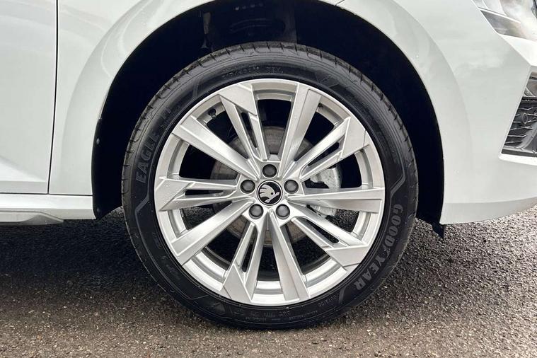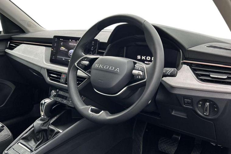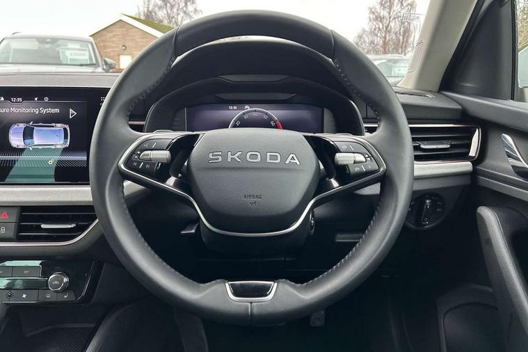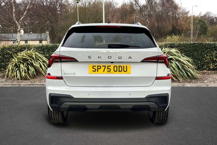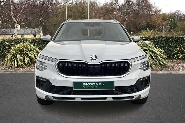 Advanced driver attention and drowsiness monitor, Bluetooth system, E-call, Front assist system, PAS, Rear parking sensors, Rear view camera, Service indicator, Speed limiter, Traffic sign recognition, Virtual cockpit with 10.25" display, Voice control system, Wireless smartlink, 4 USB C ports, 8 Speakers, 9.2" Skoda navigation display, DAB Digital radio, Auto dimming rear view mirror, Automatic headlight control with coming home and leaving home feature, Body colour bumpers, Body colour door mirrors and handles, Chrome grille surround, Chrome roof rails with chrome window surround, Front and rear electric windows, Heated rear window, LED daytime running lights, LED high beam, LED low beam, LED third brake light, Light sensors, Privacy glass, Rear side wing doors, Rear wiper, Ticket holder inside windscreen, 12V socket in luggage compartment, 3 seat bench in 2nd row, Accent black door inserts, Ambient lighting in white/red, Cargo elements, Chrome inner door handles, Copper hotstamping, Driver and passenger sun visors with vanity mirror, Dual zone climate control, Front and rear roof lights, Front centre armrest, Front head restraints, Glove compartment with illumination, Height adjustable driver seat, Height adjustable front passenger seat, Ice scraper, Inner circulation control with pollen filter, ISOFIX on front passenger seat, Isofix preparation for back seats, Leather gearknob and handbrake lever, Lodge cloth upholstery, Manual lumbar support for front seats, Net package and top tether hooks in boot space, Net under rear shelf, Overhead glasses storage compartment, Pocket on the back of both front seats include mobile phone pockets, Rake/reach adjustable steering wheel, Reading lights, Rear centre armrests, Single front passenger seat, Suedia grey decor inserts, Textile floor mats, Third rear headrest, Top tether for front passenger seat, Umbrella in driver's door, Convenience pack - Kamiq, 3x3 point rear seatbelts, Airbags - driver and front passenger, Disc brakes, ESP, Extended and predictive pedestrian/cyclist protection, Front passenger airbag deactivation switch, Front side airbags with curtain airbags, Hill hold control, Manual leather parking brake, Manual rear child locks, One tone horn, Seatbelt reminder for driver an co-driver, Traction control, Tyre pressure monitor, Anti-theft alarm system with interior monitoring, backup horn, towing protection and remote central locking with SAFE system, Anti-theft wheel bolts, Electronic engine immobilizer,
