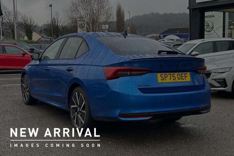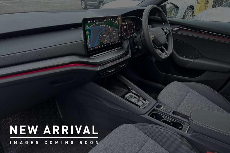 1x USB Typc C port in rear view mirror, 4x USB Type C ports - 2x in front centre console and 2x in rear (45W), Drive mode selection, Driver fatigue sensor, eCall emergency system, Front assist system, Progressive dynamic steering, Traffic sign recognition, Turn Assist, Virtual Cockpit - 10.25" digital display, Voice control system, Wireless charging (15W) with cooling function, Wireless SmartLink for Apple CarPlay and Android Auto, Sports suspension with 15mm lower, 13" touchscreen display with navigation, DAB Digital radio, Aero front windscreen wipers with intermittent function, Auto dimming rear view mirror, Body colour bumpers, Body colour door handles, Chrome strip in lower front bumper, Electric front and rear windows, Exterior gloss black sports styling including front grille, window surrounds, door mirrors and badging, Gloss black diffuser, Gloss black spoiler, Heated rear windscreen, High beam control, High level third brake light, Ice scraper in fuel cap, LED daytime running lights, Logo projection in front doors, Rain and light sensors, Rear fog light on one side and reversing lights on both sides, Rear privacy glass, Rear side wing doors, Rear wiper, 12 volt socket in boot, 3 rear headrests, 3 seat bench in 2nd row, 4 foldable roof handles, Aluminium pedals, Boot net programme, Electric auxiliary air heater, Front head restraints, Front sport seats, Heated front seats, Illuminated glovebox, Interior door handles in dark chrome, Jumbo Box storage, Luggage compartment lighting x2 lights, Mechanical rear seat release from boot, Parcel shelf - folding, Single front passenger seat, Steering wheel in black leather with black stitching, Storage compartment under passenger seat, Storage compartments in left and right of boot, Sun visors with mirrors, Sunglasses storage, Three spoke leather sports multifunction steering wheel with paddles, Ticket holder, Umbrella in door panel, Unsplit rear bench seat, split folding backrest with centre armrest with cupholder, SportLine Design Selection pack - Octavia, 3x3 point rear seat belts, Alarm with interior monitoring, tilt sensor and back up horn, Curtain airbags and front side airbags, Driver and front passenger airbags, Drivers knee airbag, Electronic parking brake, ESC including ABS, EBV, MSR, ASR, EDS, HBA, DSR, Front central airbag, Hill hold assist, ISOFIX on front passenger seat and outer rear seats, Passenger airbag deactivate switch, Three point seat belts in front and rear, Two tone horn, Tyre pressure monitor, Visual and acoustic seat belt reminder, Warning reflectors in front door, Anti-theft wheel bolts, Keyless entry and start/stop, Remote central locking, Gloss black air vent surrounds,