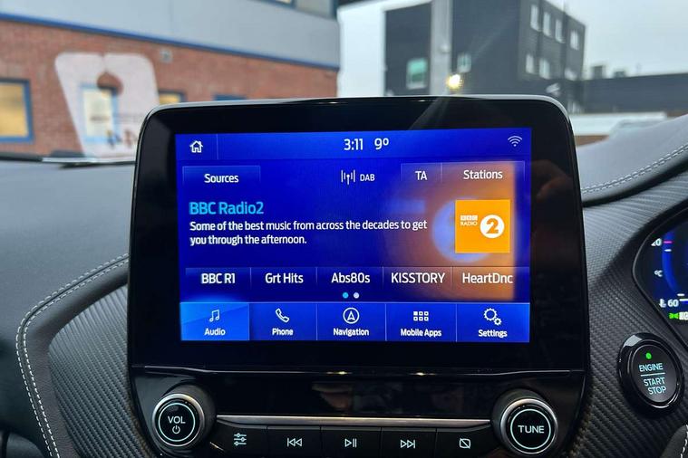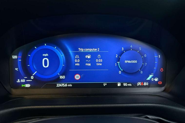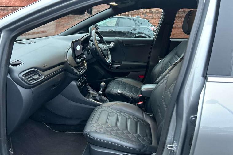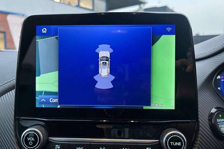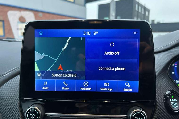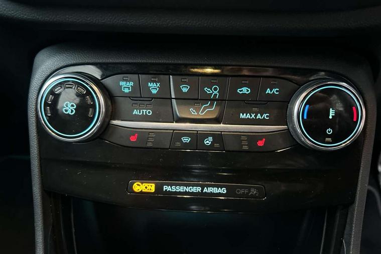 Driver impairment monitor, Emergency call service, Ford easy fuel, Front and rear parking sensors, Full digital 12.3" instrument cluster, Lane keeping aid with lane departure warning, Power assist steering, Selectable drive modes(Normal, sport, Eco, trail, slippery), Speed sign recognition, Wireless charging pad, Sport suspension, Automatic headlights with auto high beam, Automatic rain sensing wipers, Bodyside chrome styling, Fixed LED signature headlamps, Front fog lamps, Gloss black with chrome elements on front and rear bumpers, High chrome waistline, LED daytime running lights, LED rear lamps, Power foldable heated door mirrors with puddle lamps and puma logo protection, Privacy glass to side rear windows and tailgate glass, Quickclear heated windscreen, Rear side wing doors, Rear wiper, Third brake light, Vignale body styling kit with unique grille and large body colour rear spoiler, 3 seat bench in 2nd row, Centre console with armrest and stowage, Electronic automatic temperature control (EATC), Ford megabox extended bootspace, Front and rear floor mats, Front and rear head restraints, Heated front seats, Heated steering wheel, Manual 4 way driver seat adjust with lumbar adjustment and massage function, Manual 4 way passenger seat adjust with lumbar adjustment and massage function, Premium sensico leather upholstery with metal grey stitching, Premium sensico perforated flat bottomed steering with metal grey stitching, Premium sensico wrapped instrument cluster, Single front passenger seat, B&O Premium Audio system + Ford SYNC 3 navigation pack - Puma, 3 rear seatbelts, Child safety lock, Electronic stability control (ESC) and hill start assist, Pre-collision assist with autonomous emergency braking, pedestrian/cyclist detection and post-collision braking, Tyre pressure monitoring system (TPMS), Keyless entry and power start button, Thatcham alarm, Carbon look interior deco spears,