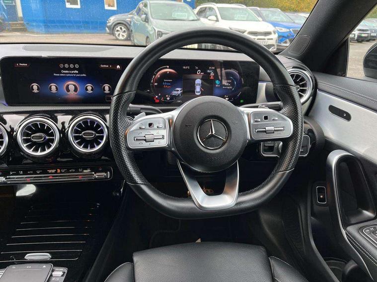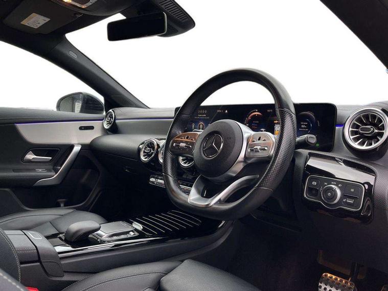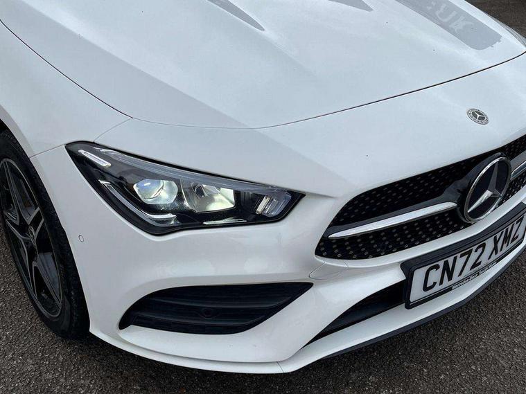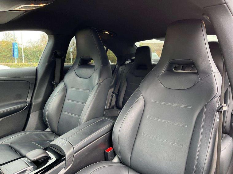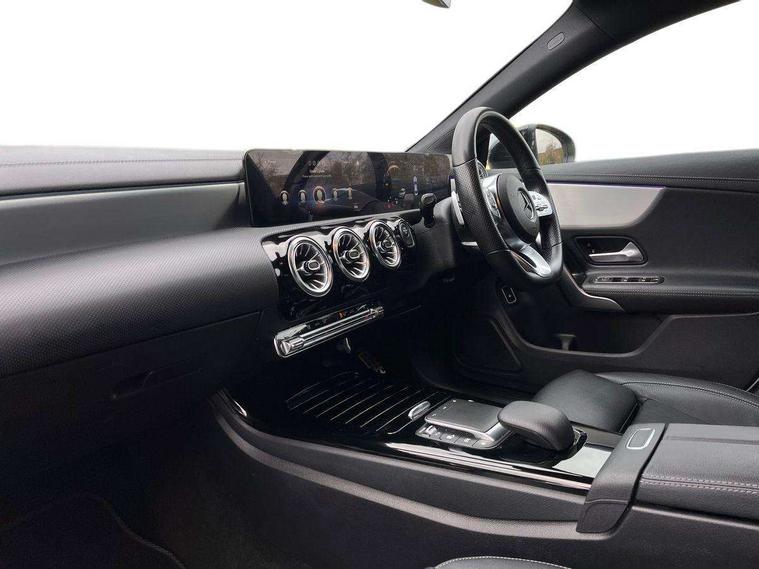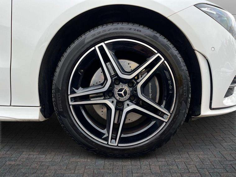 10.25 inch Instrument display with digital cockpit, 10.25 inch touchscreen central media display, Acoustic ambient protection, Active lane keeping assist, Attention assist - Monitors steering behaviour and long journey fatigue, Bluetooth connection, Car wash mode, Cruise control with limiter, Direct steer system with speed sensitive power steering, DYNAMIC SELECT with a choice of driving modes (ECO, Comfort, Sport and Individual), ECO start/stop function, Fluid level warning indicator for fuel, oil, coolant and washer fluid, Hard-disk navigation, Hey Mercedes Voice activation, Lamp failure indicator, Mercedes me connect including emergency call system, accident recovery, breakdown and maintenance management, Mercedes me remote services, Outside temperature gauge, Owners manual and service booklet in English, Pre-installation for remote and navigation services, Pre-installation of private car share, Preinstallation for Mercedes Benz link, Radio aerial integrated into front and rear windshields, Remote and charging services plus, Service indicator (ASSYST), Smartphone integration with Apple CarPlay and Android auto, Speed limit assist, Trip computer in multifunction display with current consumption indicator, 4m charging cable for wall box/charging stations, 7.4 kW onboard charger, Charging system - AC charging system rated at 7.4 kW, Comfort suspension, Rear axle multi-link, DAB digital radio tuner, MBUX multimedia system, Mid-range sound system, USB (type C) ports (2) in stowage compartment and 1 in front of centre console, Adaptive brake lights, AMG body styling with AMG front apron and rear apron and visible exhaust tailpipe in chrome trim elements, AMG bodystyling side skirts, Body colour bumpers, Body colour door handles, Chrome beltline strips, Diamond radiator grille pins in chrome, Electric windows, Electrically adjustable and heated door mirrors with integrated LED indicators, Exhaust system with 2 Visible tailpipe trim elements and rear apron with trim in chrome, Headlamp assist automatic headlamp activation, Heated glass rear windscreen + timer control, High level LED third brake light, Interior mirror with black reading lamps and frameless, LED high performance headlamps with integrated LED daytime running lights, LED tail lamp, Privacy glass with dark tinting on rear side windows and rear window, Rain sensing windscreen wipers with two sensitivity settings, Rear boot, Rear fog lamp, Rear side wing doors, Variable front intermittent wipers, Window line trim strip in chrome, 3 seat bench in 2nd row, 3 spoke flattened bottom nappa leather multifunction steering wheel with perforated leather in grip area, 40:20:40 split folding rear seat backrests, Air conditioning - Two zone thermotronic luxury automatic climate control with display, Air vents with surround in silver chrome, Artico man-made leather upholstery, Automatic child seat recognition sensor, Black roof lining, Brushed stainless steel sports pedals with rubber studs, Charging socket, Floor mats with stitched AMG lettering, Front centre armrest with stowage, Galvanished gear shift paddles on steering wheel, Heated front seats, Illuminated front door sills with changeable cover, Illuminated glove compartment stowage, Interior lighting - 64 colour Ambient lighting, Luggage net on driver/front passenger seat backrest, Manually adjustable front seats, Manually height and reach adjustable steering column, Pre-entry climate control, Rear armrest with two integral cup holders for drinks, Rear head restraints, Single front passenger seat, Sport seats with fixed head restraints, Stowage compartment in centre console with retractable cover, Sunvisors with illuminated vanity mirrors, Touchpad on center console, Twin front cupholders, Two outer rear seat isofix and top tether child seat fixing points, Keyless go comfort pack - CLA, Light and sight pack - CLA, Mirror pack - CLA, Night package - CLA, Parking package - CLA, Seat comfort pack - CLA, Active bonnet pedestrain safety measure which detects an impact and raises bonnet by 65mm, Active brake assist includes forward collision warning system with autonomous braking, Adaptive brake assist with hold function and hill start assist, Anti lock braking system (ABS) with brake assist, Black seat belts, Bonnet with power domes, Brake pad wear warning indicator, Childproof locks manually operated for rear doors and electrically operated for rear power windows, Crash responsive emergency lighting, Driver and front passenger head and sidebags, Driver and front passenger windowbags, Drivers knee airbag, Dual stage driver and front passenger airbags, Electric parking brake, Electronic stability programme with acceleration skid control, ESP curve dynamic assist, Front and rear seatbelt reminder, Front passenger seat occupancy sensor, Perforated front brake discs, Radar-based recuperation, Three point rear seat belts, Tyre pressure monitoring system, Warning triangle and first aid kit, Guard 360 degree guard vehicle protection system with immobiliser and interior protection, Remote central locking and crash sensor with emergency opening function, Light aluminium with longitudinal grain interior trim, 18" AMG 5 twin spoke light alloy wheels painted in black with high sheen finish, Summer tyres, Tirefit tyre sealant kit,