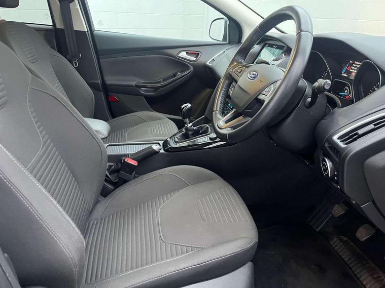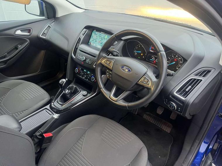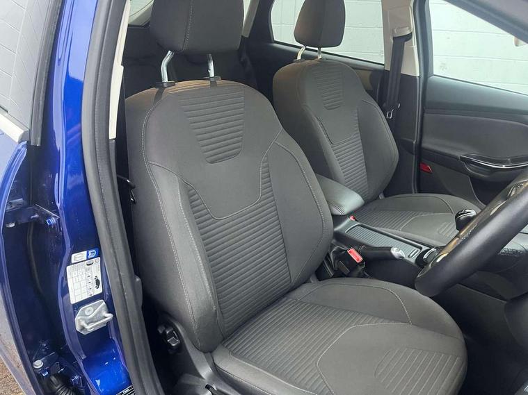 Cruise control + speed limiter, Digital clock, Easy fuel capless refuelling system, Eco mode, Electric boot release, PAS, Rear parking sensor, TFT cluster screen, Trip computer, 6 speakers, Aux input, Steering column with mounted audio controls, SYNC 2 DAB radio/CD, 8" colour touch screen, emergency assistance, Bluetooth connection, advanced voice control, USB connection, 'Quickclear' heated windscreen/heated washer jets, Auto dimming rear view mirror, Automatic headlights, Automatic rain sensing wipers, Body colour bumpers, Body colour door handles, Body colour door mirrors, Body colour rear spoiler, Chrome finish on upper door line, Chrome radiator grille and surround, Electric adjustable heated door mirrors, Front fog lights, Front variable intermittent wipers with electric wash, Heated rear window, LED daytime running lights, Tailgate wash/wipe, 3 spoke leather steering wheel, 60/40 split back and cushion rear seats with 2 height adjustable headrests, Centre console storage box/armrest, Driver's seat with adjustable lumbar support, Dual electronic automatic temperature control air conditioning - CFC-free, Height adjustable front headrests, Isofix child seat preparation, Passenger seat height/lumbar adjustment, Reach + rake adjustable steering column, Sports style front seats, ABS+Electronic Brake force Distribution, Active city stop, Driver airbag, ESP with traction control + emergency brake assist, Front inertia reel height adjustable seatbelts with pre-tensioners, Front passenger airbag, Front side airbags, Hill start assist, Side curtain airbags, Three rear inertia reel lap/diagonal seatbelts, Torque vectoring brake, Tyre pressure monitoring system, Immobiliser-Passive Anti-Theft System (PATS), Key free system, MyKey system, Remote central double locking, Thatcham Cat.1 alarm,
