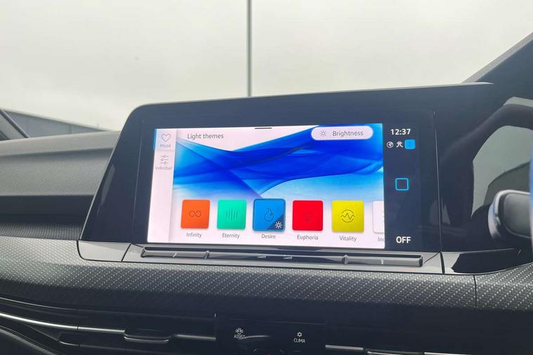 Adaptive cruise control (ACC) with speed limiter and front assist (reacting to vehicles pedestrians and cyclists), Car2X communication, Digital cockpit pro - 10.25" high resolution TFT dash display screen with customizable menus and information, Driver alert system, Dynamic road sign display, eCall - Emergency call service for SOS calls to emergency response, Lane assist, Mobile phone interface with wireless inductive charging function, Multifunction camera for distance control, PAS, Speedo, rev counter, electronic odometer, trip, service interval display, exterior temperature and fuel gauge, Start/Stop function, USB-C ports in the front and rear centre console with increased charging performance, Warning buzzer and light for front seatbelts unfastened, Wireless app connect, Petrol Particulate Filter, XDS electronic differential lock for improved traction and handling, Premium USB cable in choice of either Apple or Android smartphone compatibility, Ambient lighting, exterior illuminated styling elements at the sides, Auto dimming rear view mirror, Automatic headlamp activation with Coming home and Leaving home feature, Automatic headlights, Body colour door handles, Body colour door mirrors with integrated indicators, Body colour rear roof spoiler, Electrically heated and adjustable door mirrors with memory feature, Front and rear electric windows, Heat insulating glass windscreen, Heated rear windscreen, High level 3rd brake light, Highway light, LED License plate illumination, R Line body coloured bumpers, Rain sensor, Rear fog light on one side and reversing lights on both sides, Rear lights incorporating LED technology, Rear side wing doors, Rear tinted glass 65% light absorbing from B pillar backwards, Rear windscreen washer and wiper with interval delay, Welcome light, 12V socket in front centre console, 12V socket in luggage compartment, 3 rear head restraints, 3 seat bench in 2nd row, Ambient lighting - Customisable 30 colour ambient lighting, Black roof lining, Brushed stainless steel pedals, Chrome plated surround to electric mirror button, window switch and air vent surrounds, Drivers and front passengers sun visors with vanity mirrors, Front + rear carpet mats, Front centre armrest with storage compartment, Front cupholders x 2, Front passenger seat, Front reading lights x 2 incorporating LED technology, Front seat lumbar support adjuster, Front sports seats, Glovebox, Height adjustable front seats, Height and reach adjustable steering wheel, Isofix child seat preparation for 2 rear child seats and front passenger seat, Luggage compartment lighting, R Line door and side trim panel, R Line front seats integrated head restraints, R-Line leather wrapped multi function sports heated steering wheel, Removable luggage compartment cover, Sardegna cloth upholstery with front and outer rear seats Art Velour inner sides of bolsters, Split folding backrest with centre armrest and unsplit rear seat bench, Titanium black instrument panel, Woven fabric storage compartments in front and rear doors, 3 point height adj front seatbelts + pretensioners, 3 rear three point seatbelts, ABS, Child locks on rear doors, Driver and front passenger airbag with front passenger airbag deactivation, Drivers and front passengers safety optimised head restraints, Electronic parking brake with auto hold, ESC (Electronic Stability Control), Extended pedestrian protection measures, Front and rear passengers curtain airbag system including front side airbags, Front centre airbag, Front disc brakes, Front side airbags with curtain airbags, Rear disc brakes, Two tone horn, Tyre pressure monitoring system, Alarm with interior protection and deactivation via infotainment system, Electronic engine immobiliser, Carbon grey decorative inserts in dash and front door trim panels, High gloss black centre console, Space and weight saver spare wheel,