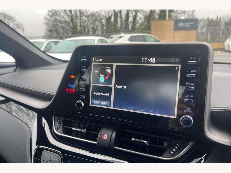 4.2" coloured TFT screen for multi-information display, Adaptive cruise control, Bluetooth connectivity, E-call, Electric power steering, Hybrid system indicator, Lane departure alert with steering control, Lane trace assist, Push button start, Push button tailgate release, Remote boot door release in cabin, Remote boot door release in key, Reversing camera, Road sign assist - RSA, Smart voice assist, Trip computer, Voice recognition, Vehicle Stability Control (VSC), 6 speakers, AM/FM radio, DAB Radio (Digital Audio Broadcasting), Toyota touch 2 multimedia system with 8" display, USB connector, Wi-fi connectivity, Anti-jam protection on power windows, Auto high beam, Auto up and down function on all power windows, Automatic headlights, Automatic headlights cut-off, Black and body coloured rear bumper, Black lower front grille, Black upper front grille, Body colour door handles, Body colour door mirrors, Body colour front spoiler lip, Body coloured front bumper, Boot door release with push button, Electric heated door mirrors, Follow me home headlights, Front and rear power windows, Front fog lights, Headlight cut off reminder, Honeycomb lower front grille, LED daytime running lights, LED High mounted stop light, LED rear brake lights, LED rear combination lights, Manual headlight levelling, Manually retractable door mirrors, Noise reduction layer on front windows and windscreen, Power adjustable door mirrors, Rear side wing doors, Rear spoiler, Rear tailgate, Rear window defogger, Rear window wiper, Reflective LED headlights, Shark fin antenna, UV-filter on driver and passenger windows, UV-filter on rear windows, 12v power outlet - front, 3 rear headrests, 3 seat bench in 2nd row, 3 spoke leather steering wheel, 60/40 split folding rear seat, Adjustable rear headrests, Adjustable speed limiter switch on steering wheel, Assist grips front and centre pillar, Audio and telephone switches on steering wheel, Black front door assist grips, Boot light, Chrome interior door handles, Cloth upholstery, Driver and front passenger personal light, Driver and front passenger Whiplash Injury Lessening seats, Dual zone automatic air conditioning, Floor mats, Front cupholders, Front head restraints, Front sports seats, Glovebox with internal light, Hard tonneau cover, Hooks for luggage holding net, Humidifying Nanoe air purifier, Illuminated entry system, Isofix attachments on outer rear seats, Leather gearshift, Light on driver sun visor, Light on passenger sun visor, Manual telescopic steering wheel, Manual tilt steering wheel, Manually adjustable lumbar support on driver seat, Manually height adjustable driver seat, Manually height adjustable front passenger seat, Manually reclining driver seat, Manually reclining front passenger seat, Manually sliding driver seat, Manually sliding front passenger seat, Microphone on front personal light, Mirror on driver sun visor, Mirror on passenger sun visor, Multimedia switches on steering wheel, Pollen filter, Shopping bag hooks, Single front passenger seat, Slow opening on lower glovebox, Voice recognition switch on steering wheel, 16 Disk front wheel brake, 3x3 point rear seatbelts, ABS+EBD+Brake assist, Electronic parking brake, Front and rear seatbelt reminder, Front passenger airbag on/off switch, Hill start assist control (HAC), Pre collision system with pedestrian detection, Pre-tensioners and force limiters, Rear door child safety locks, SRS Airbags - Driver + Front passenger, front side, front and rear curtain and driver's knee airbags, Toyota safety sense, Tyre pressure monitoring system, Tyre pressure warning system, Acoustic vehicle alert system (AVAS), Glass-breaking alarm sensors, Immobiliser, Intrusion alarm, Intrusion sensor, Motion sensor alarm, Power door locks, Power passenger window lock, Remote central locking, Black lower dashboard, Black upper dashboard, Grey deco line on upper dashboard, Matte black centre console, Tyre repair kit,