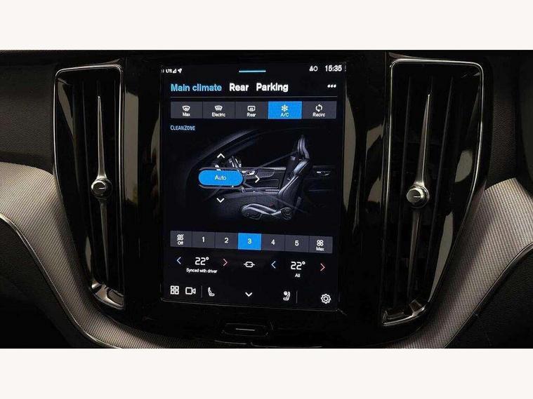 12.3" Progressive Driver Display, 360 degree surround view parking camera with side proximity sensors, 9" centre console touch screen, Adjustable steering wheel force, Apple carplay (wired), Bluetooth handsfree system, Driver alert control with lane keeping aid, Driver assistance (pilot assist and adaptive cruise control), Emergency services call system, Front and rear park assist, Google Automotive Services, Oncoming Lane Mitigation, PAS, Service interval indicator, Speed limiter, Speed sensitive steering, Trip computer, Volvo on call with App, Wireless/Inductive Mobile Phone Charging, 8 speed automatic transmission with start/stop + manual change functions, Dynamic chassis, DAB Digital radio, Premium Sound by Harman Kardon, dirac unison, dolby pro logic II surround sound, 13 speakers/600W output and fresh air subwoofer, Steering wheel remote infotainment controls, Adaptive brake lights with high level LED brake lights, Auto dimming interior + exterior mirrors, Automatic headlight levelling system, Automatic LED Headlights + Active high beam incorporating daytime running lights, Electric adjustable/heated/auto power folding door mirrors, Electric front+rear windows, Front aluminium tread plates, Heated front windscreen, High gloss black door mirrors and window surround, High gloss black front and rear bumper decoratives, High gloss black mesh front grille with high gloss black surround, Home safe and approach lighting, Integrated roof rails in high gloss black, LED front fog lights, Puddle lights, Rain sensor with automatic windscreen wiper activation, Rear side wing doors, Rear wiper, Roof antenna, Roof spoiler, Tinted windscreen, Visible VIN plate, 12V socket in front tunnel console and luggage compartment, 3 seat bench in 2nd row, 4 Zone electronic climate control, A-pillar parking ticket holder, Air purifier particulate matter (PM) 2.5 filter, B Pillar ventilation, Bright metal luggage threshold, Centre console cupholders and storage, Charcoal floor mats, Front and rear courtesy lights, Front and rear door pocket illumination, Front cupholder illumination, Front footwell illumination, Front reading lights, Front seat cushion extensions, Glovebox compartment with illumination, Head restraints for all seats, Heated front seats, Heated steering wheel, Height/reach adjustable steering column, Illuminated luggage compartment, Illuminated vanity mirrors + ticket holder, ISOFIX attachment on outer rear seats, Load cover, Load protection net, Multi directional lumbar support, Power driver seat with memory + exterior mirrors memory, Power height adjustable passenger seat, Rear armrest with cupholder, Rear footwell and front and rear side step illumination, Rear seat concealed storage, Single front passenger seat, Tailgate illumination and ambient door lighting, Underfloor stowage compartment, Versatile split folding rear seat - 60/40, 5 three point seatbelts, City safety with steering support with Pedestrian + cyclist + front collision warning with full auto brake and rear auto brake, Drivers knee airbag, Dual stage driver/passenger airbags, Electronic parking brake with auto hold, First aid kit, Front seats SIPS airbags, Hill descent control - Off-road drive mode, Hill start assist, IC (Inflatable Curtains) - Full Length, Passenger airbag cut-off device, Power child locks on rear doors, Road sign information display, Run off Road Mitigation, Run off Road Protection, Seatbelt reminder and pretensioners, SIPS (Side Impact Protection System), Slippery road and hazard light alert, Stability and Traction Control with Spin control, Engine Drag Control and Corner Traction Control, Tyre pressure monitoring system, Vehicle deceleration control with Anti-lock Brake System, Electronic Brake Distribution and Emergency Brake Assist, Warning triangle, WHIPS whiplash protection system - front, Anti-theft alarm including immobiliser/volume sensor + level sensor, Care key with user defined top speed, Key integrated remote control central locking + fuel flap with deadlocking system and auto open/close power windows, Keyless Drive (includes Keyless Entry and Keyless Start) with Handsfree Tailgate Opening/Closing, Locking wheel nuts, Private locking for tailgate,