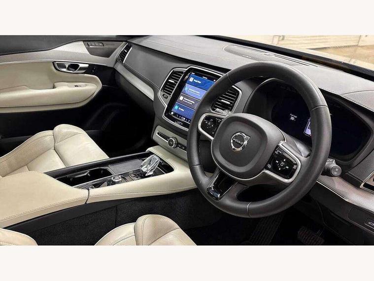 12.3" Progressive Driver Display, 360 degree surround view parking camera with side proximity sensors, 9" centre console portrait touch screen, Adjustable steering wheel force, Bluetooth hands free telephone connection, Driver alert control with lane keeping aid, Driver assistance (pilot assist and adaptive cruise control), Driver awareness - Blind spot information system with steer assist, cross traffic alert with autobrake and rear collision warning and mitigation, Emergency call service, Front and rear park assist, Google Automotive Services - Navigation with Voice recoginition and google assistant, Handsfree power tailgate opening and closing, Oncoming Lane Mitigation, Power operated tailgate, Service interval indicator, Speed limiter, Speed sensitive steering, Trip computer, Volvo on call, Wireless Mobile Phone Charger, 8 speed automatic transmission with start/stop + manual change functions, Touring chassis, DAB Radio (Digital Audio Broadcasting), Premium Sound by Harman Kardon, dirac unison, dolby pro logic II surround sound, 13 speakers/600W output and fresh air subwoofer, Steering wheel remote infotainment controls, Active bending headlights with adaptive shadow technology, Adaptive brake lights with high level LED brake lights, Auto dimming interior + exterior mirrors, Auto folding and heated power door mirrors, Automatic headlight levelling system, Automatic LED Headlights + Active high beam incorporating daytime running lights, Body colour bumpers, Front and rear power windows, Headlight cleaning system, Heated front windscreen, High gloss black door mirrors and window surround, High gloss black front and rear bumper deco, High gloss black mesh front grille with surround, Home safe and approach lighting, Integrated roof rails in high gloss black, LED front fog lights with cornering light function, Power glass tilt and slide panoramic sunroof with sun curtain, Puddle lights, Rain sensor with automatic windscreen wiper activation, Rear side wing doors, Rear wash/wipe with intermittent wipe setting, Roof antenna, Roof spoiler, Visible VIN plate, 12V socket front tunnel console, rear passenger compartment and cargo area, 2 seat bench in 3rd row, 2nd Row centre armrest with and cupholders, 3 seat bench in 2nd row, 4 zone electronic climate control with Clean zone air quality system + pollen filter, A-pillar parking ticket holder, Advanced interior air cleaner PM2.5, Air conditioning for 3rd row of seats, Ambient door and instrument panel lighting, B Pillar ventilation, Bright metal luggage threshold, Centre console cupholders and storage, Floor mats, Front and rear door pocket and front cupholder illumination, Front and rear reading lights, Theatre lighting and centre armrest storage illumination, Front footwell and side step illumination, Front headrests, Front seat cushion extensions, Heated front seats, Heated rear seats, Heated steering wheel, Height/reach adjustable steering column, Illuminated front and rear tread plates, Illuminated luggage compartment, Illuminated tailgate, Illuminated vanity mirrors + ticket holder, Illumination lockable glovebox compartment, Integrated sun curtains in rear doors, Isofix outer rear child seat preparation in 2nd row, Load protection net, Luggage compartment divider with grocery bag holder, Outboard armrest with cupholder and storage for third row passengers, Power driver seat with multi directional lumbar support and memory for seat and exterior mirrors, Power folding 2nd row headrests, Power passenger seat with multi directional lumbar support and memory, Rear footwell and side step illumination, Rear headrests, Semi automatic load cover, Single front passenger seat, Underfloor luggage compartment storage, 7 three point seatbelts, City safety with steering support includes pedestrian, cyclist and large animal detection and front collision warning with full auto brake, Drivers knee airbag, Dual stage driver/passenger airbags, First aid kit, Front seats SIPS airbags, Hill descent control - off drive mode, Hill start assist, IC (Inflatable Curtains) - Full Length, Passenger airbag cut-off switch, Power child locks on rear doors, Power parking brake with auto hold function, Road sign information display, Run off Road Mitigation, Run off Road Protection, Seatbelt reminder and pretensioners for all seats, SIPS (Side Impact Protection System), Slippery road and hazard light alert, Stability and Traction Control with Spin control, Engine Drag Control and Corner Traction Control, Tyre pressure monitoring system, Vehicle deceleration control with Anti-lock Brake System, Electronic Brake Distribution and Emergency Brake Assist, Warning triangle, WHIPS whiplash protection system - front, Anti-theft alarm including immobiliser/volume sensor + level sensor, Care key with user defined top speed, Key integrated remote control central locking + fuel flap with deadlocking system and auto open/close power windows, Keyless drive includes keyless entry and keyless start, Locking wheel nuts, Private locking for glovebox and tailgate, Tailored Instrument Panel and Door Tops with Contrast Stitching, Tempa spare wheel and jack,