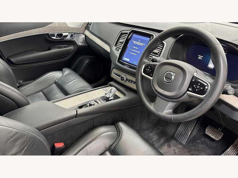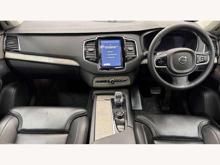 12.3" Progressive Driver Display, 360 degree surround view parking camera with side proximity sensors, 9" centre console portrait touch screen, Adjustable steering wheel force, Bluetooth hands free telephone connection, Driver alert control with lane keeping aid, Driver assistance (pilot assist and adaptive cruise control), Driver awareness - Blind spot information system with steer assist, cross traffic alert with autobrake and rear collision warning and mitigation, Emergency call service, Front and rear park assist, Google Automotive Services - Navigation with Voice recoginition and google assistant, Handsfree power tailgate opening and closing, Oncoming Lane Mitigation, Power operated tailgate, Service interval indicator, Speed limiter, Speed sensitive steering, Trip computer, Volvo on call, Wireless Mobile Phone Charger, 8 speed automatic transmission with start/stop + manual change functions, Active four C chassis - four corner adaptive dampers with electronic air suspension, DAB Radio (Digital Audio Broadcasting), Premium Sound by Bowers and Wilkins, dirac live, dolby pro logic II surround sound, 18 speakers/1400W output and fresh air subwoofer, Steering wheel remote infotainment controls, Active bending headlights with adaptive shadow technology, Adaptive brake lights with high level LED brake lights, Auto dimming interior + exterior mirrors, Auto folding and heated power door mirrors, Automatic headlight levelling system, Automatic LED Headlights + Active high beam incorporating daytime running lights, Body colour bumpers, Dark tinted windows - rear side windows and rear screen, Front and rear power windows, Headlight cleaning system, High gloss black door mirrors and window surround, High gloss black front and rear bumper deco, High gloss black mesh front grille with surround, Home safe and approach lighting, Integrated roof rails in high gloss black, LED front fog lights with cornering light function, Power glass tilt and slide panoramic sunroof with sun curtain, Puddle lights, Rain sensor with automatic windscreen wiper activation, Rear side wing doors, Rear wash/wipe with intermittent wipe setting, Roof antenna, Roof spoiler, Visible VIN plate, 12V socket front tunnel console, rear passenger compartment and cargo area, 2 seat bench in 3rd row, 2nd Row centre armrest with and cupholders, 3 seat bench in 2nd row, 4 zone electronic climate control with Clean zone air quality system + pollen filter, A-pillar parking ticket holder, Advanced interior air cleaner PM2.5, Air conditioning for 3rd row of seats, Ambient door and instrument panel lighting, B Pillar ventilation, Bright metal luggage threshold, Centre console cupholders and storage, Floor mats, Front and rear door pocket and front cupholder illumination, Front and rear reading lights, Theatre lighting and centre armrest storage illumination, Front footwell and side step illumination, Front headrests, Front seat cushion extensions, Heated front seats, Heated rear seats, Heated steering wheel, Height/reach adjustable steering column, Illuminated front and rear tread plates, Illuminated luggage compartment, Illuminated tailgate, Illuminated vanity mirrors + ticket holder, Illumination lockable glovebox compartment, Integrated sun curtains in rear doors, Isofix outer rear child seat preparation in 2nd row, Load protection net, Luggage compartment divider with grocery bag holder, Outboard armrest with cupholder and storage for third row passengers, Power driver seat with multi directional lumbar support and memory for seat and exterior mirrors, Power folding 2nd row headrests, Power passenger seat with multi directional lumbar support and memory, Rear footwell and side step illumination, Rear headrests, Semi automatic load cover, Single front passenger seat, Underfloor luggage compartment storage, 7 three point seatbelts, City safety with steering support includes pedestrian, cyclist and large animal detection and front collision warning with full auto brake, Drivers knee airbag, Dual stage driver/passenger airbags, First aid kit, Front seats SIPS airbags, Hill descent control - off drive mode, Hill start assist, IC (Inflatable Curtains) - Full Length, Passenger airbag cut-off switch, Power child locks on rear doors, Power parking brake with auto hold function, Road sign information display, Run off Road Mitigation, Run off Road Protection, Seatbelt reminder and pretensioners for all seats, SIPS (Side Impact Protection System), Slippery road and hazard light alert, Stability and Traction Control with Spin control, Engine Drag Control and Corner Traction Control, Tyre pressure monitoring system, Vehicle deceleration control with Anti-lock Brake System, Electronic Brake Distribution and Emergency Brake Assist, Warning triangle, WHIPS whiplash protection system - front, Anti-theft alarm including immobiliser/volume sensor + level sensor, Care key with user defined top speed, Key integrated remote control central locking + fuel flap with deadlocking system and auto open/close power windows, Keyless drive includes keyless entry and keyless start, Locking wheel nuts, Private locking for glovebox and tailgate, Tailored Instrument Panel and Door Tops with Contrast Stitching, Tempa spare wheel and jack,