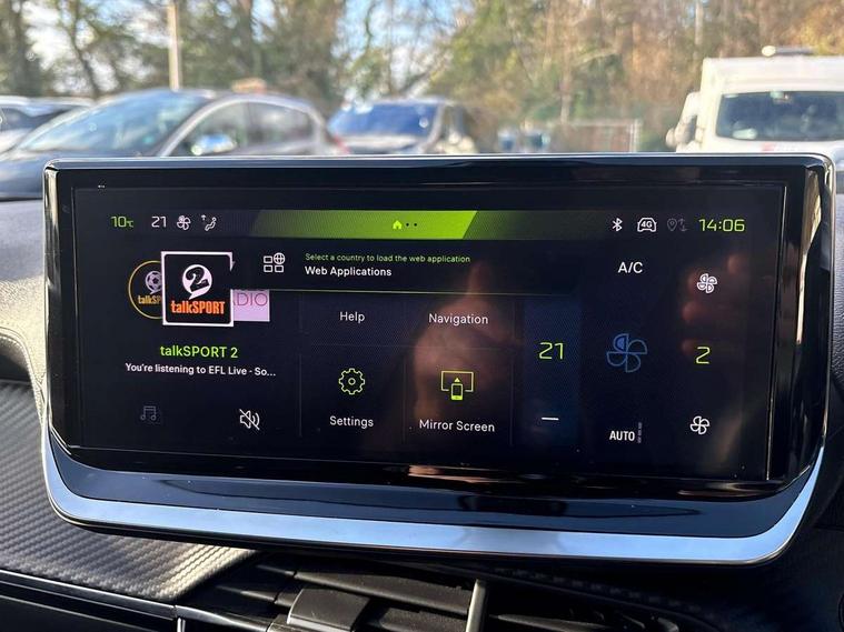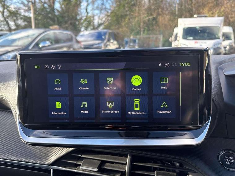 Bluetooth telephone facility, Driver attention warning, E-call, Exterior temperature indicator with ice warning, Multi function trip computer, PEUGEOT i-Cockpit with compact steering wheel, PEUGEOT i-Cockpit with configurable 3D headup instrument panel, PEUGEOT SOS and assistance, Smartphone charging plate, Speed limit recognition and recommendation, Wireless mirror screen with mirror link, apple carplay and android auto, Petrol Particulate Filter, 1x USB-C socket in rear and 1x USB-A socket in rear, 2 USB-C ports in the front, 6 speakers radio with mp3 compatible, DAB Radio (Digital Audio Broadcasting), Voice recognition for radio, navigation and telephony features, 2 X Rear number plate lights, Aluminium door sill scuff plates with peugeot lettering, Automatic hazard light activation upon heavy brake application, Black diamond roof, Black front wing trim with gloss black detail and GT badging, Body coloured exterior door handles, Dark tinted rear side and tailgate windows, Diamond black mirror shells, Diamond black rear roof spoiler, Electric, heated, and power folding door mirrors, Frameless electrochrome interior rear view mirror, Front bumper - Meteor grey lower trim, Full LED headlights with smartbeam assist with auto height adjustment, Gloss black finish on B pillar, Gloss black rear cluster connecting strip, Gloss black roof bars, Gloss black window surround, GT model designation badging on tailgate, Headlights left on audible warning, LED daytime running lights with distinctive 3 claw signature, LED side indicator lights integrated into door mirrors, LED third brake light, Model designation badges front and rear, One touch electric front/rear windows with pinch protection, Radiator grille - body coloured vertical chequered grille, Radiator grille - gloss black top edge trim, Rear full LED 3D peugeot signature claw effect lights with daylight function, Rear reversing lights, Rear side wing doors, Rear windscreen wiper triggered automatically in reverse gear, Tailgate with heated rear windscreen and wiper blade, Twin chromed exhaust pipes, Wheel arch extensions, 1/3 to 2/3 split folding rear seats, 12V socket, 3 seat bench in 2nd row, 8 Colour personalisable ambient lighting, Automatic air conditioning with pollen and active carbon filter, Central front armrest with storage compartment, Driver and front passenger sport seats, Electric power steering with reach and rake adjustable steering column, Front and rear carpet mats in black, Front LED interior light with 2 reading spotlights and rear interior light with timer, Front passenger seat manual adjustment - height, longitudinal and back rest angle, High centre console, ISOFIX child seat mounting points on passenger seat, Mistral full-grain perforated leather steering wheel with Lime Green stitch detail and satin chrome 'GT' emblem, Multifunction steering wheel, Piano keys: Gloss black and chrome toggle switches to access main functions of the vehicle and touchscreen functions, Roof lining - Mistral black, Seatbelt unfastened on the move audible and visual alert for front and rear seats, Single front passenger seat, Two position modular boot floor, Visibility pack - 2008, 2x 2nd row ISOFIX child seat mountings, ABS (Anti-lock Braking System) with EBD (Electronic Brakeforce Distribution) and EBA (Emergency Braking Assistance), Active safety brake with night function/cyclists/pedestrians, Adaptive driver and front passenger airbags with passenger airbag deactivation function, Child locking functionality on rear doors, Driver/front passenger side airbags, Electric parking brake, ESP (Electronic Stability Program) + Hill Start Assist, Front and rear curtain airbags, Front and rear disc brakes, Front and rear three-point retractable seatbelts, with force limiters, Front optimised safety headrests and rear retractable headrests (x3), height adjustable, Tyre pressure sensor, Automatic door locking when moving off, Deadlocks, Electronic code immobiliser, Peugeot Open and Go (keyless entry and push button start), Thatcham category 1 alarm, Carbon effect Dashboard, front and rear door panel finish,