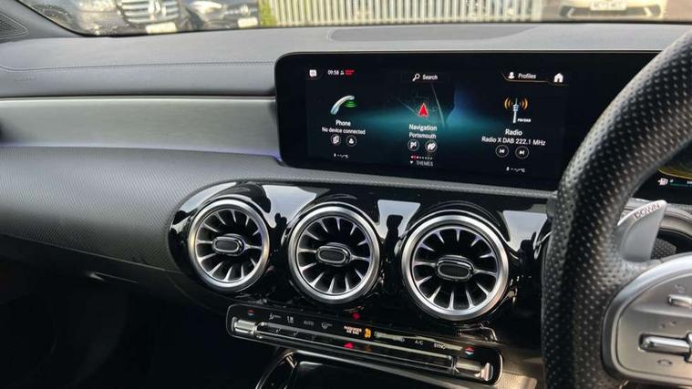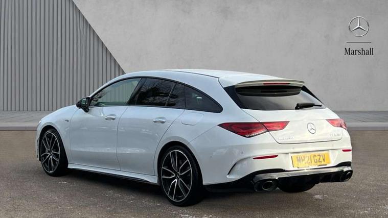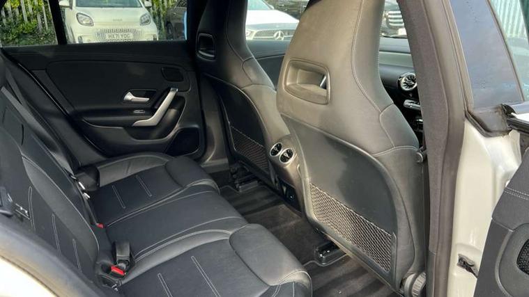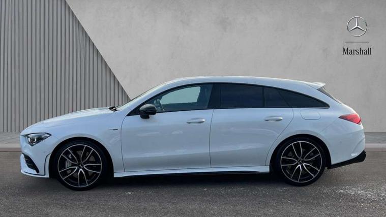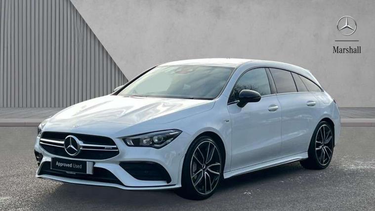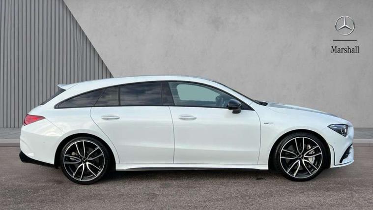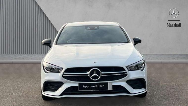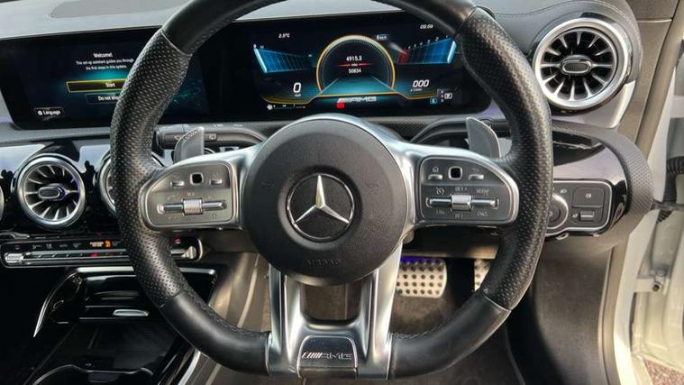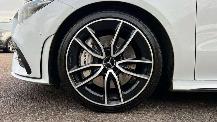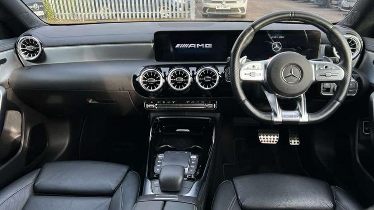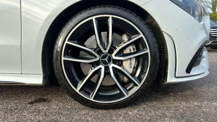 10.25 inch Instrument display with digital cockpit, 10.25 inch touchscreen media display, Active lane keeping assist, Attention assist - Monitors steering behaviour and long journey fatigue, Bluetooth connection, Car wash mode, Cruise control with limiter, Digital instrument cluster with three AMG display styles and AMG menu, Direct steer system with speed sensitive power steering, DYNAMIC SELECT with driving programs (Slippery, Comfort, Sport, Sport+ and Individual), ECO start/stop function, Fluid level warning indicator for fuel, oil, coolant and washer fluid, Hard-disk navigation, Hey Mercedes Voice activation, Lamp failure indicator, MBUX multimedia system with DAB digital radio and touchpad including satellite navigation, Mercedes me connect including emergency call system, accident recovery, breakdown management and maintenance, Mercedes me remote services, Outside temperature gauge, Owners manual and service booklet in English, Pre-installation of private car share, Preinstallation for Mercedes Benz link, Radio aerial integrated into front and rear windshields, Service indicator (ASSYST), Smartphone integration with Apple CarPlay and Android auto, Speed limit assist, Trip computer in multifunction display with current consumption indicator, 7G-DCT 7 speed automatic transmission, AMG suspension, Rear axle multi-link, DAB digital radio tuner, Mercedes Benz sound system (100 W) with 6 speakers, USB (type C) ports (2) in stowage compartment and 1 in front of centre console, Adaptive brake lights, AMG body styling with AMG front apron and rear apron and visible exhaust tailpipe in chrome trim elements, AMG bodystyling side skirts, AMG Front apron with flics as air deflector elements on the outer air intakes, AMG radiator grille with twin blade lamella and AMG Lettering, AMG Rear apron with specific diffuser look with four vertical fins and two round chrome plated tailpipe trim elements with a diameter of 90 mm, AMG Sports exhaust system with two round tailpipes attached in rear apron, Automatically controlled exhaust flap, Beltline strips in High gloss Black, Body colour bumpers, Body colour door handles, Chrome weather strip, Electric windows, Electrically adjustable and heated door mirrors with integrated LED indicators, Front splitter and trim elements on the louvres in the outer air inlets in silver chrome, Front wings with TURBO 4MATIC lettering, Headlamp assist automatic headlamp activation, Heated glass rear windscreen + timer control, High level LED third brake light, Interior mirror with black reading lamps and frameless, LED high performance headlamps with integrated LED daytime running lights, LED tail lamp, Privacy glass with dark tinting on rear side windows and rear window, Rain sensing windscreen wipers with two sensitivity settings, Rear fog lamp, Window line trim strip in high gloss black, 40:20:40 split folding rear seats with backrest, Air conditioning - Two zone thermotronic luxury automatic climate control with display, Air vents with surround in silver chrome, AMG Performance steering wheel in nappa leather, Automatic child seat recognition sensor, Black roof lining, Brushed stainless steel sports pedals with rubber studs, Floor mats with stitched AMG lettering, Front centre armrest with stowage, Heated front seats, Illuminated front door sills with changeable cover, Illuminated glove compartment stowage, Interior lighting - 64 colour Ambient lighting, Luggage net on driver/front passenger seat backrest, Manually adjustable front seats, Manually height and reach adjustable steering column, Rear armrest with two integral cup holders for drinks, Rear head restraints, Silver coloured aluminium gear shift paddles on steering wheel, Sport seats with fixed head restraints, Stowage compartment in centre console with retractable cover, Sunvisors with illuminated vanity mirrors, Touchpad on center console, Twin front cupholders, Two outer rear seat isofix and top tether child seat fixing points, AMG Night package - CLA 35/45, Light and sight pack - CLA, Mirror pack - CLA, Parking package - CLA, Seat comfort pack - CLA, Active bonnet pedestrain safety measure which detects an impact and raises bonnet by 65mm, Active brake assist includes forward collision warning system with autonomous braking, Adaptive brake assist with hold function and hill start assist, Anti-lock braking system (ABS), Black seat belts, Bonnet with power domes, Brake pad wear warning indicator, Childproof locks manually operated for rear doors and electrically operated for rear power windows, Crash responsive emergency lighting, Driver and front passenger head and sidebags, Driver and front passenger windowbags, Drivers knee airbag, Dual stage driver and front passenger airbags, Electric parking brake, Electronic stability programme with acceleration skid control, ESP curve dynamic assist, Front and rear seatbelt reminder, Front brake calipers with AMG lettering, Front passenger seat occupancy sensor, Perforated front brake discs, Three point rear seat belts, Tyre pressure monitoring system, Warning triangle and first aid kit, Remote central locking and crash sensor with emergency opening function, Urban guard vehicle protection system with immobiliser and interior protection, Light aluminium with longitudinal grain interior trim, 19" AMG multi-spoke high gloss black painted light alloy wheels with high sheen finish, Summer tyres, Tirefit tyre sealant kit, Wheel arches wider for AMG wheels,