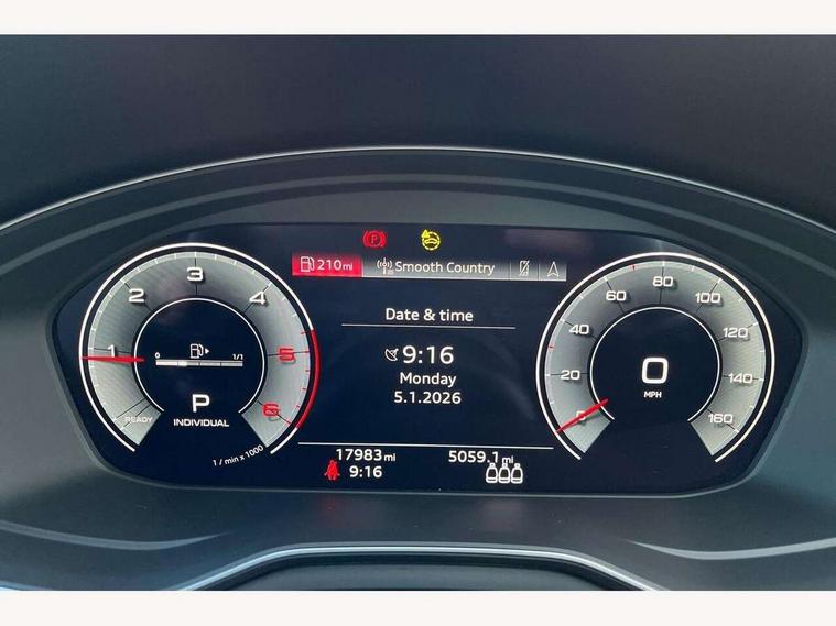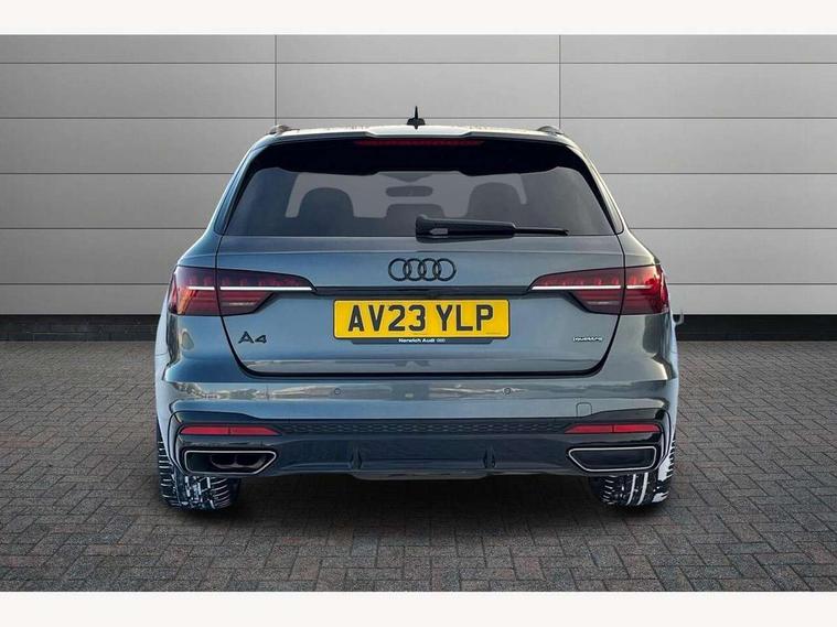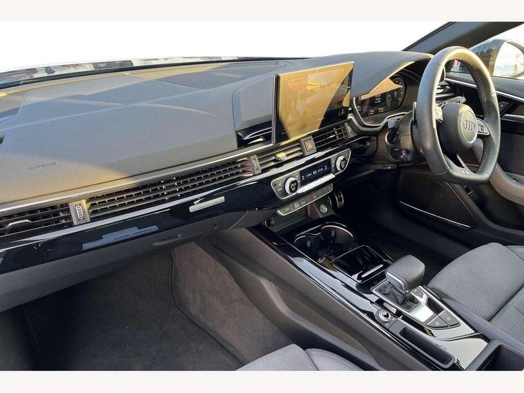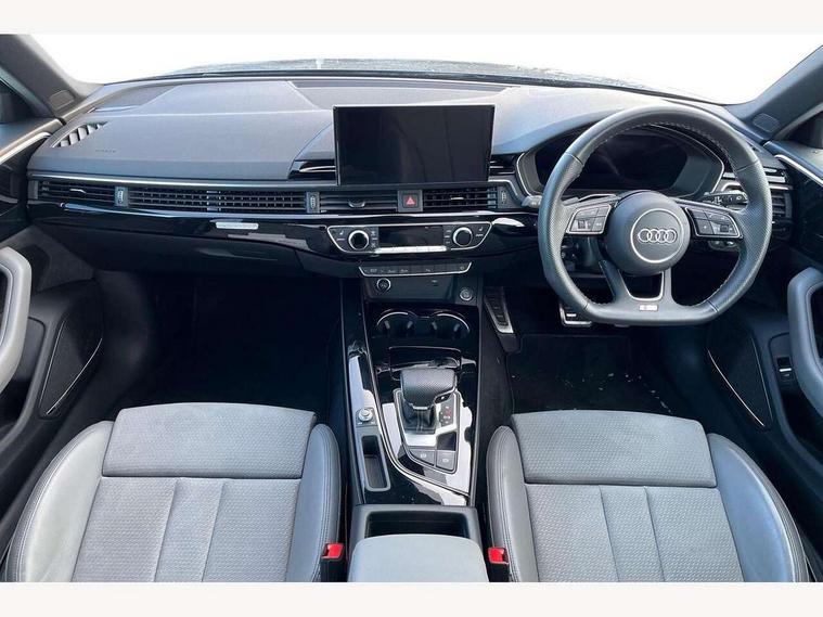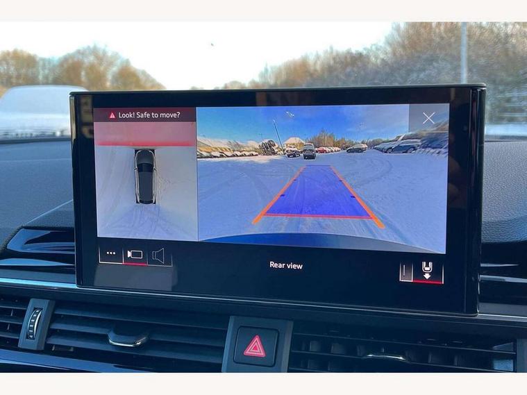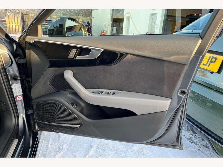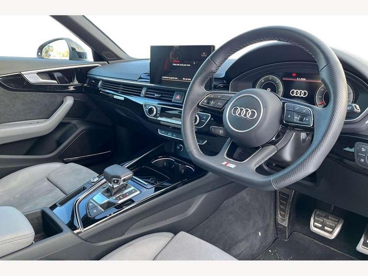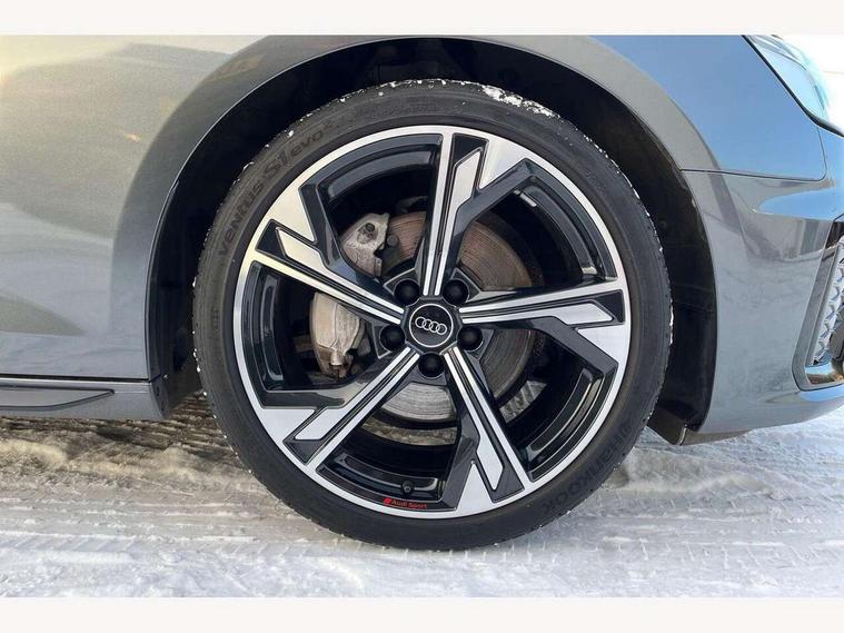 Audi connect safety and service (e-call), Audi connect with Amazon Alexa Integration, Audi drive select, Audi smartphone interface, Audi virtual cockpit, Automatic start-stop system with coasting functionality and efficiency programme, Bluetooth interface, Electromechanical power steering, Email, calendar and text messages displayed via MMI, MMI Navigation plus with MMI touch includes 10.1" high resolution colour MMI display, 3D map, Power operated tailgate, Voice control system, 58 Litre fuel tank, Sports suspension lowered by 23mm, 2 USB charging ports, 8 passive loudspeakers, DAB digital radio reception, Audi beam uses LEDs to project the audi logo onto the ground as you exit your A4, Auto dimming rear view mirror, Black Audi rings and black badging (model name in black badging, no engine badging), Body colour door handles, Body colour front spoiler lip, Body colour side sill trim, Electrically folding auto dimming/adjustable/heated door mirrors with LED side indicators and kerb view function for passenger side, Exhaust tailpipes in high dark chrome, Front and rear bumpers with side skirts, Grained matt black side air inlets with matt aluminium silver inlay, High beam assistant, High gloss black B pillar trims and triangular rear door trim, LED headlights with LED rear lights + dynamic rear indicators + headlight adjustment and high beam, turning light + LED daytime running lights, LED third brake light, Privacy glass, Rain and light sensors, Rear diffuser in matt black with trim strip in matt aluminium silver, Rear side wing doors, Rear wiper, RS4 rear spoiler in body colour, S Line badges on the front wings, S Line roof edge spoiler, Variable intermittent front wash/wipe, Windscreen with acoustic glazing, 4 way electric lumbar support for driver and front passenger, 40/20/40 split folding 3 rear seat bench in 3 parts with rear centre armrest, Black cloth headlining, Black perforated leather gearknob, Contrast stitching on seats, steering wheel and gear lever gaiter, Deluxe 3 zone electronic climate control, Door sill trims with aluminium inlay, Electric load area cover, Front and rear head restraints, Front centre armrest, Heated front seats, Illuminated door sill trims with S logo, ISOFIX child seat mounting and top tether, Manual seat adjustment, Single front passenger seat, Stainless steel pedals and foot rest, Black styling pack - A4 Avant, LED Interior light pack - A4/S4, 3 rear seatbelts, 6 airbags - Driver, front passenger, curtain and side windows, Electronic Stabilisation Control (ESC) including ABS, ASR and EDL, Hill hold assist, Multi collision brake assist, Pop-up bonnet for pedestrian protection, Pre sense city, Rear door child safety locks, Seatbelt monitoring, Warning triangle and first aid kit, Anti theft alarm, Anti theft wheel bolts, Central locking, Keyless Go, Piano black finish inlay, 19" 5 arm flag design Audi sport diamond cut alloy wheels in gloss anthracite black, Tool kit, Tyre repair kit,