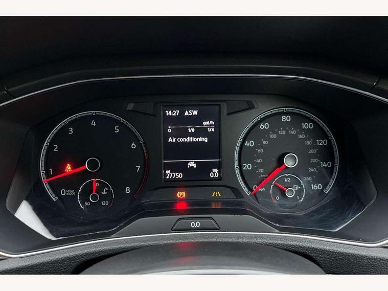 'Lights On' Reminder warning buzzer, Adaptive cruise control with front assist, radar sensor controlled distance monitoring, city emergency braking, Automatic start/stop system, Bluetooth telephone and audio connection for compatible devices, Car information display, Driver alert system with audible and visual fatigue detection system, Driver tips and journey analysis, Emergency call service, Lane assist with warning text instrument cluster, Modified key software - reduce switch off time for key status change to Long no motion, Multifunction computer with visual gear change recommendation for fuel consumption, Service interval indicator, Think blue trainer driver tips and journey analysis, Wireless app connect for apple carPlay, Battery regeneration during braking, Centre arm rest including USB type C interface and USB charging socket, DAB Digital radio, Diversity antenna for FM reception, Front USB type C Interface 2X and USB charging socket, Music playback - MP3, WMA and AAC files, Premium USB cable in choice of either Apple or Android smartphone compatibility, SD card slot, Simultaneous pairing of 2 compatible mobile devices, Single CD player, glovebox mounted, SMS functionality - read, compose and send SMS messages using touch-screen display, Storage compartment with longitudinal and height adjustable in armrest and two rear air vents, Title and cover art display, Auto dimming interior rear view mirror, Automatic hazard lights activation under emergency braking, Black grained lower door protectors, Black grained wheel arches, Body colour door handles, Body colour sports bumpers with silver metallic underbody fascia, Chrome effect left and right trapezoid exhaust tailpipe fascia surround, Chrome trim on upper and lower radiator grille, Dusk sensor, Electrically foldable, adjustable and heated door mirrors with puddle lights and reverse activated kerb-view adjustment on passenger's door mirror, Front and rear electric windows, Front windscreen wiper with intermittent wipe and 4 position delay, Fully galvanised body, Heated rear window, High level 3rd brake light, LED rear number plate lights, Manual coming/automatic leaving home lighting function, Rain sensor, Rear tinted glass from B-pillar backwards approx 65% tinted, Rear wash/wipe with intermittent wipe setting, Volkswagen roundel, 2 Front and rear reading lights incorporating LED technology, 3 rear head restraints, 4 load lashing points in luggage compartment, Ambient lighting in front footwell and light strips below trim in front doors, Climate control - 2 zone electronic air conditioning with automatic air recirculation and allergy filter, Drawer under drivers seat, Front cupholders x 2, Front seat back storage pockets, Glovebox, Height adjustable front seats, Height/reach adjust steering wheel, Illuminated vanity mirrors, Instrument lighting, white adjustable panel illumination, Interior light delay, Isofix easy fit child seat preparation for 2 outer rear seats, Load through provision with single cup holder when folded down, Luggage compartment cover, removable, Luggage compartment lighting, Split folding rear seat backrests with centre armrest, Storage compartment in left and right luggage area, Storage compartment in rear doors, Storage compartments in driver and front passenger doors, 3 rear three point seatbelts, ABS, Curtain airbags, Driver and front passenger safety-optimised head restraints, Drivers and front passengers airbags with passengers deactivation switch, Drivers seatbelt reminder, Electronic parking brake with auto hold, Electronic stability control (ESC) includes ASR, EDL, EDTC and trailer stabilisation function, Front seat side impact airbags, Predictive pedestrian protection, Rigid safety cell with front and rear crumple zones, Three point height adjust front seatbelts + pretensioners, Tyre pressure loss indicator, Ventilated front and rear disc brakes, Volkswagen roadside assistance, Alarm with remote central locking and interior protection, Electronic engine immobiliser, Remote central locking with 2 remote folding keys,