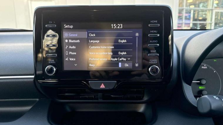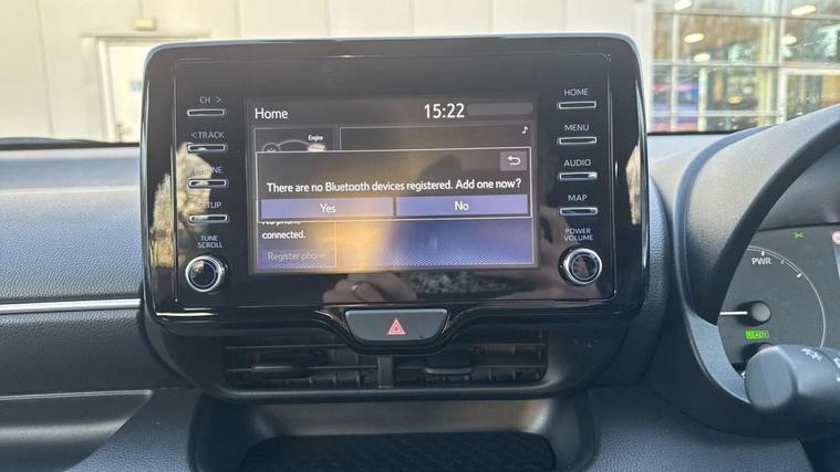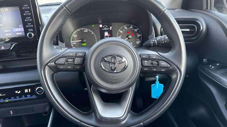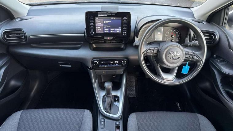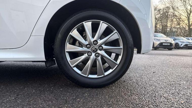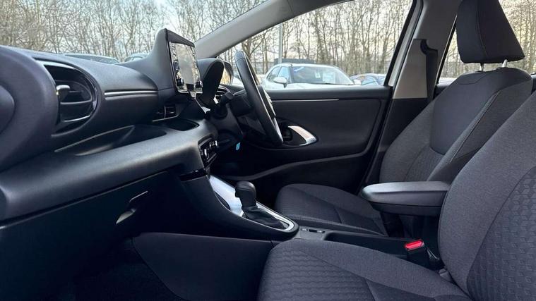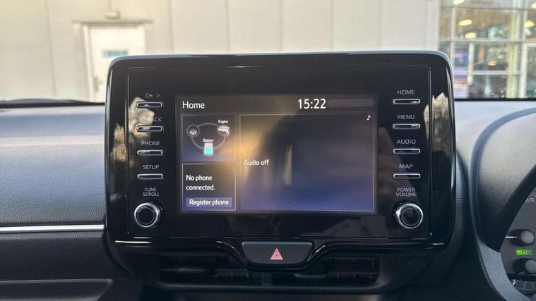 4.2" coloured TFT multi information display with analogue speedometer, Adaptive cruise control, Adjustable speed limit with speed warning, Bluetooth connectivity, E-call, Electric power steering, Hybrid energy display, Multi information display switches on steering wheel, Reversing camera, Smartphone integration with Apple CarPlay and Android auto, Tailgate, Voice recognition, Vehicle Stability Control (VSC), 4 speakers, 7" Multimedia display touch screen, Toyota Touch 2 with DAB, USB connection, Acoustic windscreen glass, Auto windscreen wipers, Automatic headlights, Body coloured door mirrors, Bulb indicators, Chequered front grille, Daytime running lights, Electric adjustable heated door mirrors, Follow me home headlights, Front auto power windows with anti jam protection, Halogen projector headlights, LED High mounted stop lamp, Manual headlight levelling, Rain sensor, Rear side wing doors, Rear spoiler, Rear wiper, Shark fin antenna, Turning signal integrated indicators in door mirrors, Variable front intermittent wipers, 3 adjustable rear headrests, 3 seat bench in 2nd row, 3 spoke leather steering wheel, 60/40 split folding rear seat, Active headrests, Adjustable boot height, Auto air conditioning, Coat hooks in rear grab handles, Cup holders (2 front & door), Data Communication Module (DCM) connected services, Fabric upholstery, Front armrest, Glovebox, Grey roof lining, Height adjustable driver's seat, Isofix seat fixing, Leather gearshift, Pollen filter, Shopping bag hooks, Single front passenger seat, Tilt/telescopic steering column, 3 point seatbelts on all rear seats, ABS+EBD+Brake assist, Electronic parking brake, Emergency brake light system (EBS), Front passenger airbag on/off switch, Front seatbelt reminder, Hill start assist control (HAC), Rear child proof door locks, Rear seat belt reminder, Supplemental Restraint System (SRS) 8 airbags: Driver & passenger's airbags, dual side curtain airbags, side impact airbags, front centre airbag, Toyota Safety Sense 2, Precollison + Night time Pedestrian & Cyclist Detection, Lane Trace Assist, Auto High Beam, Intelligent ACC & Road Sign Assist, Tyre pressure warning system, 2x Master key, Alarm/immobiliser, Remote powered central double locking doors, Soft touch instrument panel, Space saver spare wheel,