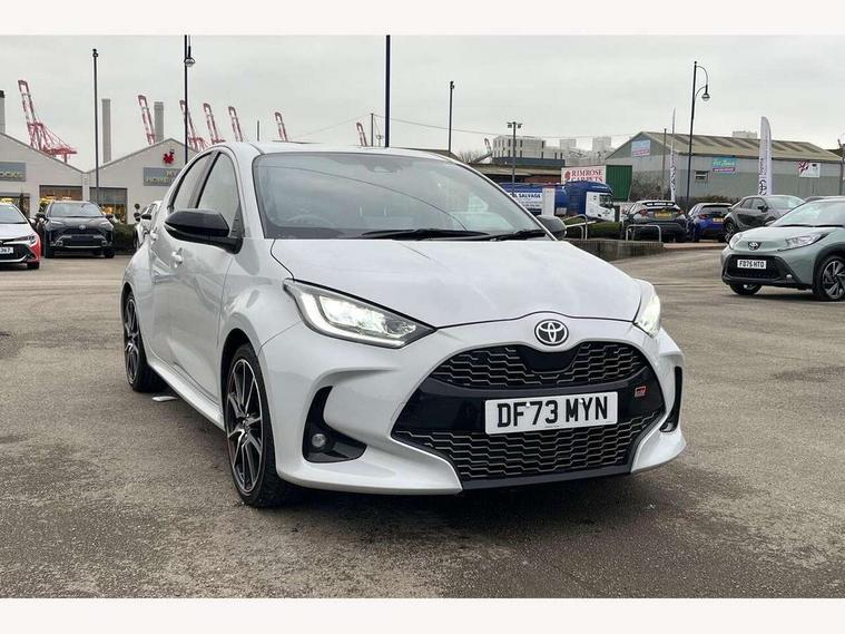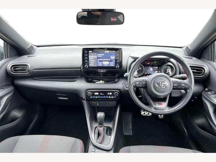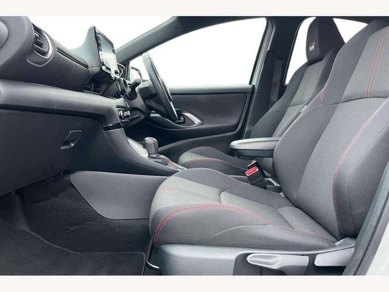 Adaptive cruise control, Adjustable speed limit with speed warning, Bluetooth connectivity, Colour binocular inspired displays with digital speedometer, E-call, Electric power steering, Hybrid energy display, Multi information display switches on steering wheel, Reversing camera, Smartphone integration with Apple CarPlay and Android auto, Tailgate, Voice recognition, Vehicle Stability Control (VSC), 6 speakers, 8" Multimedia display touch screen, Toyota Touch 2 with DAB, USB connection, Acoustic windscreen glass, Auto windscreen wipers, Automatic headlights, Body coloured door mirrors, Dark chrome lower front grille, Electric adjustable heated door mirrors, Follow me home headlights, Front auto power windows with anti jam protection, Full LED rear lights, LED daytime running lights, LED front fog lights, LED front light guide, LED Headlights, LED High mounted stop lamp, LED Indicators, LED rear light guide, Manual headlight levelling, Painted chequered front grille with hot stamp in mesh design, Rain sensor, Rear auto power windows with anti jam protection, Rear privacy glass, Rear side wing doors, Rear spoiler, Rear wiper, Shark fin antenna, Turning signal integrated indicators in door mirrors, Variable front intermittent wipers, 3 adjustable rear headrests, 3 seat bench in 2nd row, 3 spoke leather steering wheel, 60/40 split folding rear seat, Active headrests, Adjustable boot height, Black roof lining, Coat hooks in rear grab handles, Cup holders (2 front & door), Data Communication Module (DCM) connected services, Dual zone automatic air conditioning, Fabric upholstery with red stitching, Front armrest, Front sport seats, Glovebox, Height adjustable driver's seat, Height adjustable passenger seat, Isofix seat fixing, Leather gearshift, Map pockets on the backs of the front seats, Pollen filter, Shopping bag hooks, Single front passenger seat, Tilt/telescopic steering column, 3 point seatbelts on all rear seats, ABS+EBD+Brake assist, Electronic parking brake, Emergency brake light system (EBS), Front passenger airbag on/off switch, Front seatbelt reminder, Hill start assist control (HAC), Rear child proof door locks, Rear seat belt reminder, Supplemental Restraint System (SRS) 8 airbags: Driver & passenger's airbags, dual side curtain airbags, side impact airbags, front centre airbag, Toyota Safety Sense 2, Precollison + Night time Pedestrian & Cyclist Detection, Lane Trace Assist, Auto High Beam, Intelligent ACC & Road Sign Assist, Tyre pressure warning system, 2x Master key, Alarm/immobiliser, Keyless smart entry with push button start, Remote AC via MyT, Remote locking via MyT, Remote powered central double locking doors, GR Sport interior styling with accents and exterior styling, Piano black interior trim, Soft touch instrument panel, 18" machined face alloy wheels with GR Sport red deco lines, Space saver spare wheel,