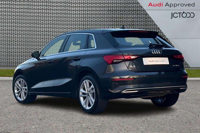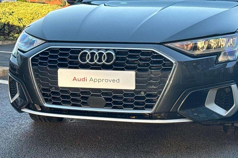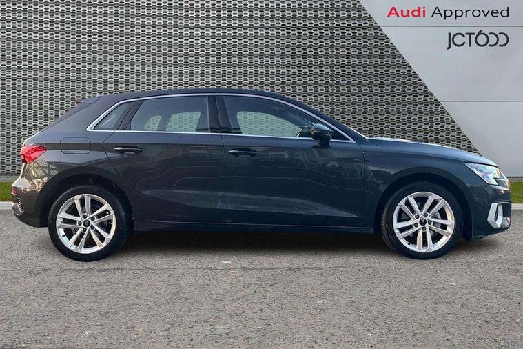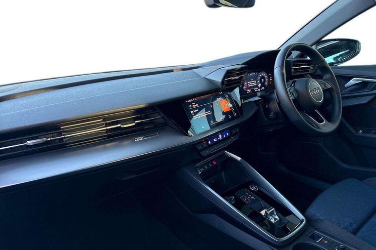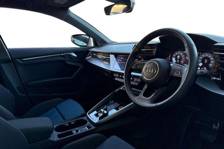Audi drive select (Auto, Comfort, Dynamic and Individual), Audi smartphone interface, Audi Virtual Cockpit - 10.25" digital and colour instrument cluster, Automatic start/stop system with recuperation, Bluetooth interface, Camera based traffic sign recognition, Collision avoidance assistant, e-Call (emergency call), Electromechanical power speed sensitive steering, Lane departure warning system, MMI Navigation Plus with high resolution 10.1" colour touch screen display, Service indicator, Trip computer, Voice control system with natural language interaction, Standard suspension, 2xUSB-C connection with data and charging functions, 6 passive loudspeakers, DAB Digital radio, 3rd brake light, Acoustic glass windscreen, Aluminium window trim, Auto dimming frameless rear view mirror, Body colour exterior mirrors, Body colour roof spoiler, Electrically adjustable/heated/folding/auto dimming door mirrors with integrated LED indications + kerb view function for passenger side, Front electric windows, LED daytime running lights, LED headlights and halogen rear lights, Light and rain sensors, Rear electric windows, Rear side wing doors, Rear window, rear door windows and rear side windows in clear glass, Rear wiper, 12V socket and storage compartment in front centre console, 3 seat bench in 2nd row, 3 spoke leather multifunction steering wheel with paddle shift, 4 way electrically adjustable lumbar support for driver and front passenger, 60/40 split folding rear seat bench, Dual zone electronic climate control, Front and rear headrests, Front centre armrest, Front door sill trims with aluminium inlay, Front/rear floor mats, Height and reach adjustable steering wheel, Interior lighting - Front and rear roof module including reading lights, glove compartment light and right hand side, Interior lighting - glove compartment light and right hand side, Luggage compartment floor covering, Manual boot compartment lid, Manually adjustable front seats, Routine cloth upholstery with front sports seats, Seat side bolsters, Single front passenger seat, Steel grey cloth headlining, Aluminium interior elements pack - A3 Sportback, LED interior lighting pack - A3 Sportback, Sport styling pack - A3 Sportback, 3x3 point rear seat belts, Driver and front passenger airbag with passenger airbag deactivation, Electronic Stabilisation Control (ESC) including ABS, ASR and EDL, First aid kit with warning triangle and 2 safety vests, Front side airbags with head airbags and interaction airbag, Pre-sense front with pedestrian and cyclist detection, Seatbelt monitoring, Tyre pressure loss indicator, Anti theft alarm, Anti-theft wheel bolts, Electronically operated child locks, Immobiliser, Remote control central locking, Inlays with silk effect paint in platinum grey,