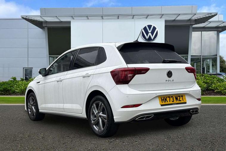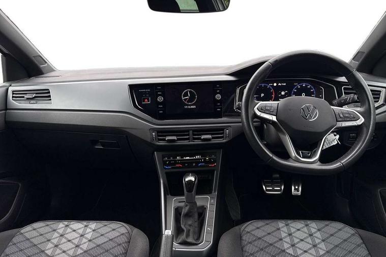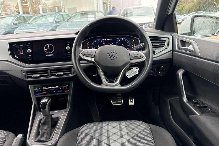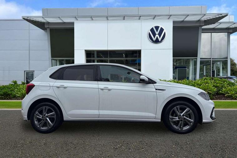 Adaptive cruise control with follow-to-stop and speed limiter, Bluetooth mobile phone interface, Digital Cockpit Pro with 10.25" Display, Driver alert system, Dynamic road sign display, Emergency call service, Power assisted speed sensitive steering, Preparation for We connect and We connect plus, Speedo and rev counter, electronic odometer, trip, service interval display and fuel gauge, Standard rear axle, Travel Assist - Lane keeping system and traffic jam assist, Travel assist including emergency assist, Trip computer, Warning signal and warning light for front and rear seatbelts not fastened, Washer fluid level indicator, Wireless app connect, Front wheel drive, Rear shock absorpion, Start-stop system with battery regeneration (recuperation - energy recovery during braking), DAB Digital radio, Diversity antenna for FM reception, Front and rear 6 speakers, Body colour bumpers, Body colour door handles, Body colour door mirrors, Electric front windows, Front scuff plates with R-Line logo, Heat insulating darkened glass in side and rear windows, Heat insulating glass windscreen, Power folding adjustable/heated exterior mirrors and front passenger exterior mirror lowering function, Rear electric windows, Rear fog light, Rear side wing doors, Rear tinted glass from B-pillar backwards approx 65% tinted, Rear windscreen washer and wiper with interval delay, Third brake light, 12V power socket in centre console, 2 USB-C ports in the front, 2 USB-C charging sockets on the center console in the rear, 3 rear head restraints, 60/40 split folding rear seat and rear seat bench not split, Air care climatronic air conditoning system with active combination filter and 2-zone temperature control, Black roof lining, Chrome plated radiator grille inserts, air vent surrounds and light switch surrounds, Door and side trim panel, Driver and front passenger seat height adjustment, Driver/passenger sunvisors with illuminated vanity mirrors, Front + rear carpet mats in recycled material, Front centre armrest, Front footwell illumination, Front seat backrest storage pockets, Front sports comfort seats, Handbrake lever handle in leather, Headliner in recycled material, Isofix child seat preparation easy-fit (for two outer rear seats, and front passenger seat) compatible with I-size, Karoso artvelours cloth upholstery, Leather trimmed gear knob, LED interior light with switch off delay and dimmer, 2 reading lights front and rear, Luggage compartment cover, Luggage compartment floor, Luggage compartment lighting, Lumbar adjustment for front seats, Single front passenger seat, Stainless steel pedals, Standard pedal cluster, Three spoke leather wrapped multifunction steering wheel with shifting paddles, Light and sight pack - Polo R-Line/Black Edition, 3 point height adj front seatbelts + pretensioners, 3x3 point rear seatbelts, ABS, Driver and front passenger airbag with front passenger airbag deactivation, Drivers and front passengers safety optimised head restraints, ESC (Electronic stability control) + EDL (Electronic Differntial lock) and ASR (Traction control), Extended and predictive pedestrian/ cyclist protection, Front curtain and side airbags with center airbag, Hill hold control, Manual child lock in rear doors, Single tone horn, Tyre pressure loss indicator, Alarm with interior protection, Anti-theft alarm system with interior monitoring, backup horn, and towing protection, Anti-theft wheel bolts, Electronic engine immobiliser, Chrome applications on rotary light, mirror adjustment, window regulator switches, outlet with frame in black, Dark grey anodised matt decorative inserts in dash and front door panels, Low rolling resistance tyres,