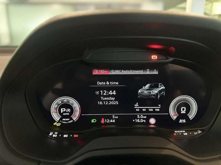 3D map display, Audi connect navigation and infotainment includes innovative services, Audi connect remote and control connects your vehicle to your smartphone, Audi drive select: S tronic - power steering assistance + engine + gearshift (modes: comfort, auto, dynamic, efficiency, individual), Audi smartphone interface - Apple carplay/Android Auto, USB connect, 2xSDXC card readers, voice control for navi, telephone, music and 3rd party apps, Audi virtual cockpit, Automatic start/stop system with recuperation, Bluetooth interface includes bluetooth audio streaming, Camera based traffic sign recognition, Cruise control, Distraction and Fatigue warning, E-call, Jukebox hard drive memory for music (10GB), Lane departure warning, MMI navigation plus with 8.8" touchscreen, Natural voice recognition, Power operated tailgate, Progressive steering, Rear parking sensors, Sport suspension, 6 passive loudspeakers, DAB Digital radio, USB type C port, Audi beam, Auto dimming rear view mirror, Black window trims, Bumper in full body colour paint finish, Electrically adjustable, folding, auto dimming and heated door mirrors with integrated LED side indicators, Front windscreen with grey tinted sunband, LED daytime running lights, LED headlights with dipped beam, high beam, position lights, indicators, LED rear lights, LED third brake light, Privacy glass - dark tinted rear and rear side windows from B-pillar backwards, Rear side wing doors, Rear wiper, Variable front intermittent wipers, Wheel arch trims in manhattan grey, 12V socket in front, 3 seat bench in 2nd row, 3 spoke flat bottomed multi-function leather sport steering wheel with gear shift paddles with S logo, 4-way electric lumbar support for front seats including manual seat height adjustment for both front seats, 60/40 split folding rear seat bench, Black carpets, Black cloth headlining, Front and rear head restraints, Front centre armrest, Front sport seats, Front/rear floor mats, Height/reach adjust steering wheel, Illuminated door sill trims with S logo, ISOFIX child seat mounting in front passenger and rear outer seats, Manual air conditioning, Single front passenger seat, Stainless steel pedals, Black styling pack - Q2, 3x3 point rear seatbelts, 6 airbags - Front, curtain and front side airbags, Electromechanical parking brake, Electronic stabilisation control including ABS, ASR and EDL, Front passenger airbag deactivation, Hill hold assist, Pre-sense front with pedestrian recognition, Seatbelt monitoring, Tyre pressure warning light with visual and acoustic warning, Warning triangle and first aid kit, Anti theft wheel bolts, Electronically operated child locks, Remote central door locking, Thatcham category 1 alarm, Aluminium interior element, Black dashboard, Gloss black centre console, Matt brushed aluminium trim inlays, Tool kit,