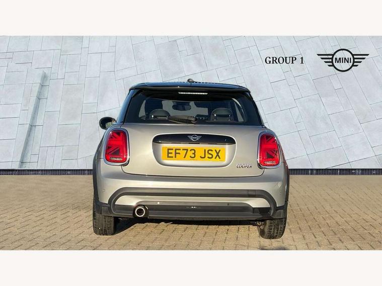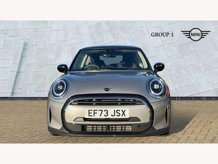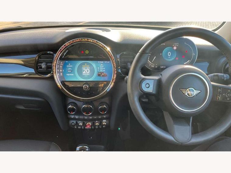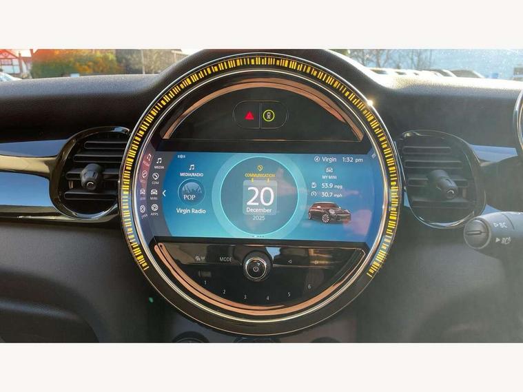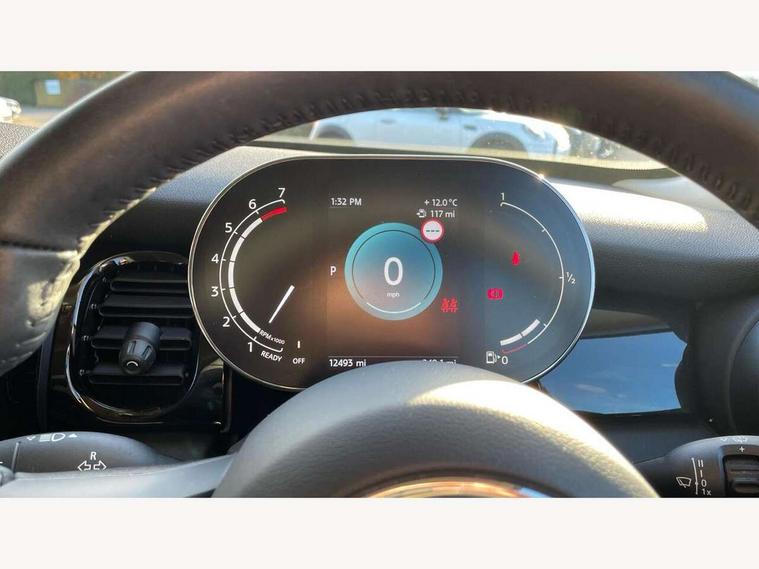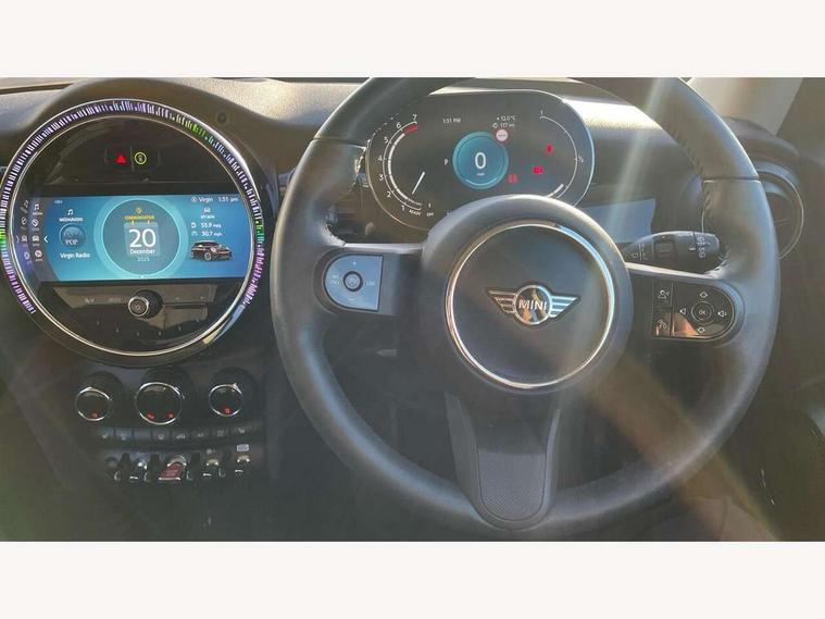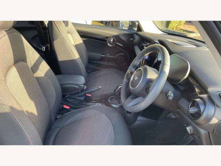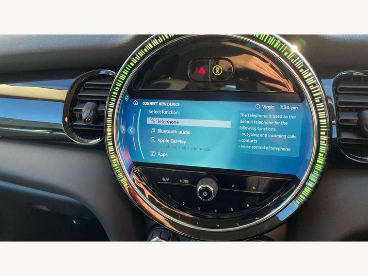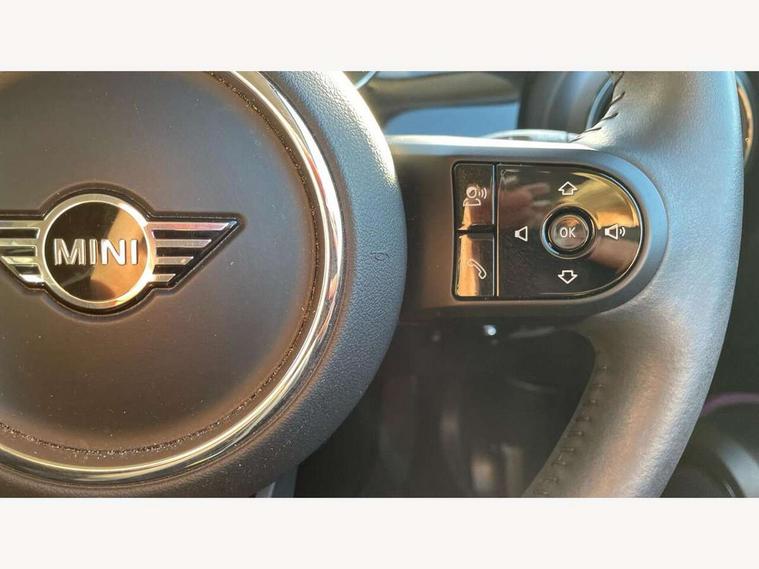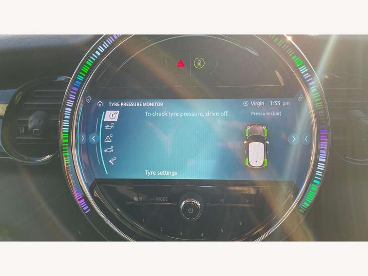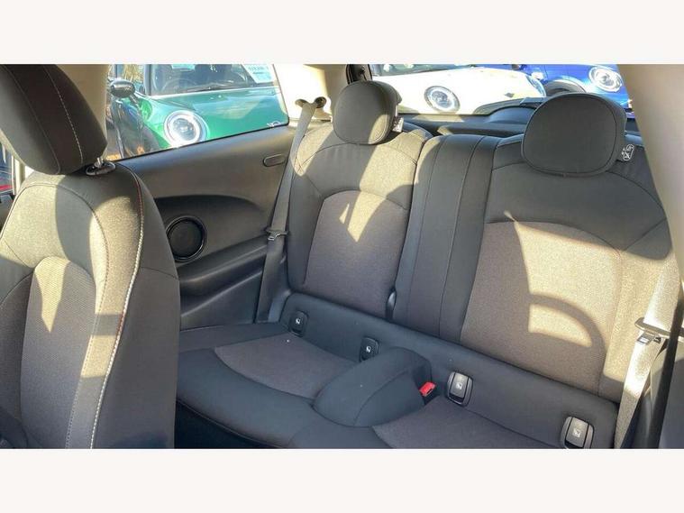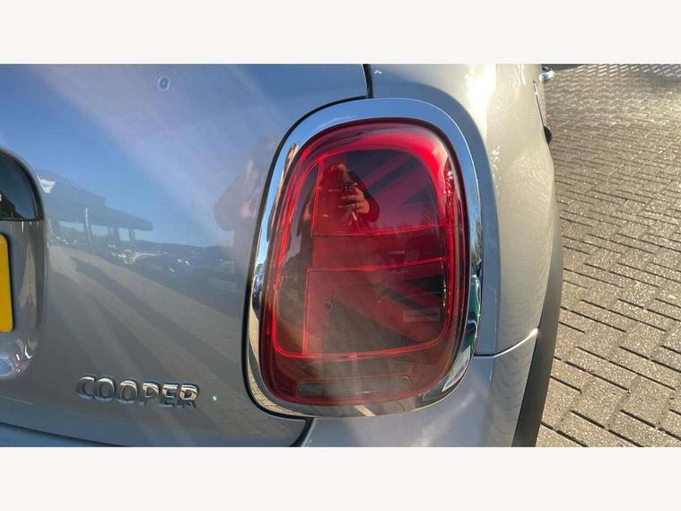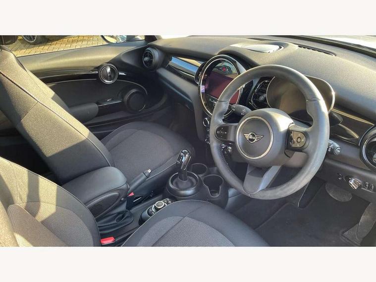 Apple CarPlay, Automatic start/stop function with brake energy recuperation, Compatible mobile phone bluetooth with audio streaming, Cruise control with brake assist, Electro-mechanical speed dependant steering assistance, Flexible car sharing preparation, Instrument cluster, Mini E-call, MINI TeleServices, On board computer, Service interval indicator, Double Vanos system, Fully variable valve control, High precision injection, Performance Control, Steptronic transmission with double clutch, 8.8" touchscreen with LED ring, FM tuner and DAB digital radio, 3rd brake light, Automatic headlight activation switch, Body colour fuel filler cap, Chrome border high gloss black slats radiator grille, Dynamic brake lights, Electric front windows, Exhaust tailpipe on left with chrome finisher, Heated rear window, Heated windscreen washer jets, LED headlight with closed ring and daytime driving lights, Metal door sill strips with MINI imprint, Model logo Cooper on right of tailgate, Rain sensor window wipers, Rear fog lights, Rear LED lights with union jack design, Rear window wiper, Side scuttle panel with integrated indicator, Sun/heat protection glass, White indicator lenses, 12V Accessory socket in centre console, 2 seat bench in 2nd row, 4 lashing eyes in luggage compartment, 60/40 split folding rear seat, Ambient lighting, Carbon black colour line - Knee roll and door armrest, Chrome interior highlights, Cupholders, Front and rear head restraints, Front and rear isofix with front passenger airbag deactivation, Front floor mats in velour, Glove compartment, Height and length steering column adjustment, Interior lighting with 12 different colours across the dashboard, underneath door bezel with illuminated laser-engraved design on central display, Leatherette gearshift lever and handbrake gaiters, LED reading lights, vanity mirror lights, front foot well light and spotlight on front seats, Manual air conditioning, Mechanical seat adjustment - forward/back & backrest for front seats and driver seat height adjust, Multifunction steering wheel, Passenger seat height adjuster, Satellite grey headlining including grab handles and clothes hooks, Single front passenger seat, Sport leather steering wheel with speed limiter and audio/communication controls, Storage compartments in doors, Sunvisors with vanity mirrors, 3 point seatbelts on all four seats, 6 Airbags - front, side, head and seat belt tensioners, Anti-lock braking system (ABS), DSC - Dynamic Stability Control, Front and rear disc brakes, Single tone fanfare horn, Tyre pressure monitoring system, Alarm system with tilt sensor, monitoring doors, bonnet interior and tailgate, Electronic vehicle immobiliser, Start/stop toggle with keyless go, Piano black interior trim, Tool kit, Tyre repair kit,