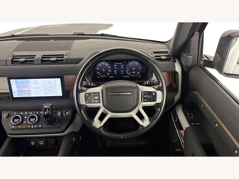 360 degree parking aid, 3D Surround Camera with 360 View, 180 Rear View, Front Traffic Detection, Forward Vehicle Guidance, Tow Hitch Assist and clear sight Ground View, Android Auto, Apple CarPlay, Assisted tailgate with soft close, Blind spot assist, Bluetooth system, Brake pad wear indicator, Clear exit monitor, Connected navigation pro, Driver condition monitor, Electric power assisted steering (EPAS), Lane keep assist, Push button start, Rear traffic monitor, Traffic sign recognition with adaptive speed limiter, Trip computer, Wade Sensing, 8 speed automatic transmission, All wheel drive system, Twin speed transfer box, DAB Radio (Digital Audio Broadcasting), Meridian 400w sound audio system with 11 speakers and subwoofer, Pivi pro connected, Automatic headlight levelling, Automatic headlights, Centre high mounted stop light, Electric heated/power fold door mirrors with approach lights and auto dimming driver side, Electric windows with one touch open/close and anti-trap, Follow me home lighting, Front fog lights, Heated rear window with timer, Heated windscreen, LED tail lights, Panoramic rear side glass, Privacy glass, Puddle lights, Rain sensing windscreen wipers, Rear fog lights, Rear wiper, Side hinged tailgate, Trailer stability assist, X-Dynamic badge, 12V power socket in loadspace, 3 seat bench in 2nd row, Alpine lights, Durable rubber cabin flooring, Durable rubber loadspace flooring, Footwell lights, Loadspace cover, Loadspace Hook, Multifunction steering wheel, Overhead stowage for sunglasses, Premium cabin lighting, Rear headrests, Rear ISOFIX, Rear reading lights, Single front passenger seat, Standard seat configuration, Storage glovebox, Sunvisors with illuminated vanity mirrors, Online pack with data plan - Defender, 5 x 3 point seatbelts, ABS, Brake hold function, Cornering brake control (CBC), Customer configurable autolock, DSC - Dynamic Stability Control, EBD - Electronic brakeforce distribution, Electric parking brake (EPB), Emergency brake assist, Emergency braking, ESP + traction control, Front airbags with passenger seat occupant detector, HDC - Hill descent control, Hill launch assist, Low traction launch, Remote for (e-Call, Optimised assistance call, InControl app, Climate, beep and flash and door), RSC - Roll stability control, Seat belt reminder, TPMS (Tyre pressure monitoring system), Alarm, Immobiliser, Intrusion sensor, Keyless entry, Locking wheel nuts,