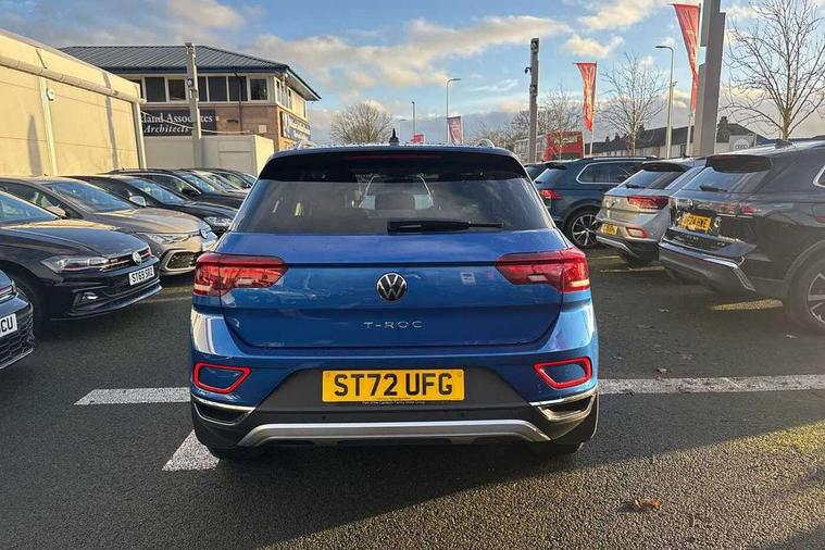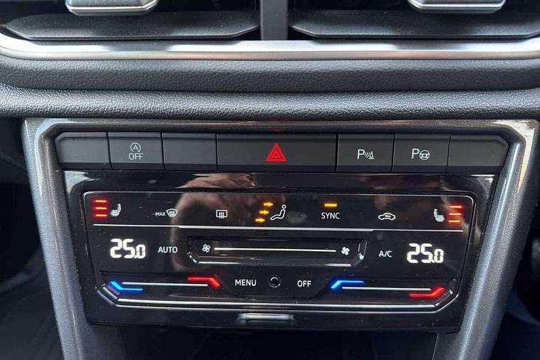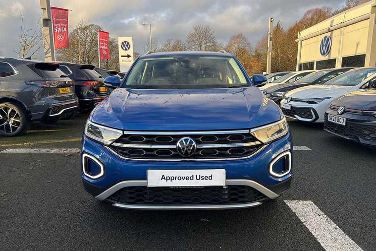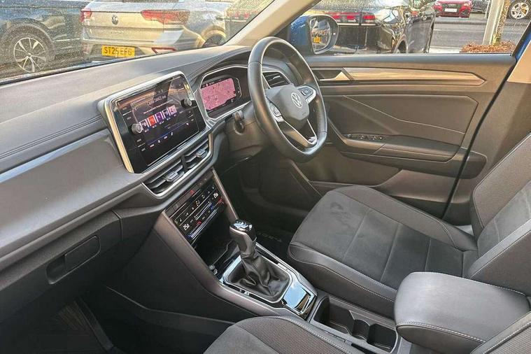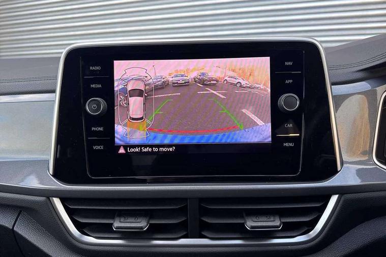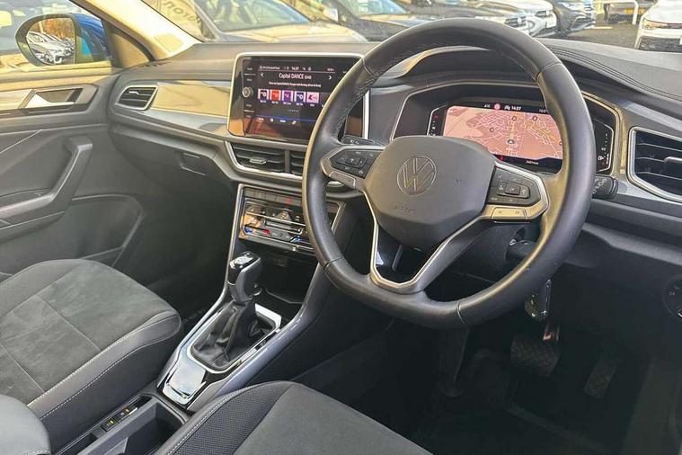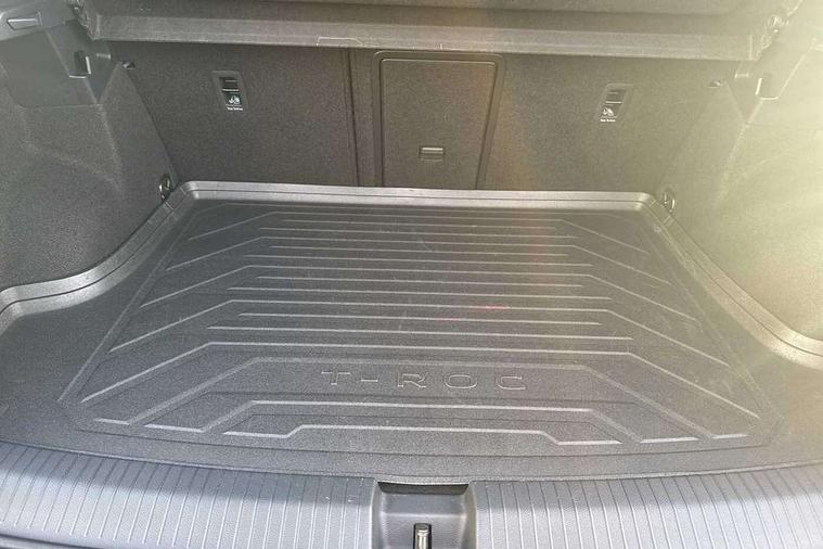 10.25" Digital cockpit pro, Bluetooth mobile phone interface, Driver alert system with fatigue detection, Driver tips and journey analysis, Emergency call service, Lane keeping system Lane Assist, Modified key software - reduce switch off time for key status change to Long no motion, Online services, Park assist including front and rear parking sensors, Service interval indicator, Tailgate/trunk lid release from outside, Think blue trainer driver tips and journey analysis, Warning sound and light for front seatbelts unfastened, Wireless app connect, Battery regeneration during braking, Start/stop function with battery regeneration, Diversity antenna for FM reception, Front and rear 6 speakers, Music playback - MP3, WMA and AAC files, Premium USB cable in choice of either Apple or Android smartphone compatibility, SD card slot, Simultaneous pairing of 2 compatible mobile devices, Title and cover art display, We Connect and We Connect Plus functionality, 3rd brake light, Auto dimming interior rear view mirror, Automatic hazard lights activation under emergency braking, Automatic headlight control with LED separate daytime running lights with coming/leaving home function, Body colour sports bumpers with silver metallic underbody fascia, Dynamic headlight range control with self adjusting whilst driving, Extended roof spoiler, Exterior mirrors aspherical on driver side, convex on front passenger side, External USB type C socket and charging sockets, Front windscreen wiper with intermittent wipe and 4 position delay, Heated rear window, LED Plus headlamps, LED rear combination lamps, LED rear number plate lights, LED tail lamp rear comination lamps, Light mode for poor weather, rain, fog or snow, Power windows with comfort operation and circuit breaker, Rain sensor, Rear exhaust tailpipe, Rear fog light on one side and reversing lights on both sides, Rear side wing doors, Rear wash/wipe with intermittent wipe setting, Remote electrically foldable door mirrors, puddle lights and reverse activated passenger's door mirror, 12V power socket in centre console, 3 rear head restraints, 3 seat bench in 2nd row, 4 load lashing points in luggage compartment, Air care climatronic air conditoning system with active combination filter and 2-zone temperature control, Chrome plated radiator grille inserts, air vent surrounds and light switch surrounds, Door and side trim panel with leatherette insert, Drawer under drivers seat, Front + rear carpet mats, Front centre armrest, Front comfort sports seats, Front cupholders x 2, Front footwell illumination, Instrument lighting, white adjustable panel illumination, Interior ambient lighting and surround lighting, Interior light delay, Isofix child seat preparation, Leather gearshift handle, LED interior light with switch off delay/dimmer and 2 front/rear LED reading lights, Load-through provision with cup holder when folded down ('Unsplit rear seat bench, split folding backrest, with centre armrest), Luggage compartment lighting, Non-folding front passenger seat backrest, Single front passenger seat, Storage compartment in left and right luggage area, Storage compartment in rear doors, Storage compartments in driver and front passenger doors, Sunvisors with illuminated vanity mirrors, Variable boot floor, height adjustable and removable, Driver assistance pack without proactive passenger protection - T-Roc, 3 point height adj front seatbelts + pretensioners, 3 point seatbelts in outer rear with ECE label, ABS, Child locks on rear doors, Driver and front passenger airbag with front passenger airbag deactivation, Driver and front passenger safety-optimised head restraints, Drivers seatbelt reminder, Electronic parking brake, Electronic Stability Control (ESC) inc EDL (Electronic Differential Lock) and ASR (Traction Control), Front and rear passengers curtain airbag system including front side airbags, Front assist with city emergency braking and pedestrian monitoring, Front seat side impact airbags, Predictive pedestrian protection, Rear disc brakes, Single tone horn, Tyre pressure loss indicator, Volkswagen roadside assistance, Alarm with interior protection, Anti-theft alarm system with interior monitoring, backup horn, and towing protection, Remote central locking with SAFELOCK, radio remote control with 2 remote control folding keys, Trims for alloy wheels,
