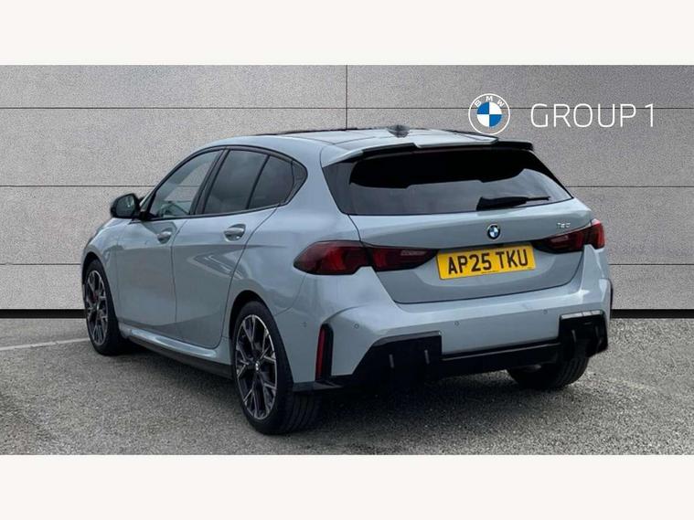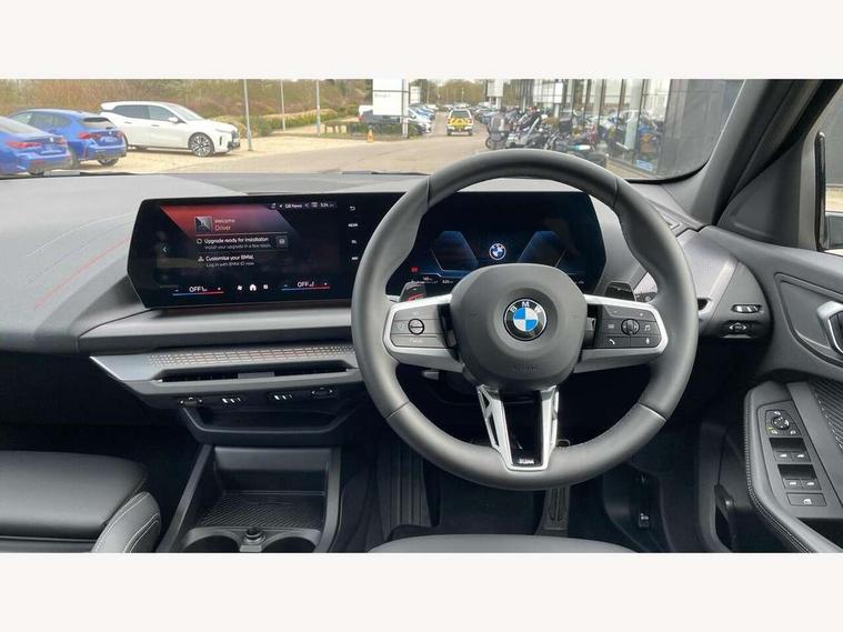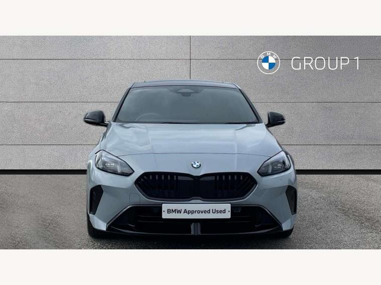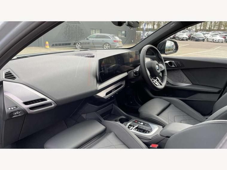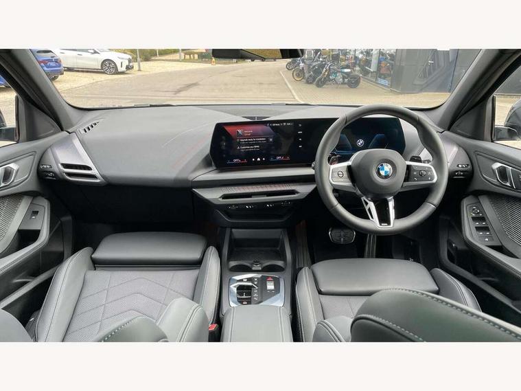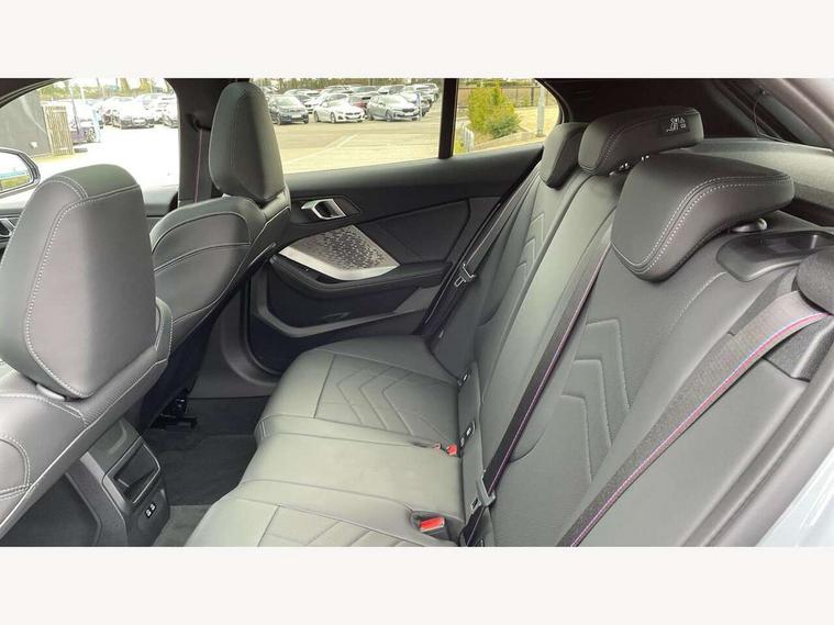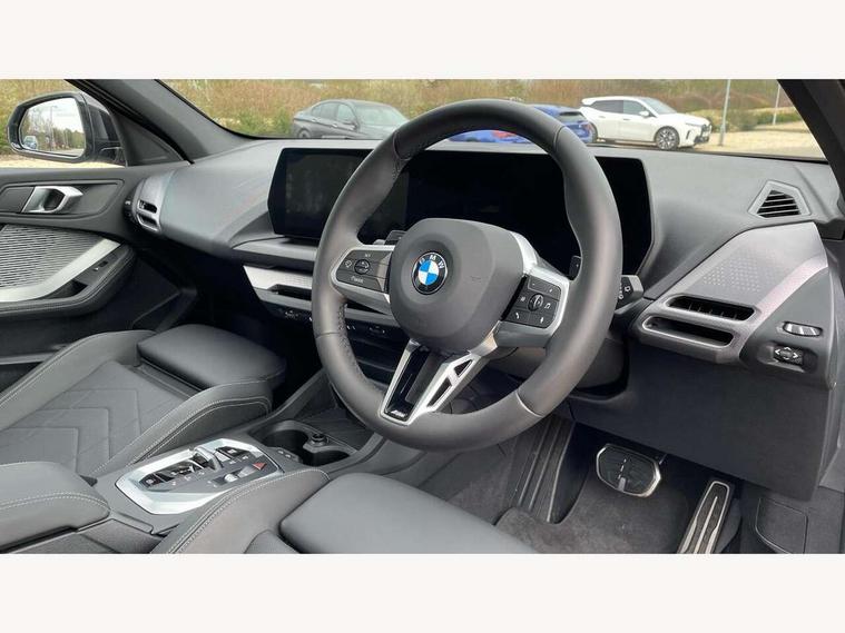 Active guard plus, Attentiveness assist, Bluetooth / WiFi interface for wireless connection of mobile terminal devices and audio streaming, BMW ConnectedDrive online services, BMW Live cockpit plus, BMW Teleservices, Check Control warning system for monitoring of lights and door/luggage compartment open warning, Eco pro mode, Electric power steering with Servotronic steering optimised at all speed ranges, Evasion assistant, Flat airvents in instrument panel with adjustable slats, Front and rear parking sensors, Front axle single joint with specific axle kinematics to minimise drive influences on steering + provide increased rigidity agile driving behaviour, Gearshift time display in manual mode, Integrated owners handbook, Left turn warning with brake function, My modes (Personal / Efficient / Sport), Oil sensor for level and grade, On board computer, Optimum shift indicator, Park assist including reversing assistant, lateral parking aid and reversing assist camera, Personal e-SIM, Personal Profile, Pull away assistant, Rigidly mounted rear subframe - Multi link construction with separate spring / damper configuration and excellent driving characteristics, Speed limit Info including no-overtaking indicator, Speed limiter, 49 litre fuel tank, Aluminium lightweight construction, Anti roll bar front and rear, Balancer shaft, Double VANOS twin scroll turbocharging system, Drive Performance Control, Electronic differential lock, Electronic selector lever, High precision injection, M Adaptive suspension, Petrol Particulate Filter, Steptronic transmission with double clutch, Twin tube gas filled shock absorbers with degressive characteristic curve, VALVETRONIC engine management, DAB Digital radio, Auto dimming rear view mirror, Automatic windscreen wipers and automatic headlight, Body colour door handles, Body colour roof trims, Chrome 'M' logo side designation, Chrome exhaust twin tailpipes round 90mm in left, Chrome kidney grille frame with Satin Aluminium struts, Direction indicator side lights in exterior mirrors, Electrically adjustable exterior mirror with mirror adjustment switch on drivers armrest and aspheric on driver side, convex on passenger side, Exterior M sport design elements, Fading support, Folding side mirrors with auto dimming/folding wing mirrors with auto dimming, Follow me home headlights, Front and rear bumper system with replaceable deformation elements, Front and rear electric windows with open and close fingertip control, anti trap facility and comfort closing, Front bumper panel with M specific design in vehicle colour with inserts in black high gloss, Front door sill finishers in black plastic with M designation in metallic look, Green tinted heat protection glazing, Heated rear window, High gloss black exterior mirrors, High gloss shadowline window frame, Recess cover mirror frames and B/C pillar embelisher trim, High level third brake light, Integrated front windscreen with washer jets, LED daytime running lights, LED eyebrow turn indicators, LED front fog lights, LED Headlights, Lightweight engineering, Matt black air guide grilles, Matt black wheel arch trim, Model badge on tailgate right, Nearside reverse light in rear light cluster, Preparation for high beam assistant, Rain sensor, Rear bumper panel with M-specific design in vehicle colour with inserts in black high gloss, Rear fog lights, Rear side wing doors, Rear window wiper, Shark fin antenna, Side sill covers with M specific design in body colour, Trailer stabilisation logic, Visible VIN plate, Welcome lighting, 12V power socket in front centre console with blanking plug, 3 rear seat head restraints, 3 seat bench in 2nd row, 3 spoke sports leather steering wheel with black leather and stitching, pearl chrome decorative finish, specific M Badge, Anthracite front and rear floor mats, Anthracite headlining, Black boot net with lashing eyes, Cargo function on 2nd seat row, Child seat ISOFIX attachment for two outer rear seats and front passenger seat with anchorage points, Conditioned based service, Driver and front passenger backrest net on rear, Driver and front passenger seat heating, Driver side folding compartment in instrument panel, Folding rear clothes hook, Footrest and pedals in black plastic, Four grab handles integrated in roof lining, Front and rear door pockets with bottle holders, Front and rear side armrest integrated into door trim, Front armrest with storage compartment, Gearshift paddles on steering wheel, Glove compartment, Height adjustable front head restraints, Luggage compartment for bag hooks on left and right, foldable luggage compartment liner and four lashing eyelets, Manual adjust steering wheel, Multi-function controls for steering wheel, Rear seat backrest with manual 60:40 split folding with 3 top tether clips integrated on rear of seat panels, Single front passenger seat, Storage compartment in centre console, Storage compartment in luggage compartment, Stowage of the parcel shelf in luggage compartment trim, Sun visors with vanity mirrors and insert tab, Two front centre console cupholders, Type C two USB ports in rear centre console, Upper retaining strap integrated into backrest rear panels, Connected pack professional - 1 Series, Interior lights pack - 1 Series, M Sport exterior styling aerodynamics pack - 1 Series, 2 tone horn, 3 point seatbelts on all seats, front pyrotechnic belt tensioners, stopper and belt force limiters, rear coded belt buckles, Airbags - Front driver/passenger, front and rear curtain head protection, front side, manual deactivation of front passenger airbag, Anti lock braking system (ABS) with brake assist, BMW emergency call, Brake drying, Braking readiness, Child proof locking system in rear door, Comfort modes, Cornering brake control, Crash sensor activating of airbags, Unlocking doors, hazard warning lights, fuel cut off, interior lighting+activation of safety battery terminal clamp, Driver and front passenger seat belt security check, Dynamic