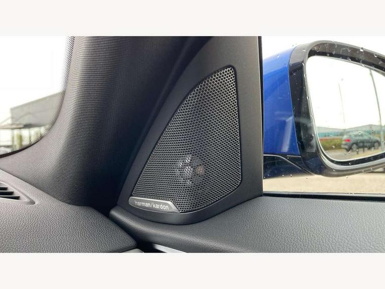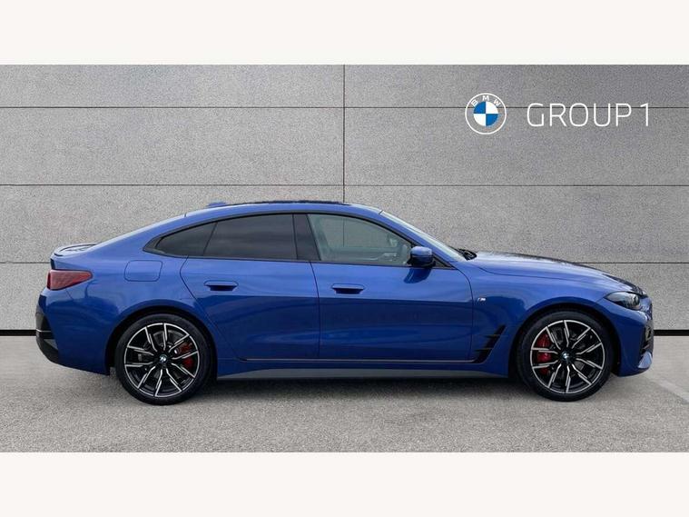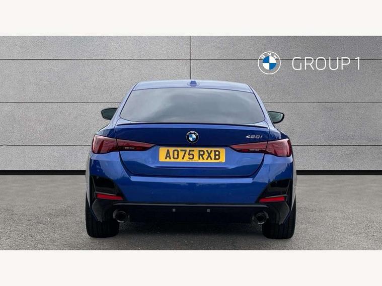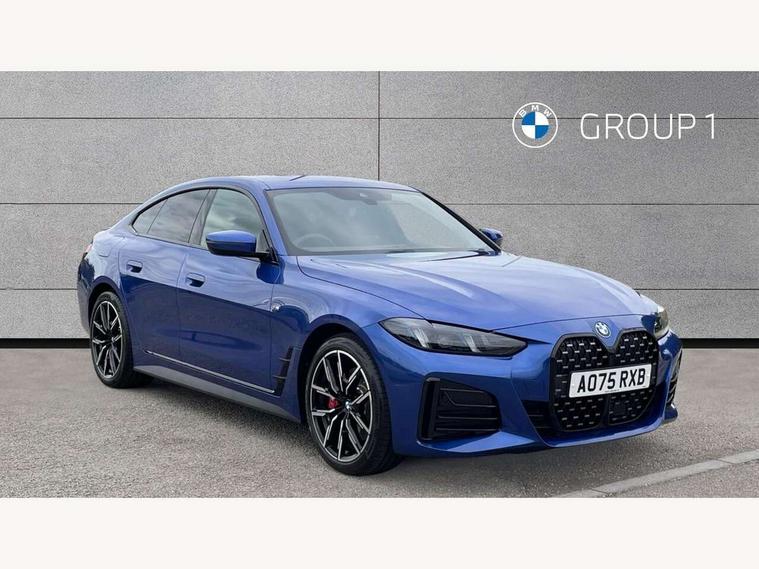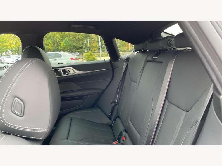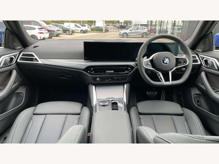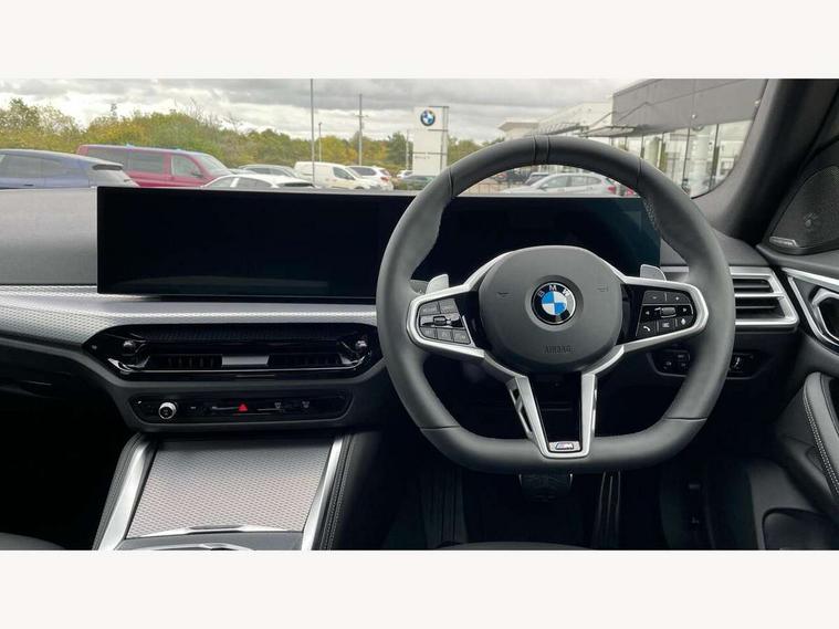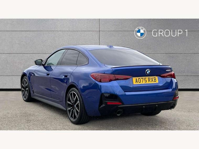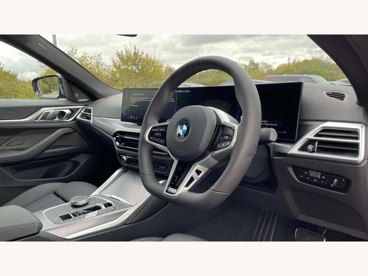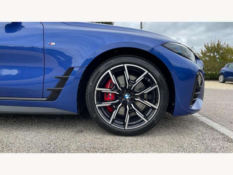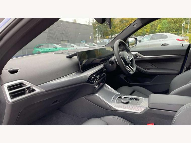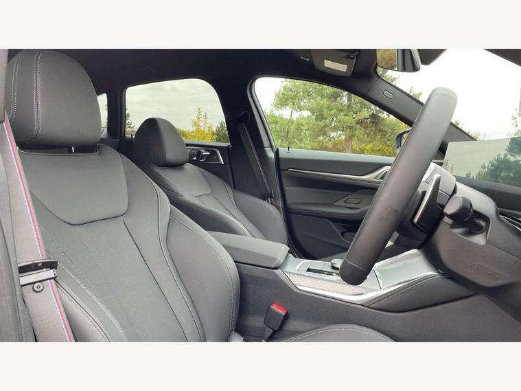 Active guard plus, Attentiveness assist, Automatic start/stop function, BMW ConnectedDrive online services, BMW iDrive controller on centre console, BMW service history, BMW Teleservices, Brake pad wear indicator in front and rear, Check Control warning system for monitoring of lights and door/luggage compartment open warning, Condition based service, Electric bootlid, Electric power steering with Servotronic steering optimised at all speed ranges, Instrument cluster with speedometer with mph readout, tachometer, fuel gauge and oil temperature gauge, Integrated owners handbook, Language version English, Oil sensor for level and grade, On board computer - average speed, fuel consumption, outside temp display with acoustic warning, clock/date, service interval, odometer/trip meter, Run flat indicator, Shifting point display, Start/stop button in black, Variable sport steering, 8 speed automatic steptronic transmission with gearshift paddles, Balanced 50/50 weight distribution, Double joint spring strut front axle, Drive experience mode switch - Comfort mode, ECO PRO mode and SPORT mode, Low centre of gravity, Petrol Particulate Filter, Stroke dependent dampers, DAB tuner, Personal eSim, Acoustic glazing, Automatic headlight beam throw control with load dependent regulating reaction, dynamic compensation of braking dive and acceleration squat, Automatic windscreen wipers and automatic headlight, BMW radiator grille with mesh grille, end face of the nuggets in aluminium matt and frame in chrome matt, Body colour fuel filler flap, Body colour roof fin, Bonnet and tailgate badge, Electric folding wing mirrors - Driver side electrochromic, auto anti dazzle function & front passenger side auto parking function without anti dazzle, Electric windows - front and rear, with open/close fingertip control, anti trap facility and comfort closing function all round, Follow me home headlights, Front and rear bumper system, Front apron plastic in body colour, Green tinted heat protection glazing, Illuminated bow type door handles in body colour drivers side with door lock, Interior rear view electrochromatic mirror with automatic anti dazzle function, LED 3rd brake light, LED daytime running lights, LED front fog lights, LED front indicators, Licence plate panel integrated into front bumper and tailgate, Low and high beam headlights in Bi-LED, M designation on front side panels, left and right, M Sport entry door sill strips, One piece front bumper cover including towing eye cover in body colour, Preparation for high beam assistant, Rear side wing doors, Rear wiper, Reversing light, Side frame trim strip black matt, Two part LED tailights in L-shape with components in smoked glass, brake light, LED turn indicator and rear fog light, Visible exhaust tailpipe finisher, Visible VIN plate, Welcome lights in interior and door handle area, Widened track and increased camber values for max transverse dynamics, agility and steering precision, Windscreen washer jets concealed underneath bonnet, 12V power socket in front centre console, 2 front cupholder in centre console with clamping elements and matt black inlay, 3 rear headrests, 3 seat bench in 2nd row, 3 spoke flat bottom M sport leather multifunction steering wheel, 3 zone automatic air conditioning, 4 pieces lashing eyelets in luggage compartment, 40:20:40 split folding rear seat, folding head restraint of centre seat and rear centre armrest with two cupholders, Anthracite headlining, Armrest integrated in front and rear door trim + front centre console armrest, Battery in luggage compartment, BMW ID, Extended storage - 2x Dual USB Type C 3A charging function in the rear centre console for the rear, Extended storage - Luggage compartment partition net on left side trim panel, Bag hook on both sides of the luggage compartment, Extended storage - Multifunction hook, Extended storage - Trailer tow hitch button in black (extendable trailer tow hitch) on the right hand side, Four grab handles integrated in roof lining, Front and rear door pockets, Front footwell lights, Heated driver and front passenger seats, Height adjustable front headrests, Illuminated armrest storage compartment, Illuminated glove compartment with separate small compartment, Interior light and front reading light, Luggage compartment light, Single front passenger seat, Steering column adjustment - Infinitely variable in height and length, Sunvisors with illuminated vanity mirrors and ticket pocket, Through load system, Toolkit located in luggage compartment, Velour front floor mats, Ambient lighting pack - 4 Series, BMW Live Cockpit Plus pack - 4 Series, Connected professional package - 4 Series, M High gloss shadowline exterior trim pack - 4 Series, M sport exterior styling pack - 4 Series, Park assist pack - 4 Series, 3 point seatbelts on all seats, BMW emergency call, Brake energy regeneration, Braking pre-tensioning, Child locks, Child seat ISOFIX attachment for the two outer rear seats, Crash sensor activating of airbags, Unlocking doors, hazard warning lights, interior light, safety battery terminal, Driver and front passenger side airbags, integrated in the door side seat backrest bolsters for all seat variants, Driver/Front Passenger airbags, Dry braking, Dynamic brake control, Dynamic stability control + (DSC+) - Anti-lock Braking System (ABS) with brake assist and cornering brake control + Automatic Stability Control (ASC), Dynamic Traction Control - DTC, Electric parking brake including automatic hold function and automatic release of the parking brake when driving off, Electronic differential lock control (EDLC), Front and rear ventilated brake disc, Front passenger manual airbag deactivation, Head airbags for all 4 outer seats, Hill start assistant, Seat belt security check for driver and front passenger, Seat belt with belt stopper, pyrotechnic belt tensioners and belt force limiters, Seat occupancy detection for driver and passenger side, Side impact protection, Tyre pressure 