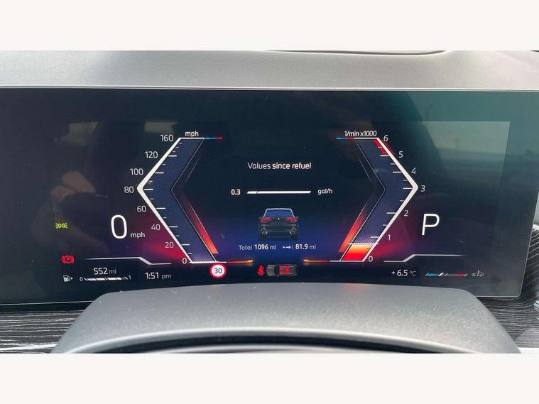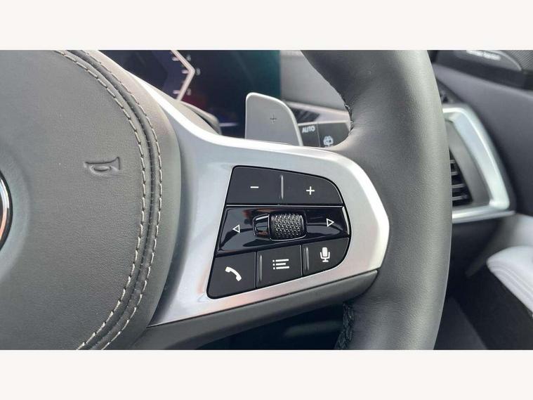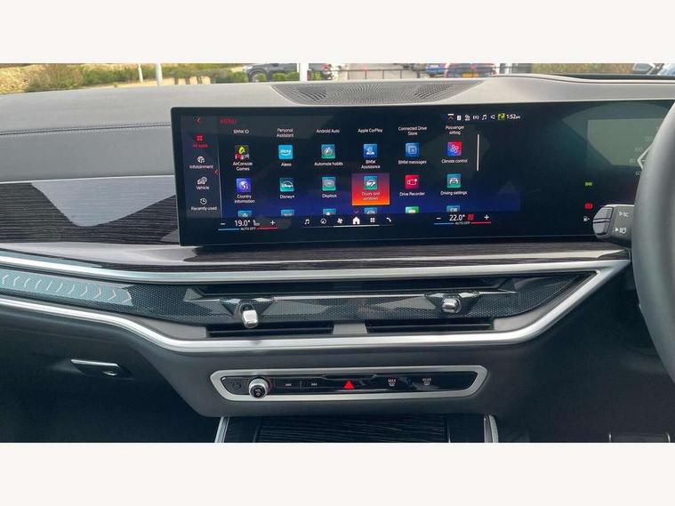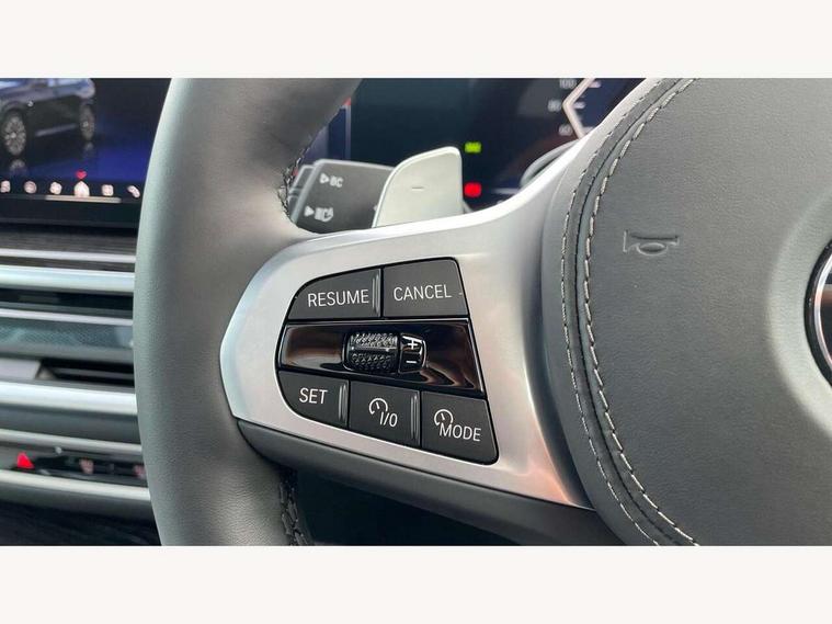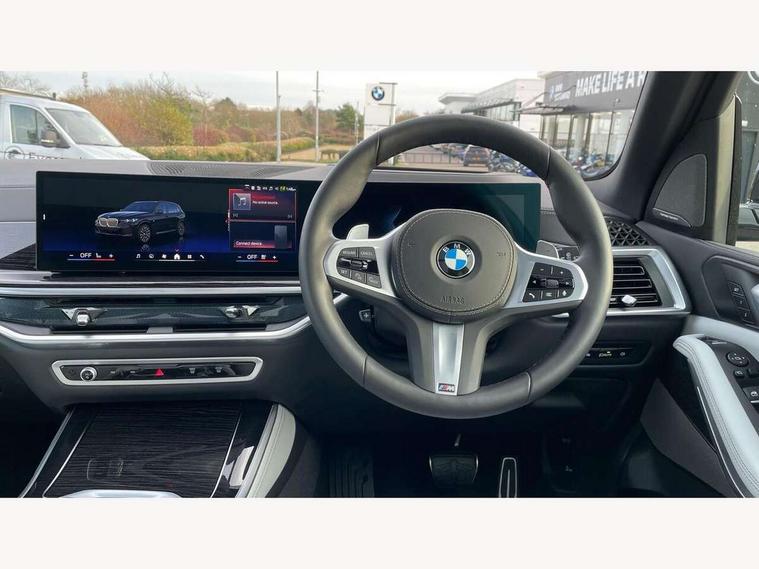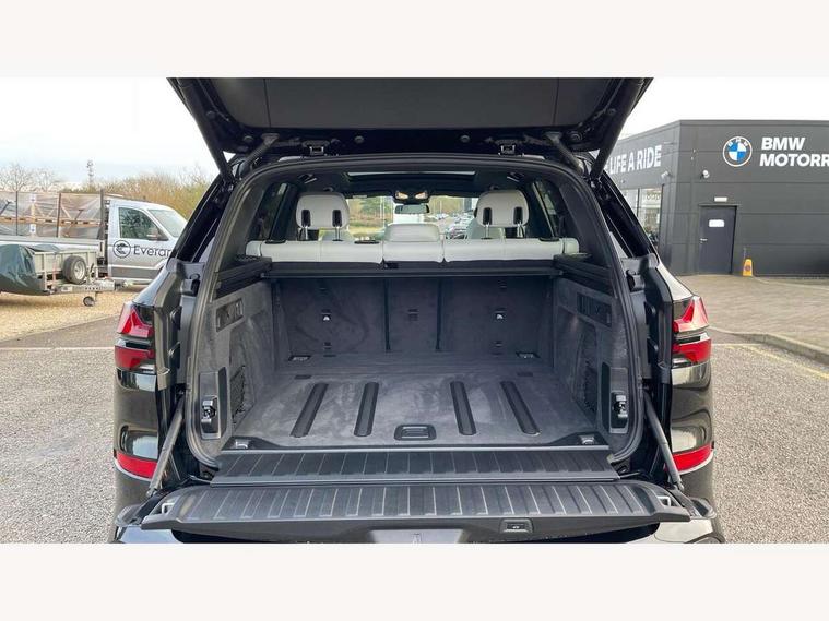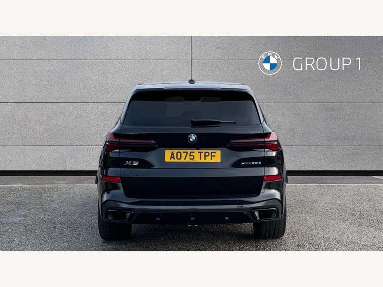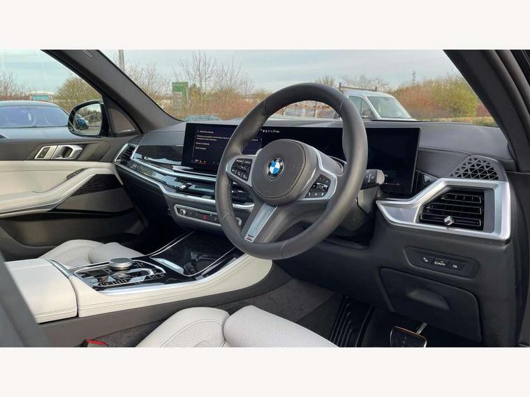 Attentiveness assist, Automatic tailgate operation, BMW ConnectedDrive online services, BMW live cockpit + with curved 12.3 instrument cluster/14.9 central display, nav/Tuner with diversity reception, RDS/4GLTE/remote software upgrade, BMW Recovery system, BMW Teleservices, Condition based service, Cruise control with brake assist, eCall emergency call system, Enhanced bluetooth with wireless charging, Integrated owner's handbook, PAS, Speed limiter, Wi-Fi hotspot, Drive performance control with ECO PRO comfort + sport mode, Eight speed steptronic sport automatic transmission and gearshift paddles on the steering wheel, Adaptive LED Headlights, Front and rear electric windows, High beam assistant, High gloss black shadow line roof rails, LED daytime running lights, Rain sensor, Rear side wing doors, Third brake light in rear spoiler, Variable intermittent rear wash/wipe, 12V - Power sockets with 2x centre console and 1x luggage compartment, 3 seat bench in 2nd row, Entry sills illuminated BMW inscription front and rear, Foldable rear centre armrest with 2 cupholders and storage compartment, Front and rear side armrest integrated into door trim, Grab handles in 1st and 2nd row of seats with Integrated in headliner, at rear with coat hooks, plastic, Headrests for all seats, Luggage compartment separating net, Lumbar support with height and depth adjustment in backrest, Single front passenger seat, Sunvisors with illuminated vanity mirrors and ticket pocket, Three spoke sport M leather steering wheel, Velour floormats, Ambient light interior pack - X5, Driving assistant pack with radar based driver assistance system - X5, Expanded exterior mirror pack - X5/X5 M, M aerodynamics pack - X5, Parking assistant pack - X5, 3 rear seatbelts, Active protection, Airbags - driver/front passenger, rear and side, first and second row seats head airbags, front passenger seat airbag deactivation + knee airbag, Anti-lock braking system (ABS), Automatic Stability Control (ASC), Brake energy regeneration, Cornering brake control (CBC), Crash sensor activating central locking release, hazard warning lights, fuel cut off, interior lighting + activation of safety battery terminal clamp, DSC - Dynamic Stability Control, Dynamic Traction Control - DTC, Electromechanical parking brake with automatic drive away release and auto hold function, Electronic brake force distribution, Hill start assistant, M Sport blue painted brake calipers with 'M' designation, Mechanical child proof lock on rear doors, Tyre pressure monitoring system, Tyre pressure sensors, Ventilated front and rear disc brakes, Warning triangle and first aid kit, Alarm system, Closing system with central locking, Comfort access system, Locking wheel bolts,