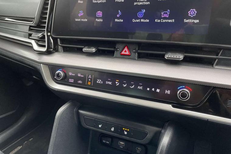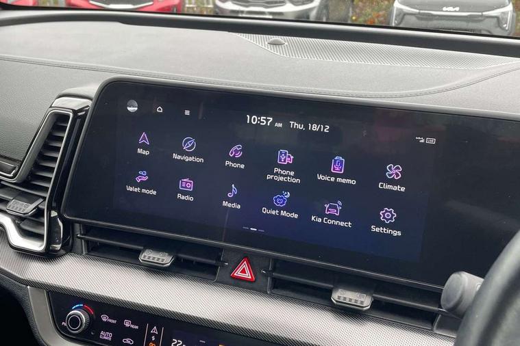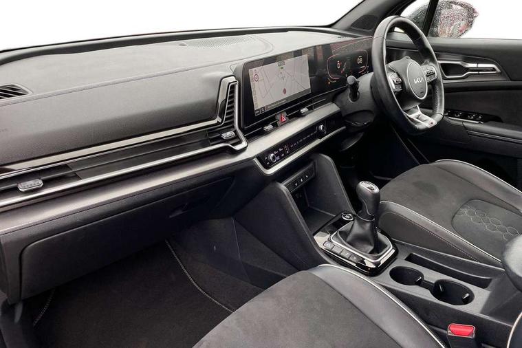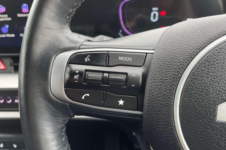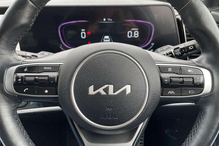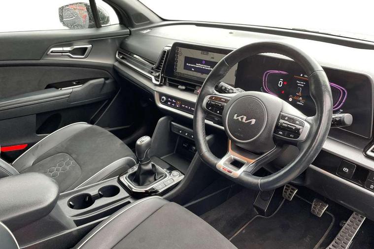 12.3" Display with navigation, 4.2" supervision colour cluster display, Apple car play/Android Auto with voice control, Cruise control + speed limiter, Drive mode selector, E-call, Forward collision avoidance assist (FCA) - city/pedestrian/cyclist/junction covering, Front and rear parking sensors, Intelligent speed limit assist, Kia Connect (UVO), Lane Following Assist (LFA), Lane keep assist, Low washer fluid warning, Rear view monitor, Reversing camera system integrated into centre fascia screen, Speed sensitive power steering, Trip computer, Windscreen washer level indicator, Intelligent Stop and Go, 6 speaker audio system, Bluetooth audio streaming, DAB Radio with MP3, Rear USB port, Steering wheel mounted audio controls, USB C type charging ports on centre console, USB C type charging ports on side of front seats, USB port for connection of a media device, All round electric windows with drivers and front passenger auto up/down function, Automatic headlight control system, Automatic window defogger, Backlite glass heated with timer, Black bumpers, Body colour and black bumper with silver accents, Body colour exterior door handles, Body colour radiator upper garnish and door garnish, Electrically adjustable/heated/folding door mirrors with LED indicators, Front and rear chrome skid plates, Gloss black door mirrors, Gloss black radiator grille, Gloss black side sill and wheel arch body mouldings, Glossy black roof rack, High beam assist, Interior electrochromic mirror, LED daytime running lights, LED front fog lamps, LED headlamps (low and high beam - MFR type), LED High mounted stop light, LED rear combination lamp, Rain sensing wipers with aero blades, Rear fog lamp, Rear privacy glass, Rear side wing doors, Rear spoiler, Rear wiper, Satin finished beltline, Silver coloured inserts to bumpers, Tinted rear glass, Trailer stability assist, 12V power socket in front centre fascia and luggage compartment, 2nd row personal lamps, 3 seat bench in 2nd row, 3 x passenger assist grips, 40/20/40 split folding rear seat, All-round height adjustable headrests, Black headlining, Centre console storage box, Cupholders in rear armrest, D-Shaped sports leather steering wheel and perforated inserts with GT-Line logo, Door courtesy lamps, Drink holder at centre armrest, Driver and front passenger side sunvisors with illuminated vanity mirrors, Driver's seat manual height adjust, Drivers seat power lumbar support, Front and rear door storage, Front seat and rear pockets, Front/rear centre armrests, Gear shift indicator, Glovebox illumination, Heated front seats, Heated steering wheel, Interior door lock/unlock function, ISOFIX Child seat top tethers and anchor fixings outer rear seats, Luggage area light, Luggage area load cover, Luggage net with hooks, Metal paint interior door handles, Overhead console lamp, Rear cabin light, Rear coat hooks, Single front passenger seat, Sports pedals, Suede leather upholstery, Three zone climate control, Tilt/telescopic adjustable steering wheel, Ventilation ducts to rear compartment, Active front headrests, All round 3-point seatbelts, Anti-lock braking system (ABS), Dual front side airbags, Dual horn, Electronic parking brake, Electronic stability control with downhill brake control, Front passenger airbag cut-off switch, Front seatbelt pretensioners + load limiters, Height adjustable front seatbelts, Hill start assist control (HAC), Impact sensing auto door unlocking, Multi collision brake assist, Rear door child safety locks, Rear seat alert system, Traction control, Twin curtain airbags, Twin front airbags, Tyre pressure monitoring system, Advanced anti-theft system including immobiliser and alarm, Door deadlocks, Engine Start/Stop Button with Smart Entry System, Locking wheel nuts, Speed sensitive auto door locking, Visible vehicle identification number, Aluminium pattern finish centre fascia and door garnish, 19" GT-Line alloy wheels, Tyre mobility kit,