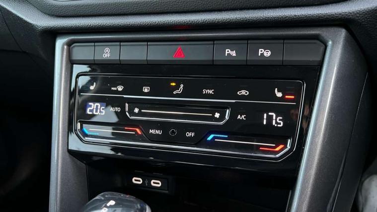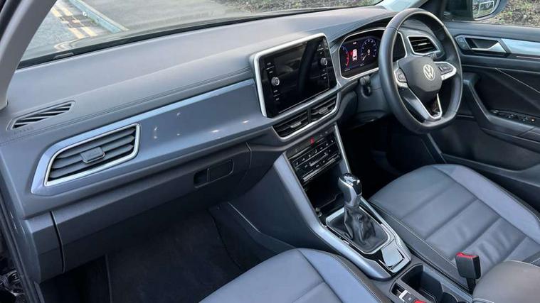 10.25" Digital cockpit pro, Bluetooth mobile phone interface, Driver alert system with fatigue detection, Driver tips and journey analysis, Emergency call service, Lane keeping system Lane Assist, Modified key software - reduce switch off time for key status change to Long no motion, Online services, Park assist including front and rear parking sensors, Service interval indicator, Tailgate/trunk lid release from outside, Think blue trainer driver tips and journey analysis, Warning sound and light for front seatbelts unfastened, Wireless app connect, Battery regeneration during braking, Start/stop function with battery regeneration, Diversity antenna for FM reception, Front and rear 6 speakers, Music playback - MP3, WMA and AAC files, Premium USB cable in choice of either Apple or Android smartphone compatibility, SD card slot, Simultaneous pairing of 2 compatible mobile devices, Title and cover art display, We Connect and We Connect Plus functionality, 3rd brake light, Auto dimming interior rear view mirror, Automatic hazard lights activation under emergency braking, Automatic headlight control with LED separate daytime running lights with coming/leaving home function, Body colour sports bumpers with silver metallic underbody fascia, Dynamic headlight range control with self adjusting whilst driving, Extended roof spoiler, Exterior mirrors aspherical on driver side, convex on front passenger side, External USB type C socket and charging sockets, Front windscreen wiper with intermittent wipe and 4 position delay, Heated rear window, LED Plus headlamps, LED rear combination lamps, LED rear number plate lights, LED tail lamp rear comination lamps, Light mode for poor weather, rain, fog or snow, Power windows with comfort operation and circuit breaker, Rain sensor, Rear exhaust tailpipe, Rear fog light on one side and reversing lights on both sides, Rear side wing doors, Rear wash/wipe with intermittent wipe setting, Remote electrically foldable door mirrors, puddle lights and reverse activated passenger's door mirror, 12V power socket in centre console, 3 rear head restraints, 3 seat bench in 2nd row, 4 load lashing points in luggage compartment, Air care climatronic air conditoning system with active combination filter and 2-zone temperature control, Chrome plated radiator grille inserts, air vent surrounds and light switch surrounds, Door and side trim panel with leatherette insert, Drawer under drivers seat, Front + rear carpet mats, Front centre armrest, Front comfort sports seats, Front cupholders x 2, Front footwell illumination, Instrument lighting, white adjustable panel illumination, Interior ambient lighting and surround lighting, Interior light delay, Isofix child seat preparation, Leather gearshift handle, LED interior light with switch off delay/dimmer and 2 front/rear LED reading lights, Load-through provision with cup holder when folded down ('Unsplit rear seat bench, split folding backrest, with centre armrest), Luggage compartment lighting, Non-folding front passenger seat backrest, Single front passenger seat, Storage compartment in left and right luggage area, Storage compartment in rear doors, Storage compartments in driver and front passenger doors, Sunvisors with illuminated vanity mirrors, Variable boot floor, height adjustable and removable, Driver assistance pack without proactive passenger protection - T-Roc, 3 point height adj front seatbelts + pretensioners, 3 point seatbelts in outer rear with ECE label, ABS, Child locks on rear doors, Driver and front passenger airbag with front passenger airbag deactivation, Driver and front passenger safety-optimised head restraints, Drivers seatbelt reminder, Electronic parking brake, Electronic Stability Control (ESC) inc EDL (Electronic Differential Lock) and ASR (Traction Control), Front and rear passengers curtain airbag system including front side airbags, Front assist with city emergency braking and pedestrian monitoring, Front seat side impact airbags, Predictive pedestrian protection, Rear disc brakes, Single tone horn, Tyre pressure loss indicator, Volkswagen roadside assistance, Alarm with interior protection, Anti-theft alarm system with interior monitoring, backup horn, and towing protection, Remote central locking with SAFELOCK, radio remote control with 2 remote control folding keys, Trims for alloy wheels,