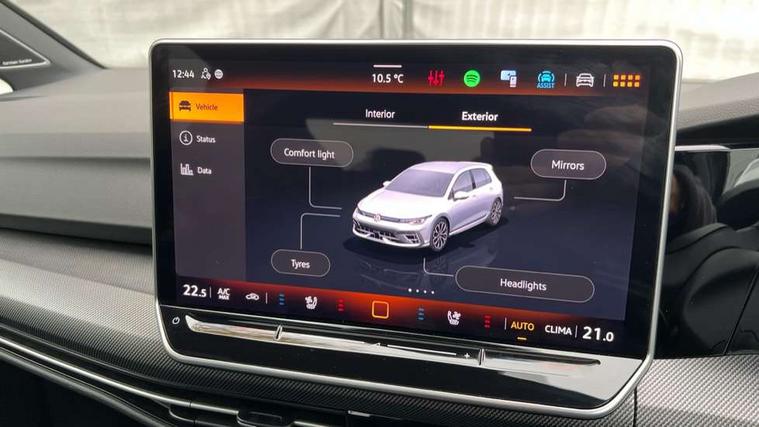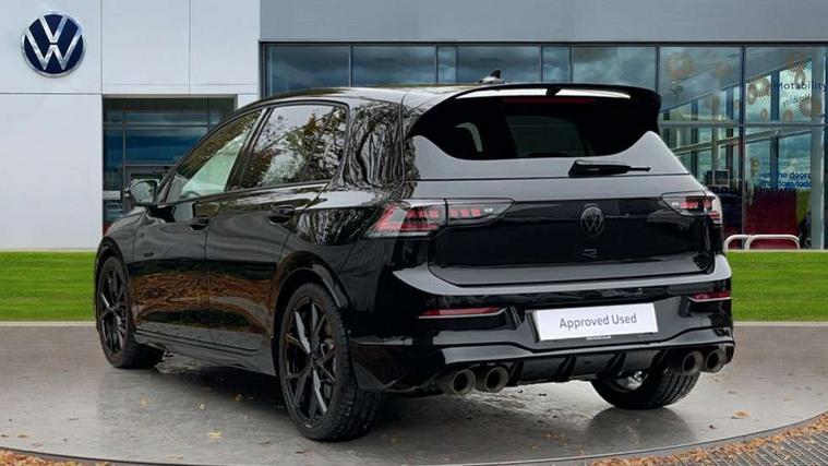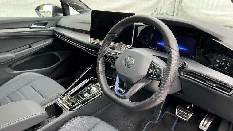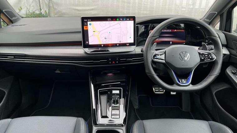 Activated carbon canister, Adaptive cruise control (ACC), Advanced driver attention and drowsiness monitor, Dynamic road sign display, E-Sim card for online connectivity, eCall emergency call system, Electronic maximum speed limit increased to 270 km/h, includes driving Modes 'drift' and 'special', larger roof spolier and GPS laptimer + G-Meter, Multi-color Digital cockpit pro, selection of different info profile possible, Multifunction front facing camera for distance control, Navigation system, Oncoming vehicle braking when turning including swerve support, Side assist blind spot lane change system, rear traffic alert and exit warning system, Speed limiter, Speedo, rev counter, electronic odometer, trip, service interval display, exterior temperature and fuel gauge, Traffic jam assist, Voice enhancer and voice control, Warning signal and warning light for front and rear seatbelts not fastened, We connect plus preparation, We connect preparation, Wireless app connect, All wheel drive - 4Motion, Petrol Particulate Filter, Start-stop system with battery regeneration (recuperation - energy recovery during braking), XDS electronic differential lock for improved traction and handling, 2 USB C ports in front, 2 USB charging sockets on the centre console in the rear charging capacity upto 45W, Digital radio reception (DAB), Diversity antenna for FM reception, Gaming platform via car app, Infotainment system with 12.9" display, Mobile phone interface with inductive charging feature, 3rd brake light, Auto dimming rear view mirror, Automatic headlamp activation with Coming home and Leaving home feature, Black badge on B-pillar, Black mirror caps, Black strips on radiator grille and headlights, Body colour door handles, Darkened headlights, Darkened R Logos and VW logos in front, rear and on fender, Exterior mirrors convex on the left and aspherical on the right, Front and rear electric windows, Front fog lamps and cornering light, Heat insulating windshield made of laminated glass, Illuminated lighting animation with wake up/goodbye scenario, LED matrix headlights with ambient light V2, advanced high beam, dynamic range contol with cornering, LED rear lamp with indicator, poor weather, LED separate daytime running light, R name plate, Rain sensor, Rear fog light on one side and reversing lights on both sides, Rear side wing doors, Rear tinted glass 65% light absorbing from B pillar backwards, Rear windscreen washer and wiper with interval delay, Remote electrically foldable door mirrors, puddle lights and reverse activated passenger's door mirror, Welcome light with surround lighting, 12V socket in front centre console, 12V socket in luggage compartment, 3 rear head restraints, 3 seat bench in 2nd row, 30 colour ambient lighting, illuminated center console storage compartment in front, Air care climatronic 3 Zone automatic climate control with rear air conditioning control panel, Aluminium gearshift handle, Brushed stainless steel pedals, Chrome plated radiator grille inserts, air vent surrounds and light switch surrounds, Entry lights, Front + rear black carpet mats, Front centre armrest, Integrated front head restraints, ISOFIX anchors for child seats on outer rear bench seats and on front passanger seat compatible for i-Size, Luggage compartment lighting, Rear cupholder and loadthough, Single front passenger seat, Soul black instrument panel, Soul black roof lining, Split folding backrest with centre armrest and unsplit rear seat bench, Sun visors with illuminated vanity mirrors, Driver assistance pack - Golf Estate/Hatchback Auto, R styling pack - Golf, Technology park and comfort pro package - Golf Hatchback, 3 point height adj front seatbelts + pretensioners, 3 rear three point seatbelts, ABS, Autonomous emergency braking front assist with pedestrian and cyclist monitoring, Child locks on rear doors, Driver and front passenger airbag with front passenger airbag deactivation, Electronic parking brake with auto hold, ESC (Electronic Stability Control), Extended pedestrian protection measures, Front and rear black brake calipers with darkened R-logo, Hill start assist, Rear disc brakes, Two tone horn, Tyre pressure loss indicator, Volkswagen roadside assistance, Anti theft wheel bolts, Preparation for alcohol interlock, 19" Estoril alloy wheels in black with progressive steering, Sporty vehicle dynamics, Tool kit for tyre mobility set, Tyre mobility kit Includes 12V compressor and tyre sealant, Wheel hub cover with darkened R-logo,