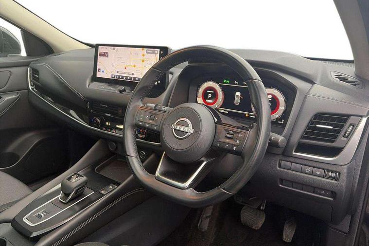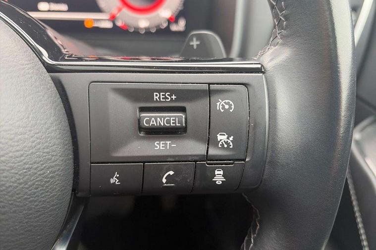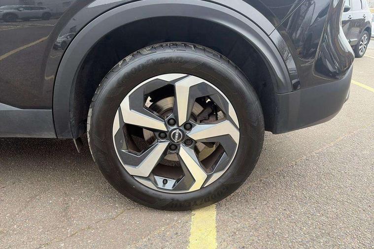 Android auto/Apple CarPlay (Wired), Blind spot warning, Drive modes (sport, normal, eco), Electric speed sensitive power steering, Emergency and breakdown call, Full Digital 12.3" TFT Digital Combimeter, Google maps services - search, weather, 3D maps and Google street view, Idle stop/start system, Intelligent around view monitor, Intelligent Cruise control (ICC), Intelligent driver alert system, Intelligent forward collision warning, Intelligent lane intervention, Lane departure prevention, Lane departure warning system, Maximum speed limiter, Moving object detection, Nissan connect 12.3 inch touchscreen infotainment system, Nissan connect navigation, Push button starter, Rear cross traffic alert, Rear parking sensors, Rear view camera, Remote control services - door locks, lights, horn and car locator, Telematics - notifications and connectivity services, TomTom live traffic services, Traffic sign recognition with legal speed adjustment, Trip computer, Virtual personal assistant and firmware over the air capability, Wireless apple carplay, 6 speakers, AM/FM audio system with DAB, Bluetooth audio streaming, Front USB connections (Type-A and Type-C), Rear USB charging only ports (Type-A and Type-C), Auto dimming rear view mirror, Auto rear wiper when reversing, Automatic hazard signal with emergency stop signal, Body colour mirror caps, Body coloured door handles, Bodyside mouldings, Chrome side window finisher, Door handle with button, Electric auto folding door mirrors, Electrically adjustable and heated door mirrors with LED turn indicator, Follow me home headlights, High beam assist, Intelligent auto headlights, LED daytime running lights, LED Headlights, LED rear lights, One touch front and rear electric windows with remote opening and closing, Partially body coloured bumpers, Privacy glass, Rear bumper with graphite insert, Rear reversing light (bulb lighting), Rear roof spoiler, Rear side wing doors, Rear styling plate, Shark fin antenna, Splash free rain sensing wipers, Super UV and infrared cut glass, Three blink turn signal, 12v power socket in dashboard and luggage, 2x Rear coat hooks, 3 bench rear seats in 2nd row, 3 rear headrests, 4 folding assist grip, 6 Luggage hooks - 4 on floor, 2 on side, 6-way manually adjustable driver's seat, 60/40 split folding rear seat bench, Ambient lighting around centre console, Centre console storage tray, Chrome interior door handles, Cloth monoform upholstery, Driver and front passenger sunvisors with illuminated vanity mirrors, Driver seat back pocket, Dual zone automatic climate control with pollen filter, Electrically adjustable lumbar support for driver, Front and rear door storage, Front centre console and armrest, Front cupholders x 2, Front door with bottle holders, Glovebox with light, Hard trunk cover, Height adjustable driver's seat, Height adjustable front headrests, Height adjustable passenger seat, Leather steering wheel, Luggage board system, Luggage space lighting, Manually adjustable passenger (slide recline + lifter), Multifunction steering wheel, Passenger seat back pocket, Rear armrest with 2 cupholders, Rear door bottle holders, Single front passenger seat, Soft PVC kneepad, Steering wheel gearshift paddles, Steering wheel switches, Sunglasses holder, Tilt/telescopic adjustable steering wheel, Two rear isofix child seat anchorage points with top tether, Welcome light and console tray ambient lighting, 3x3 point rear seatbelt pretensioners + load limiters, ABS with EBD and brake assist, Active brake limited slip, Auto hold function, Child locks on rear doors, Curtain and front side, far side airbags, Driver and passenger airbags, Driver, passenger and 2nd row rear seat belt reminder, Electronic parking brake, Front seatbelt pretensioners + load limiters, Height adjustable front seatbelts, Hill start assist, Intelligent blind spot intervention, Intelligent front emergency braking with pedestrian, cyclist recognition and junction assist, Intelligent rear automatic braking, Tyre pressure monitoring system, Vehicle dynamic control, Capless fuel filler, Engine immobiliser, Intelligent Key, Remote central door locking with deadlocking, Thatcham Cat.1 alarm, Interior instrumental panel B finisher, 18" Diamond cut alloy wheels, Tyre puncture repair kit,