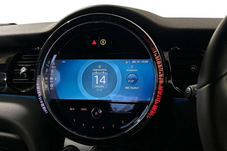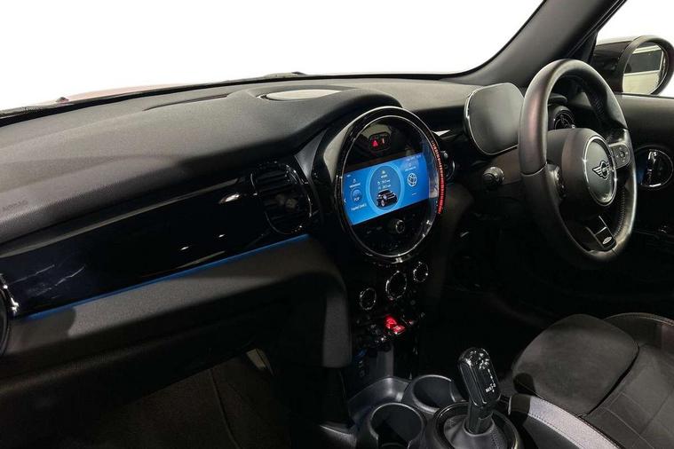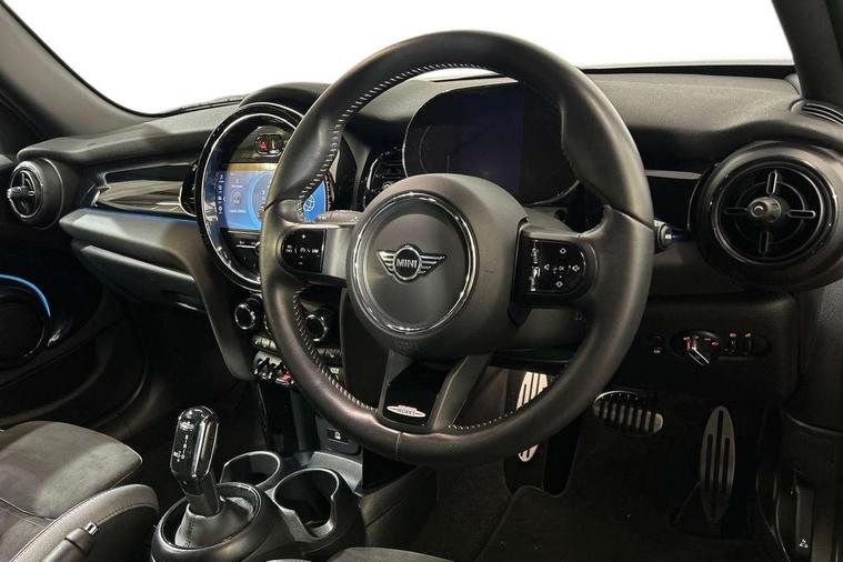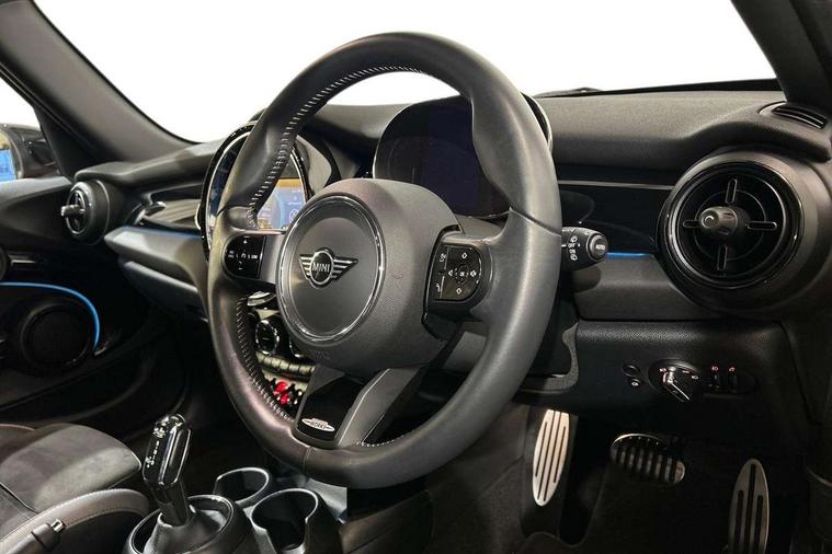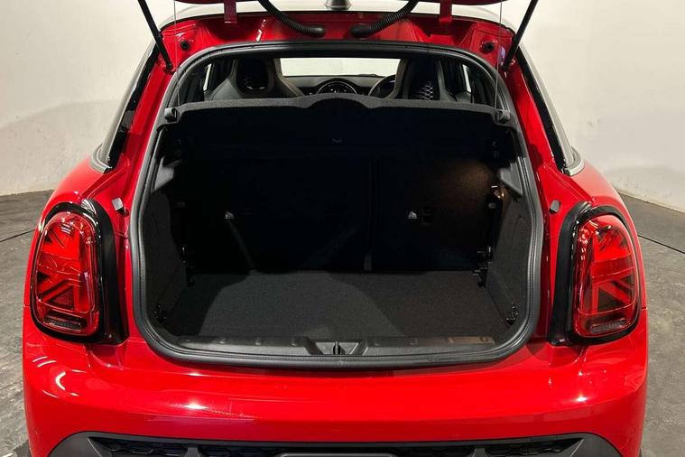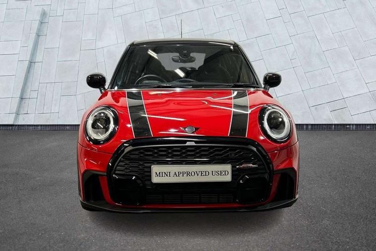 Apple CarPlay, Automatic start/stop function with brake energy recuperation, Compatible mobile phone bluetooth with audio streaming, Electro-mechanical speed dependant steering assistance, Flexible car sharing preparation, MINI Driving Modes - centre toggle switch to control driving setting (sport, mid and green), Mini E-call, MINI TeleServices, On board computer, Rear park distance control, Service interval indicator, Adaptive suspension, Double Vanos system, Fully variable valve control, Gear change indicator display, High precision injection, Performance Control, Steptronic transmission with double clutch, 8.8" touchscreen with LED ring, FM tuner and DAB digital radio, 3rd brake light, Automatic headlight activation switch, Body colour fuel filler cap, Chrome border high gloss black slats radiator grille, Dynamic brake lights, Electric front+rear windows, Exhaust tailpipe on left with chrome finisher, Heated rear window, Heated windscreen washer jets, JCW Aerodynamic kit - Front and rear bumpers with sporty JCW styling and part-painted side sills with MINI John Cooper Works door sill finishers, John Cooper Works rear spoiler, Metal door sill strips with MINI imprint, Model logo Cooper on right of tailgate, Rain sensor window wipers, Rear fog lights, Rear LED lights with union jack design, Rear side wing doors, Rear window wiper, Side scuttle panel with integrated indicator, Sun/heat protection glass, White indicator lenses, 12V Accessory socket in centre console, 3 seat bench in 2nd row, 4 lashing eyes in luggage compartment, 60/40 split folding rear seat, Anthracite headliner including grab handles and clothes hooks, Carbon black colour line - Knee roll and door armrest, Chrome interior highlights, Cupholders, Front and rear isofix with front passenger airbag deactivation, Front and rear velour floor mats, Glove compartment, Height and length steering column adjustment, Interior lighting with 12 different colours across the dashboard, underneath door bezel with illuminated laser-engraved design on central display, JCW Sport seats with integrated headrests, adjustable thigh support and John Cooper Works logo, Leatherette gearshift lever and handbrake gaiters, LED reading lights, vanity mirror lights, front foot well light and spotlight on front seats, Mechanical seat adjustment - forward/back & backrest for front seats and driver seat height adjust, Multifunction steering wheel, Single front passenger seat, Storage compartments in doors, Sunvisors with vanity mirrors, Walknappa leather steering wheel with grey seam and John Cooper Works badge on Piano Black lower steering wheel spoke, Piano black exterior pack - Mini Hatchback Cooper, 3 point seatbelts on all five seats, 6 Airbags - front, side, head and seat belt tensioners, Anti-lock braking system (ABS), Child locks on rear doors, DSC - Dynamic Stability Control, Front and rear disc brakes, Hill start assist, Single tone fanfare horn, Tyre pressure monitoring system, Alarm system with tilt sensor, monitoring doors, bonnet interior and tailgate, Electronic vehicle immobiliser, Start/stop toggle with keyless go, Piano black interior trim, Tool kit,