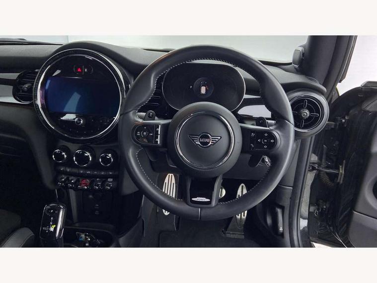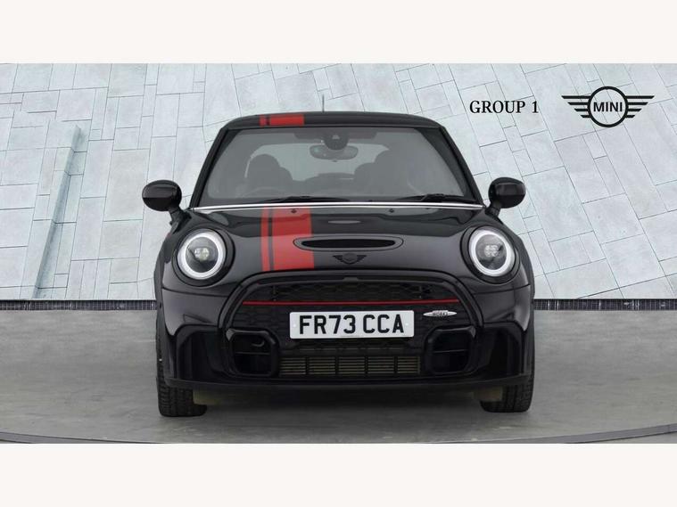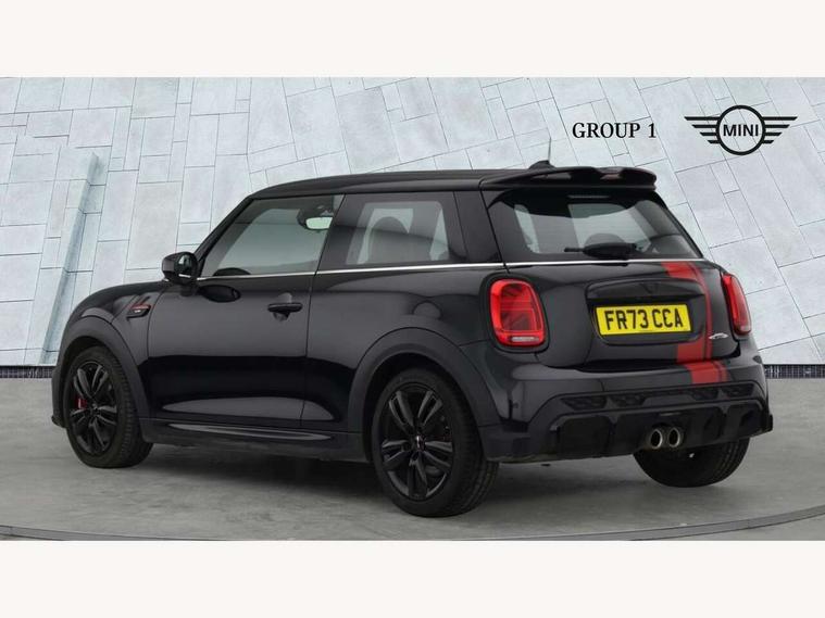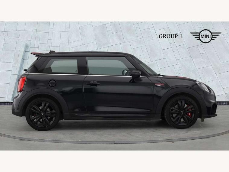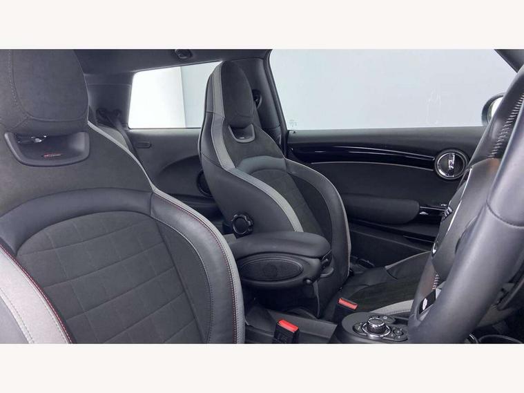 Apple CarPlay, Automatic start/stop function with brake energy recuperation, Compatible mobile phone bluetooth with audio streaming, Cruise control with brake assist, Electro-mechanical speed dependant steering assistance, Flexible car sharing preparation, Instrument cluster, MINI Driving Modes - centre toggle switch to control driving setting (sport, mid and green), Mini E-call, MINI TeleServices, On board computer, Rear park distance control, Service interval indicator, Double Vanos system, Eight speed steptronic sport transmission, with gearshift paddles, Fully variable valve control, High precision injection, Performance Control, 8.8" touchscreen with LED ring, FM tuner and DAB digital radio, 3rd brake light, Automatic headlight activation switch, Bonnet scoop, Dynamic brake lights, Electric front windows, Heated rear window, Heated windscreen washer jets, JCW Aerodynamic kit - Front and rear bumpers with sporty JCW styling and part-painted side sills with MINI John Cooper Works door sill finishers, John Cooper Works logo above an individual grille strut in Chilli Red, John Cooper Works rear spoiler, LED headlight with closed ring and daytime driving lights, Radiator grille piano black border with honeycomb structure in black matt, Rain sensor window wipers, Rear fog lights, Rear LED lights with union jack design, Rear window wiper, Side scuttle panel with integrated indicator, Side scuttle with MINI John Cooper Works logo in black high-gloss with red border, Sun/heat protection glass, Two central exhaust tailpipes with chrome finisher, White indicator lenses, 12V Accessory socket in centre console, 2 seat bench in 2nd row, 4 lashing eyes in luggage compartment, 60/40 split folding rear seat, Anthracite headliner including grab handles and clothes hooks, Carbon black colour line - Knee roll and door armrest, Chrome interior highlights, Cupholders, Front and rear isofix with front passenger airbag deactivation, Front floor mats in velour, Glove compartment, Height and length steering column adjustment, Interior lighting with 12 different colours across the dashboard, underneath door bezel with illuminated laser-engraved design on central display, JCW Sport seats with integrated headrests, adjustable thigh support and John Cooper Works logo, Leatherette gearshift lever and handbrake gaiters, LED reading lights, vanity mirror lights, front foot well light and spotlight on front seats, Manual air conditioning, Mechanical seat adjustment - forward/back & backrest for front seats and driver seat height adjust, Multifunction steering wheel, Passenger seat height adjuster, Rubberised stainless steel pedals, Single front passenger seat, Storage compartments in doors, Storage pocket on back of front seats, Sunvisors with vanity mirrors, Walknappa leather steering wheel with grey seam and John Cooper Works badge on Piano Black lower steering wheel spoke, Navigation pack without Apple Carplay - Mini Hatchback, Piano black exterior pack - JCW, 3 point seatbelts on all four seats, 4-piston fixed-calliper brakes front, 6 Airbags - front, side, head and seat belt tensioners, Anti-lock braking system (ABS), DSC - Dynamic Stability Control, Front and rear disc brakes, Red brake callipers with John Cooper Works logo, Single tone fanfare horn, Tyre pressure monitoring system, Alarm system with tilt sensor, monitoring doors, bonnet interior and tailgate, Electronic vehicle immobiliser, Start/stop toggle with keyless go, Tool kit,