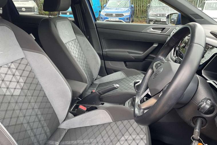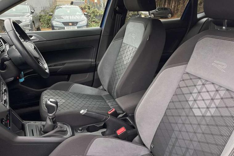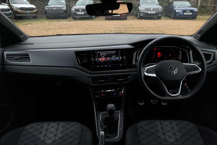 Adaptive cruise control without follow-to-stop and speed limiter, Bluetooth mobile phone interface, Digital Cockpit Pro with 10.25" Display, Driver alert system, Dynamic road sign display, Emergency call service, Power assisted speed sensitive steering, Preparation for We connect and We connect plus, Speedo and rev counter, electronic odometer, trip, service interval display and fuel gauge, Standard rear axle, Travel Assist - Lane keeping system and traffic jam assist, Travel assist including emergency assist, Trip computer, Warning signal and warning light for front and rear seatbelts not fastened, Washer fluid level indicator, Wireless app connect, Front wheel drive, Rear shock absorpion, Start-stop system with battery regeneration (recuperation - energy recovery during braking), DAB Digital radio, Diversity antenna for FM reception, Front and rear 6 speakers, Body colour bumpers, Body colour door handles, Body colour door mirrors, Electric front windows, Front scuff plates with R-Line logo, Heat insulating darkened glass in side and rear windows, Heat insulating glass windscreen, Power folding adjustable/heated exterior mirrors and front passenger exterior mirror lowering function, Rear electric windows, Rear fog light, Rear side wing doors, Rear tinted glass from B-pillar backwards approx 65% tinted, Rear windscreen washer and wiper with interval delay, Third brake light, 12V power socket in centre console, 2 USB-C ports in the front, 2 USB-C charging sockets on the center console in the rear, 3 rear head restraints, 60/40 split folding rear seat and rear seat bench not split, Air care climatronic air conditoning system with active combination filter and 2-zone temperature control, Black roof lining, Ceramique headliner, Chrome plated radiator grille inserts, air vent surrounds and light switch surrounds, Door and side trim panel, Driver and front passenger seat height adjustment, Driver/passenger sunvisors with illuminated vanity mirrors, Front + rear carpet mats, Front centre armrest, Front footwell illumination, Front seat backrest storage pockets, Front sports comfort seats, Handbrake lever handle in leather, Isofix child seat preparation easy-fit (for two outer rear seats, and front passenger seat) compatible with I-size, Karoso artvelours cloth upholstery, Leather trimmed gear knob, LED interior light with switch off delay and dimmer, 2 reading lights front and rear, Luggage compartment cover, Luggage compartment floor, Luggage compartment lighting, Lumbar adjustment for front seats, Multifunction steering wheel, Single front passenger seat, Stainless steel pedals, Standard pedal cluster, Light and sight pack - Polo R-Line/Black Edition, 3 point height adj front seatbelts + pretensioners, 3x3 point rear seatbelts, ABS, Driver and front passenger airbag with front passenger airbag deactivation, Drivers and front passengers safety optimised head restraints, ESC (Electronic stability control) + EDL (Electronic Differntial lock) and ASR (Traction control), Extended and predictive pedestrian/ cyclist protection, Front curtain and side airbags with center airbag, Hill hold control, Manual child lock in rear doors, Single tone horn, Tyre pressure loss indicator, Alarm with interior protection, Anti-theft alarm system with interior monitoring, backup horn, and towing protection, Anti-theft wheel bolts, Electronic engine immobiliser, Chrome applications on rotary light, mirror adjustment, window regulator switches, outlet with frame in black, Dark grey anodised matt decorative inserts in dash and front door panels, Low rolling resistance tyres,