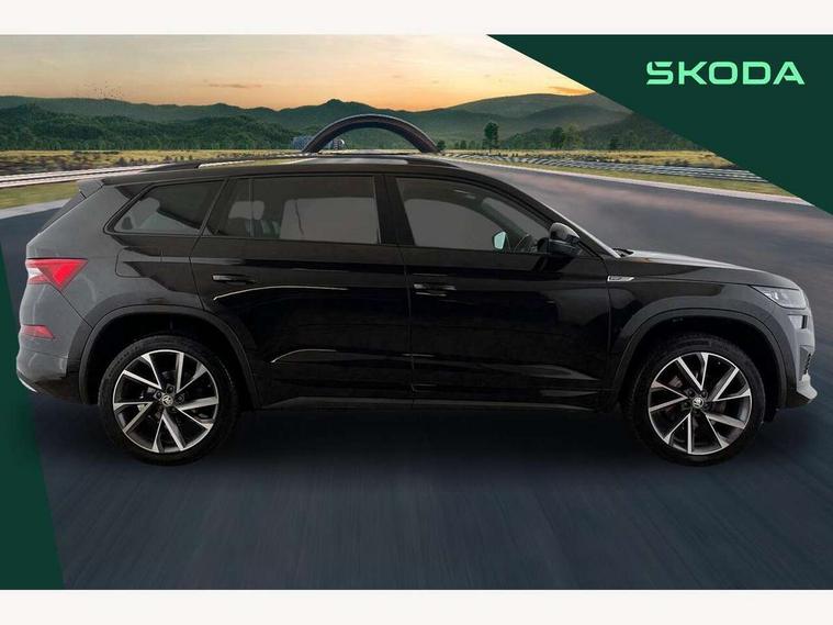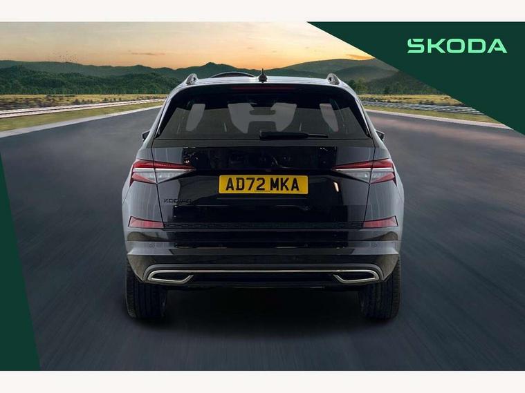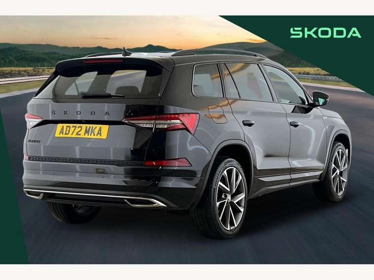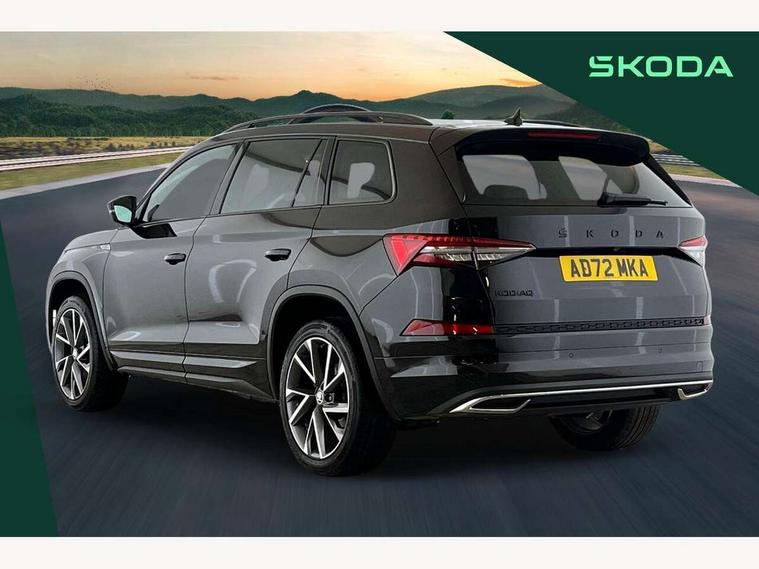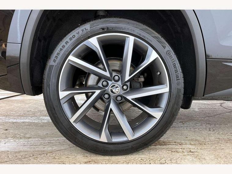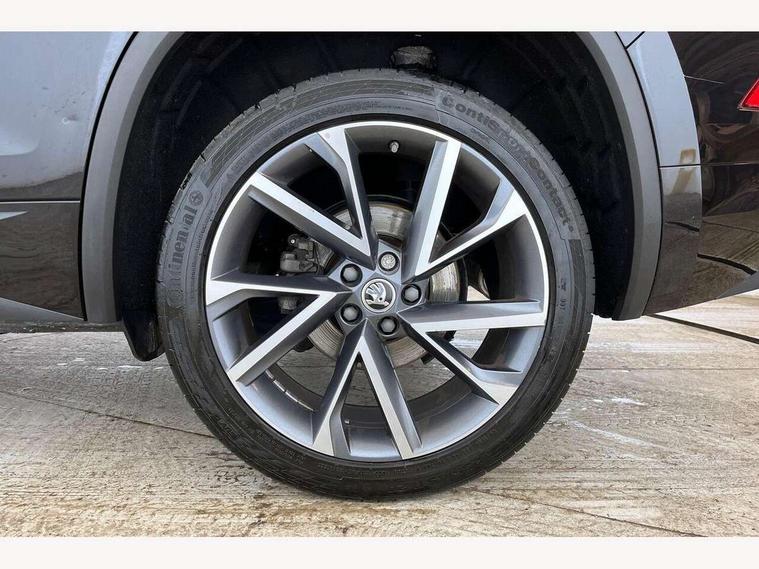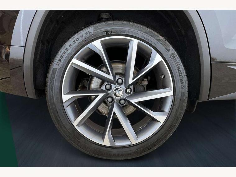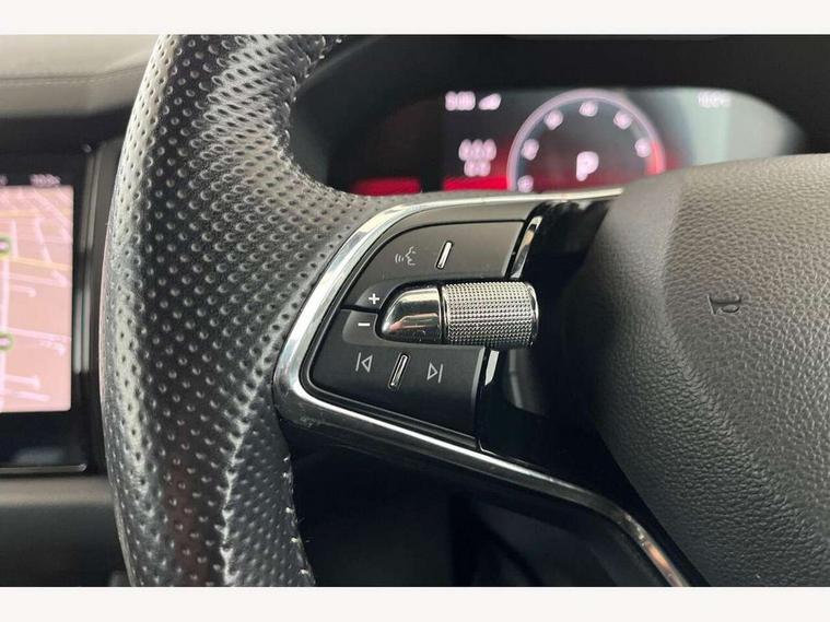 Bluetooth system, Columbus satellite navigation with 9.2" touchscreen, integrated Wi-Fi, web radio, Digital voice enhancement, e call+, ECO Stop/start function, Exterior temperature indicator, Progressive steering, Rear view camera, Smartlink wireless for apple carplay and wired for android auto, Speed limiter, Tailgate unlocking from outside, USB C Port x 2 in front centre console, Wireless charging, 8 Speakers, DAB Digital radio, Aero front windscreen wipers with intermittent function, Aero rear window wiper, Auto dimming rear view mirror, Black roof rails, Black sports styling including front grille and window surrounds, Black wheel arch surrounds, Body colour bumpers, Body colour door handles, Electric adjustable/heated/folding door mirrors, driver side auto dimming with boarding sports and memory function, Electric front and rear windows, Extended rear spoiler with finlets in gloss black, Front fog lights, Full LED matrix headlights with AFS (adaptive front light system), cornering function and AWL (all weather lighting system), Gloss black door mirrors, Headlight washers, Heated rear window, Invisible tailpipe, LED daytime running lights, LED rear fog light, LED third brake light in rear spoiler, Light assistant (coming/leaving home/tunnel light), Off-road style lower front bumper element, Privacy glass, Rain and light sensors, Rear diffuser, Rear LED lights (high functionality) with welcome effect and dynamic indicators, Rear side wing doors, Safety reflectors on front and rear doors, Sportline badge on front fender, Sports front and rear bumpers including lower rear chrome strip, Tailgate lettering in Black, Window control switches with black trim, 12V socket in boot, 2 rails with 2 hooks, 2 seat bench in 3rd row, 3 seat bench in 2nd row, 4 foldable roof handles with rear coat hooks, 60:40 foldable rear seat with sliding adjustment and backrest angle adjustment, Aluminium pedals, Black roof headlining, Bottle holders in door panel in the 1.5 litre front and 1 litre rear, Cargo storage compartments, Chrome headlight control button, Chrome interior door handles, Coat hooks on B pillar, Covered storage compartment on driver side, Decorative door sill covers, Front centre armrest with storage compartment, cup holder and 12V socket, Front courtesy lights, Gear shift lever with chrome frame and black gloss insert, Grey stitching in front and rear armrests and door armrests + door inserts, Height adjustable front headrests, Illuminated and cooled glovebox, Illuminated luggage compartment, Isofix child seat fittings in outer rear seats with top tether, Manually adjustable steering column, Microsuede door panels, Net programme in boot (1x horizontal Net, 2x vertical Nets), Overhead glasses storage compartment, Pollen filter, Rear centre armrest with cupholders, Single front passenger seat, Sliding trunk cover, Small Bags on the inner sides of the front backrests, Sports seats, Sunvisors with illuminated vanity mirrors, Three rear height adjustable headrests, Ticket holder on A Pillar, Umbrella in door panel, Variable boot floor, LED Interior light pack - Kodiaq, Auto door release and activation of warning lights in the event of an accident, Child locks on rear doors, Driver and front passenger airbag with knee airbag and front passenger airbag deactivation, Electronic parking brake with hill start assist, Emergency rear braking signal, ESC (incl. ABS+MSR+ASR+EDS+HBA+DSR+RBS+MKB), Front assist with autonomous emergency braking, Front side airbags with curtain airbags, Fuel cut off safety device, Height adjustable front 3 point seatbelts + pretensioners, Hill hold control, Rear disc brakes, Safety vest holder in door, Seat belt reminder for all seats, Three point rear seat belts, Two tone horn, Tyre pressure monitor, Alarm with interior monitoring and tilt sensor with safe function, Anti-theft wheel bolts, Immobiliser, Keyless entry and start system (KESSY), Remote central locking with 2 keys, Black air vent surround, Carbon finish dashboard and door inserts, Grey stitching in dashboard, 20" Vega Anthracite alloy wheels, Temporary spare wheel (space saver),