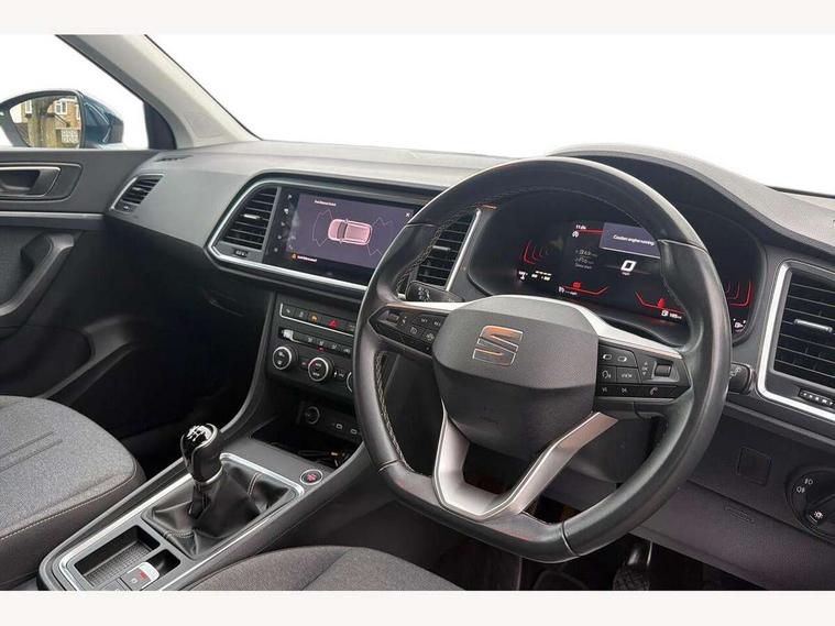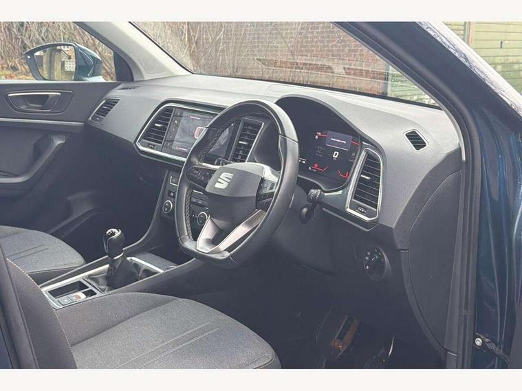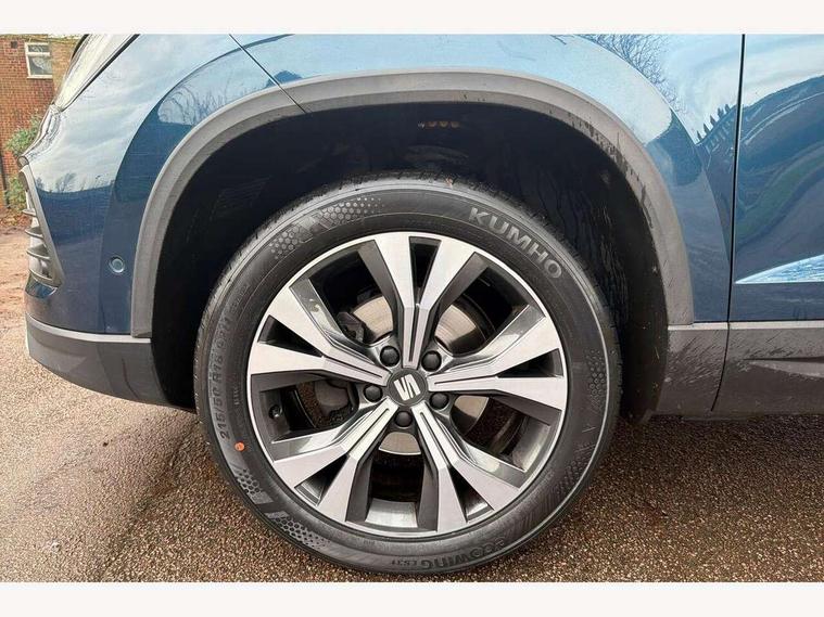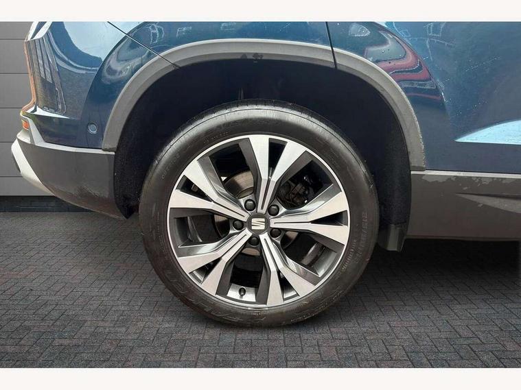8" Digital cockpit, Colour multi-function on board computer display, Cruise control system with speed limiter, E-call, Outside temperature gauge, PAS, SEAT drive profile with driving experience button - Normal, Sport, Eco and Individual mode, steering and throttle response, Self parking functionality (includes front and rear parking sensors), Start/stop system, Tailgate, Trip computer, Wireless full link smartphone integration, Wireless phone charger, Steering wheel mounted audio/phone controls, Black wheel arch surrounds, Body colour bumpers, Chrome front grille frame, Chrome roof rails, Chrome side window trim, Daytime running lights, Door mirrors with welcome light silhouette, Dynamic headlight range control with self adjusting whilst driving, Electric adjustable/heated/folding door mirrors, Front and rear electric windows, Full LED headlamps with lens and LED front fog lamps with cornering function, LED rear tail lights with dynamic indicators, Rear fog lights, Rear side wing doors, Rear wash/wipe, Simulated exhaust pipes, Variable front intermittent wipers, 12V socket in front, 3 seat bench in 2nd row, 60/40 split folding rear seat, Cloth upholstery with front comfort seats, Drawer under right front seat, Dual zone climate control, Front and rear head restraints, Front centre armrest, Front seat back storage pockets, Height adjustable driver and passenger seat with lumbar adjustment, ISOFIX points in outer rear seats with top tether anchorage points, Leather steering wheel and gear knob, Rear armrest and easy back seat release mechanism from boot, Single front passenger seat, Interior lighting pack - Ateca, Navigation system pack with DAB - Ateca, 3x3 point rear seatbelts, ABS, Traction control system (TCS), Electronic stability control (ESC) and Electronic differential lock system (XDS), Airbags - Driver and front passenger airbag with deactivation, front side, two curtain and driver's knee airbags, Electric parking brake with auto hold function, Front and rear seatbelt reminder, Front assist with autonomous emergency braking, Hill hold control, Manual rear child locks, Single tone horn, Tiredness recognition system, Traction control, Tyre pressure monitoring system, Alarm, Keyless entry, Locking wheel bolts, Remote central locking, Chrome interior detailing, 18" Performance machined alloy wheels 36/2 in nuclear grey,