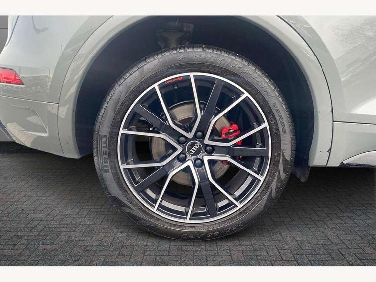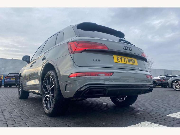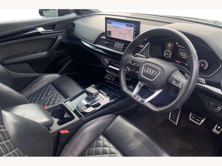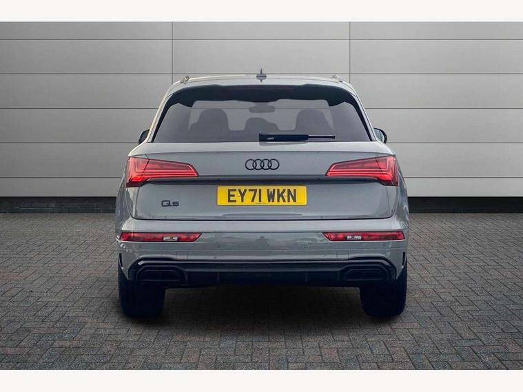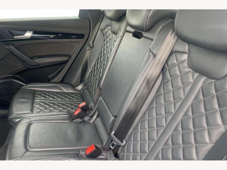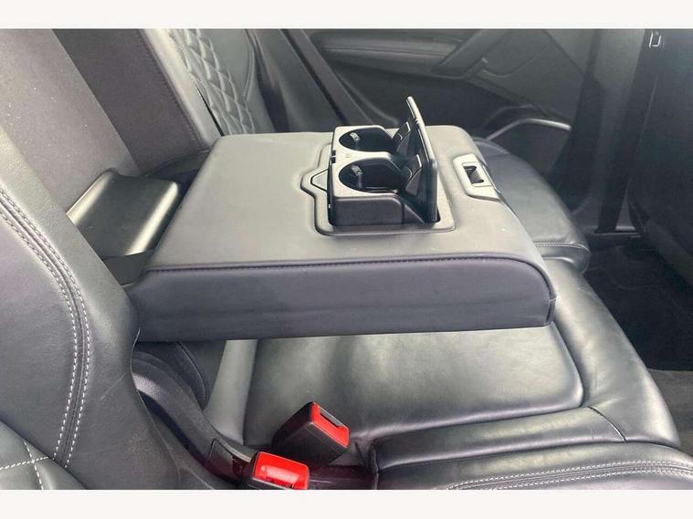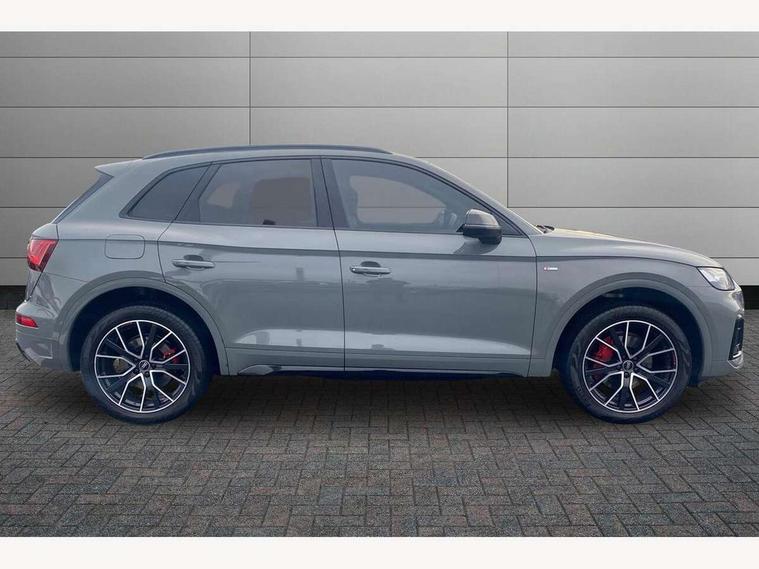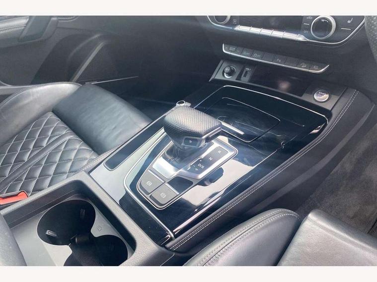 Audi connect safety and service (e-call), Audi connect with Amazon Alexa Integration, Audi drive select, Audi virtual cockpit plus with 12.3" screen and three different layout designs, Audi wireless smartphone interface, Automatic start-stop system with coasting functionality and efficiency programme, Bluetooth interface, Electro - mechanical power assisted steering, MMI navigation plus with 10.1" touch screen, Power tailgate, Reversing camera, Service interval indicator, Voice control system with Audi hotword activation "Hey Audi", Diesel particulate filter, Quattro on demand, S line sports suspension, 2 x USB charging port with aux input socket, DAB Digital radio, Acoustic windscreen, Audi beam with Audi rings logo, Audi matrix LED headlights with dynamic front and rear indicators, Audi rings at front and rear in black, Audi rings decal on rear doors, Auto dimming door mirrors, Auto dimming rear view mirror, Automatic headlights and windscreen wipers, Black door mirrors, Black roof rails, Body colour bumpers, Body colour underbody protection, Chrome plated exhaust trims, Daytime running lights, Door sills in Selenite silver, Electric adjustable/heated/folding door mirrors, Front air inlet surrounds in titanium black, Front and rear electric windows, Headlight washers, High gloss black B pillar trims and triangular rear door trim, High level LED brake light, Rear chrome trim strip below lights, Rear privacy glass and rear side windows, Rear side wing doors, Rear spoiler, Rear wiper, Roof bars, Without model and engine badging at rear, 3 rear headrests, 4 way electric lumbar support for driver and front passenger, 40:20:40 split folding 3 rear bench seat in 2nd row with rear centre armrest, Black cloth headlining, Comfort front centre armrest, Contrast stitching on seats, steering wheel and gear lever gaiter, Deluxe 3 zone electronic climate control, Electrically adjustable front seats, Fine Nappa leather upholstery with diamond pattern contrast stitching + front sport seats with S embossed logo, Front/rear floor mats, Gear lever in black leather, Heated front seats, Height adjustable front head restraints, Height/reach adjustable steering column, Illuminated door sill trims with S logo, ISOFIX child seat mounting and top tether, Luggage compartment cover, Rear seat bench plus, Removable luggage compartment floor, Single front passenger seat, Stainless steel pedals, Sunvisors with vanity mirrors, Black styling package - Q5 Edition 1, Extended interior upholstery pack - Q5, Extended LED Interior multi coloured Lighting Pack - Q5, 3 point seatbelts on all seats, 6 airbags - Driver, front passenger, curtain and side airbags, Electrically operated child locks on rear doors, Electromechanical parking brake, Electronic stabilisation control including ABS, ASR and EDL, Front and rear brake calipers painted in red, Front passenger airbag deactivation, Hill descent control, Hill hold assist, Multi collision brake assist, Pop-up bonnet for pedestrian protection, Pre sense city, Seat belt force limiter, Seatbelt monitoring, Tyre pressure warning, Warning triangle and first aid kit, Anti theft alarm, Anti-theft wheel bolts, Keyless Go access/ignition system, Remote central locking, Piano black finish inlay,