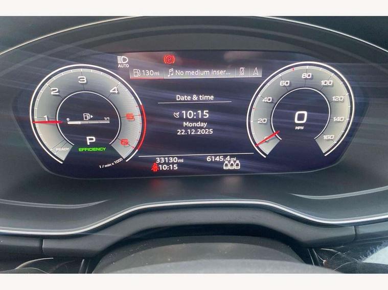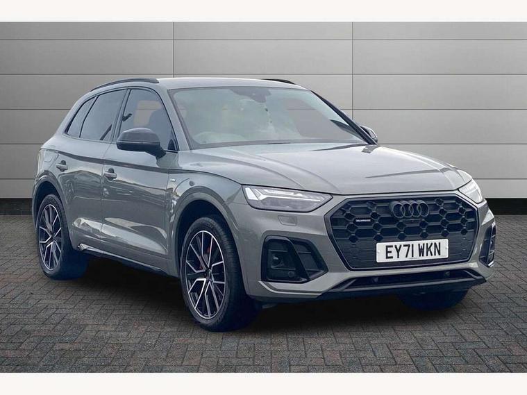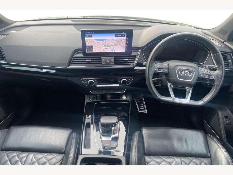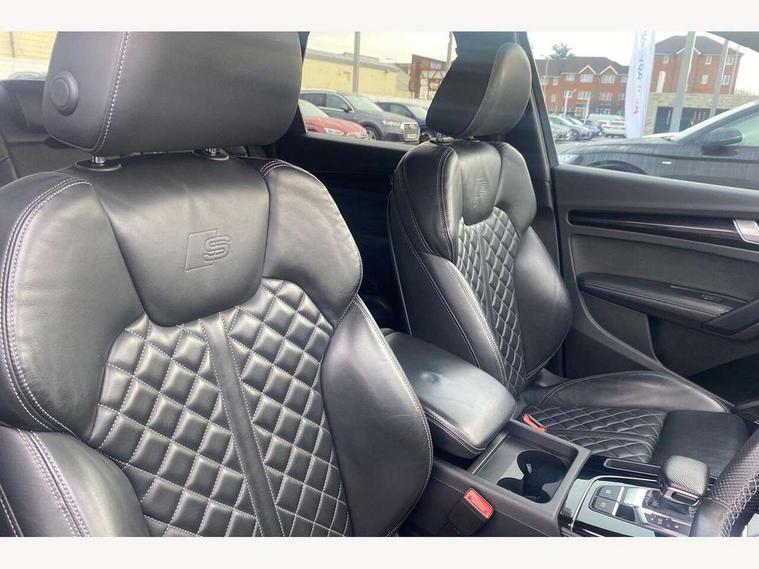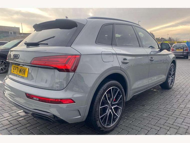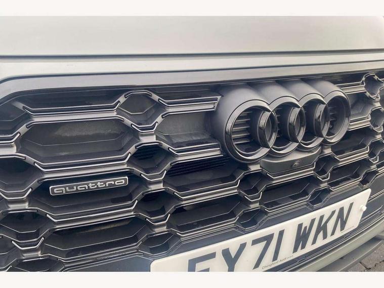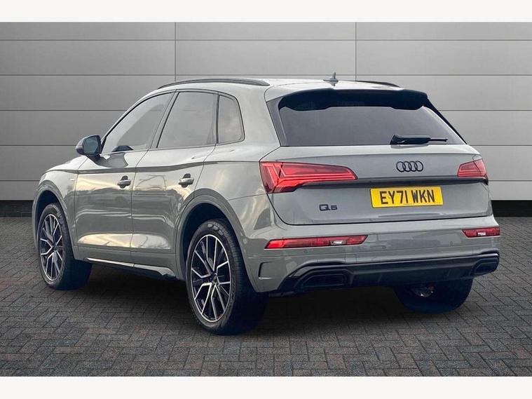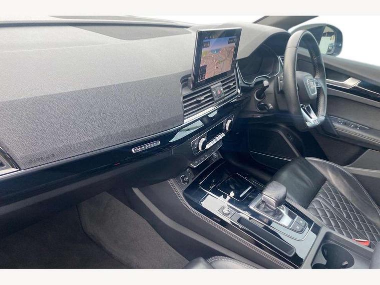 Audi connect safety and service (e-call), Audi connect with Amazon Alexa Integration, Audi drive select, Audi virtual cockpit plus with 12.3" screen and three different layout designs, Audi wireless smartphone interface, Automatic start-stop system with coasting functionality and efficiency programme, Bluetooth interface, Electro - mechanical power assisted steering, MMI navigation plus with 10.1" touch screen, Power tailgate, Reversing camera, Service interval indicator, Voice control system with Audi hotword activation "Hey Audi", Diesel particulate filter, Quattro on demand, S line sports suspension, 2 x USB charging port with aux input socket, DAB Digital radio, Acoustic windscreen, Audi beam with Audi rings logo, Audi matrix LED headlights with dynamic front and rear indicators, Audi rings at front and rear in black, Audi rings decal on rear doors, Auto dimming door mirrors, Auto dimming rear view mirror, Automatic headlights and windscreen wipers, Black door mirrors, Black roof rails, Body colour bumpers, Body colour underbody protection, Chrome plated exhaust trims, Daytime running lights, Door sills in Selenite silver, Electric adjustable/heated/folding door mirrors, Front air inlet surrounds in titanium black, Front and rear electric windows, Headlight washers, High gloss black B pillar trims and triangular rear door trim, High level LED brake light, Rear chrome trim strip below lights, Rear privacy glass and rear side windows, Rear side wing doors, Rear spoiler, Rear wiper, Roof bars, Without model and engine badging at rear, 3 rear headrests, 4 way electric lumbar support for driver and front passenger, 40:20:40 split folding 3 rear bench seat in 2nd row with rear centre armrest, Black cloth headlining, Comfort front centre armrest, Contrast stitching on seats, steering wheel and gear lever gaiter, Deluxe 3 zone electronic climate control, Electrically adjustable front seats, Fine Nappa leather upholstery with diamond pattern contrast stitching + front sport seats with S embossed logo, Front/rear floor mats, Gear lever in black leather, Heated front seats, Height adjustable front head restraints, Height/reach adjustable steering column, Illuminated door sill trims with S logo, ISOFIX child seat mounting and top tether, Luggage compartment cover, Rear seat bench plus, Removable luggage compartment floor, Single front passenger seat, Stainless steel pedals, Sunvisors with vanity mirrors, Black styling package - Q5 Edition 1, Extended interior upholstery pack - Q5, Extended LED Interior multi coloured Lighting Pack - Q5, 3 point seatbelts on all seats, 6 airbags - Driver, front passenger, curtain and side airbags, Electrically operated child locks on rear doors, Electromechanical parking brake, Electronic stabilisation control including ABS, ASR and EDL, Front and rear brake calipers painted in red, Front passenger airbag deactivation, Hill descent control, Hill hold assist, Multi collision brake assist, Pop-up bonnet for pedestrian protection, Pre sense city, Seat belt force limiter, Seatbelt monitoring, Tyre pressure warning, Warning triangle and first aid kit, Anti theft alarm, Anti-theft wheel bolts, Keyless Go access/ignition system, Remote central locking, Piano black finish inlay,