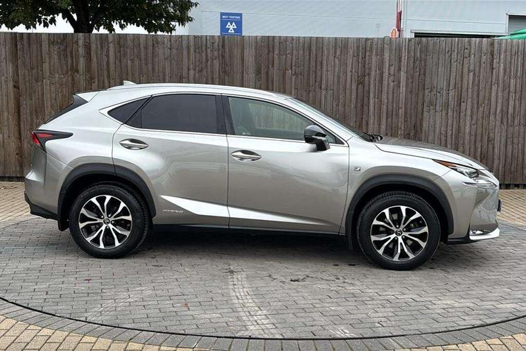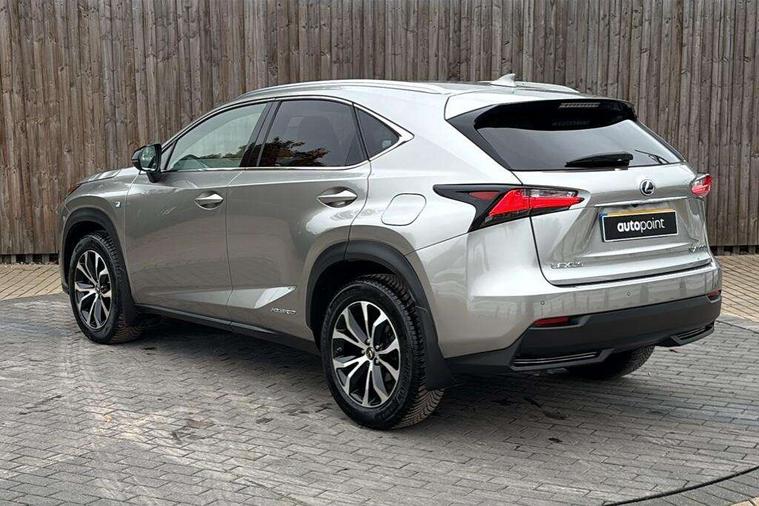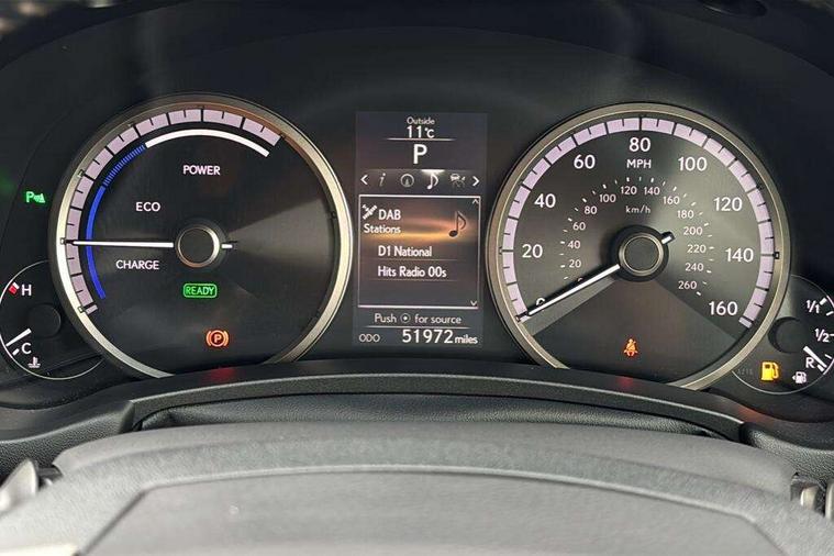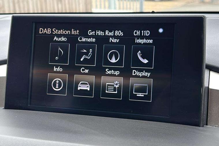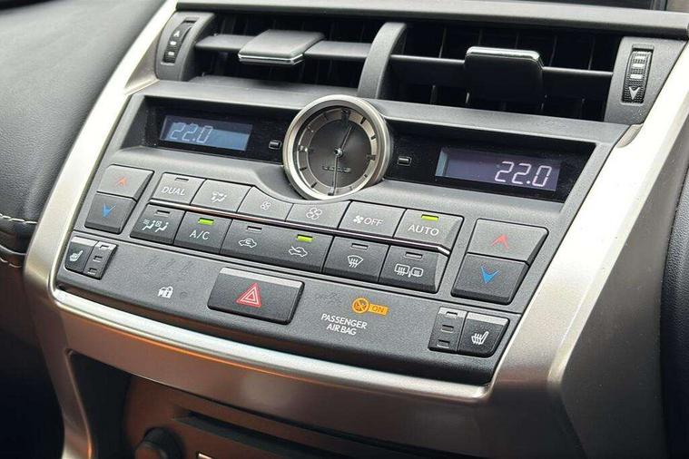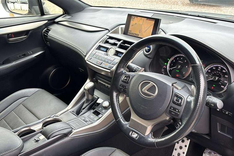 Adaptive cruise control + pre-crash system, Analogue clock, Bluetooth telephone connectivity, Drive mode selector, Front and rear parking sensors, Multimedia display, PAS, Push button starter, Reversing camera, Service interval indicator, Trip computer, Performance dampers, VDIM, Vehicle Stability Control (VSC), 8 Speakers, Aux input, DAB Digital radio, Radio/CD, Steering wheel mounted audio controls, USB connection, Black mirror caps, Body colour bumpers, Electric/heated/folding door mirrors, Electrochromatic rear view mirror, Front and rear electric windows, Headlight washers, Illuminated door handles, LED daytime running lights, LED front fog lights with static cornering light function, LED Headlights, Privacy glass, Puddle lights in exterior door handles, Rain sensor windscreen wipers, Rear wiper, Roof rails, Roof spoiler, Scuff plates, Shark fin roof aerial, 3 spoke leather steering wheel, 60/40 split folding rear seat, 8 way electrically adjustable front seats, Aluminium foot rest, Aluminium pedals, Black roof lining, Driver's lumbar support, Dual climate control air conditioning system, Electric adjustable steering column, Front armrests, Gearshift paddles, Heated front seats, Isofix child seat attachment, Leather gear lever, Leather upholstery, Rear armrest, Rear headrests, Convenience pack - NX, 3x3 point rear seatbelts, ABS, Active front headrests, Curtain airbags, Driver/Front Passenger airbags, Driver/front passenger side airbags, EBD + Brake Assist, Electronic parking brake, Front/rear seatbelt pre-tensioners, Hill start assist, Passenger airbag cut-off device, Rear passenger side airbags, Traction control, Tyre pressure warning, Alarm, Immobiliser, Remote central double locking, Smart keyless entry, Speed sensitive power door locks, Carbon interior trim, Space saver spare wheel,