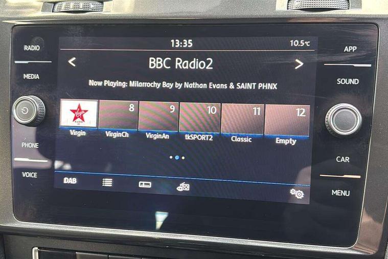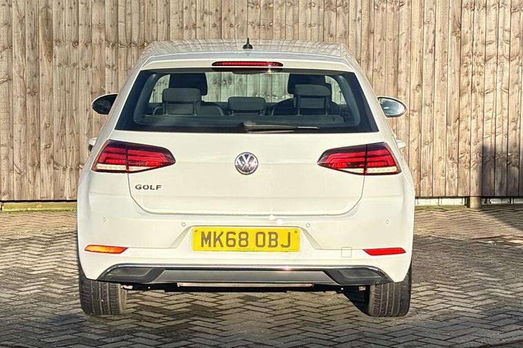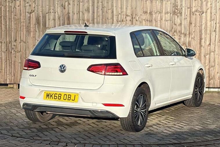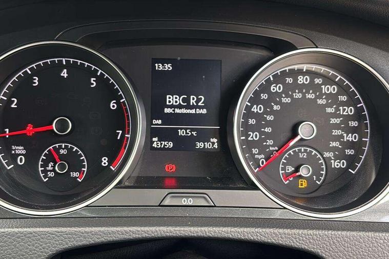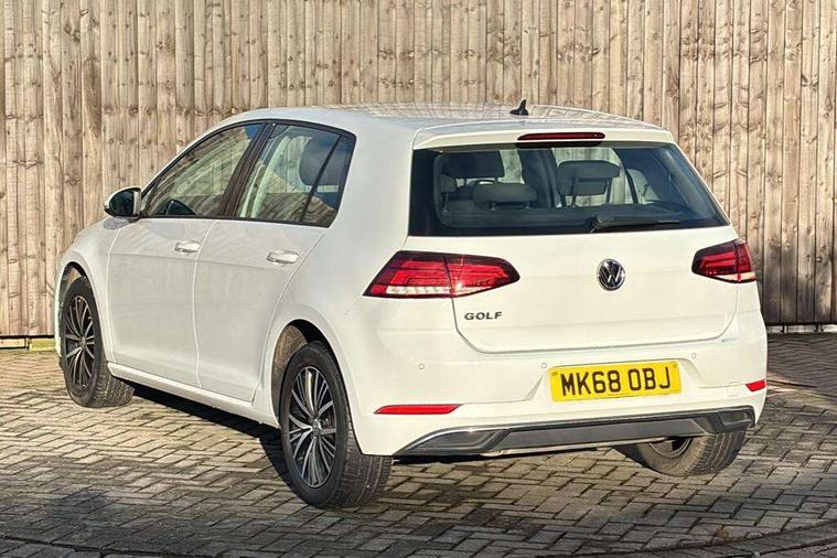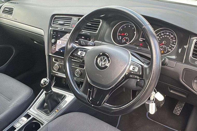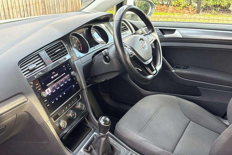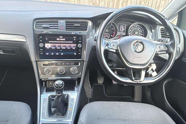 App-Connect, 'Lights On' Reminder warning buzzer, 8" colour touch screen, ACC - Adaptive cruise control with front assist, forward collision warning, distance monitoring, city emergency brake and speed limiter, Bluetooth hands free telephone connection, Brake pad wear indicator warning light, Driver alert system, Driver profile selection, Exterior temperature gauge, Front assistant collision mitigation, Instrument cluster in white, Multifunction computer, PAS - speed related, Power assisted speed sensitive electro-mechanical steering, Rev counter, Stop/start system, Trip and service interval display, Ultrasonic front and rear optical and audible parking sensors, Warning buzzer and light for front seatbelts unfastened, Battery regeneration during braking, XDS electronic differential lock, CD/MP3/WMA, USB and SD card reader, aux-in, Composition media system, DAB Digital radio receiver, Automatic coming/leaving home lighting function and rain sensor, Automatic dimming rear view mirror/rain sensor, Automatic headlights, Black front air intake and radiator grille with chrome insert, Black rear diffuser, Body colour bumpers, Body colour door handles, Body colour door mirrors with integrated indicators, Electric front windows, Electric rear windows, Electrically adjustable and heated door mirrors, Halogen headlights range adjustable via infotainment system with LED daytime running lights, Heated rear windscreen, High level 3rd brake light incorporating LED Technology, LED rear lights, Rain sensor, Rear number plate lights incorporating LED technology, Rear window aerial, Rear window wash/wipe with intermittent wipe, Reflectors in all doors, Tailgate with integrated rear roof spoiler, Windscreen wipers/ intermittent wipe + 4 position delay, 12V socket in luggage compartment, 3 rear headrests, 60/40 split folding rear seat backrest, Bag hook in luggage compartment, Boot lashing points, Cooled glovebox, Courtesy light delay, Cover for storage compartment in centre, Dust/pollen filter, Front and rear reading lights incorporating LED technology, Front centre armrest with storage compartment and two rear air vents, Front seat back storage pockets, Grab handles front x 2, rear x 2 with integrated coat hooks, Height/reach adjust steering wheel, Illuminated vanity mirrors, Instrument lighting white adjustable panel illumination, Isofix preparation for 2 rear child seats, Load through provision with rear centre armrest and cupholders x2, Luggage compartment cover, Luggage compartment light, Multifunction leather steering wheel with leather trimmed gear knob, Overhead storage box, Pearl grey headlining, Storage box in luggage compartment, Storage compartments in doors, Storage compartments in front doors, Storage compartments in rear doors, Sun visors, Three spoke multi-function leather trimmed steering wheel and gearknob, Three spoke steering wheel, Variable boot floor, height adjustable and removable, Mirror pack - Golf, 3 rear three point seatbelts, Anti-lock braking system (ABS), Automatic post collision braking system, Child locks on rear doors, Driver/Passenger optimised head restraints, Drivers and Front Passengers airbags with front passengers airbag deactivation switch, Drivers knee airbag, Electronic stability control (ESC) including Electronic differential lock (EDL) and ASR (Traction control) with deactivation via infotainment system, Front and rear curtain airbags, Front seat side impact airbags, HBA (Hydraulic Brake Assist), Pre crash preventive occupant protection, Three point height adjustable front seatbelts with tensioners, Tyre pressure loss indicator, Alarm with interior protection, Electronic engine immobiliser, Remote central locking with 2 remote folding keys, Brushed dark silver decorative inserts in dash and door panels, Polar night black centre console, Steel space saver spare wheel,
