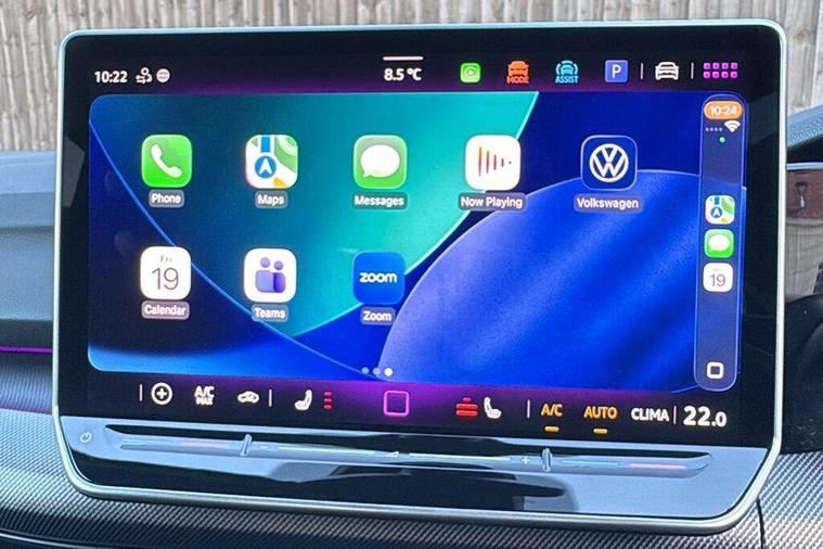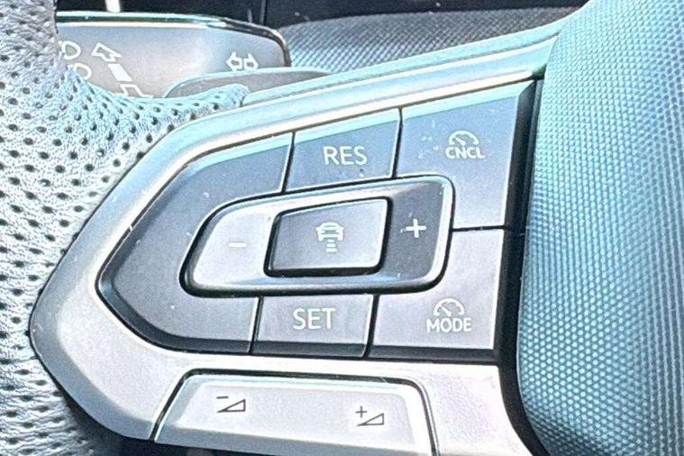 Activated carbon canister, Adaptive cruise control (ACC), Advanced driver attention and drowsiness monitor, Dynamic road sign display, Dynamic steering, E-Sim card for online connectivity, eCall emergency call system, Multi-color Digital cockpit pro, selection of different info profile possible, Multifunction front facing camera for distance control, Navigation system, Oncoming vehicle braking when turning including swerve support, Speed limiter, Speedo, rev counter, electronic odometer, trip, service interval display, exterior temperature and fuel gauge, Traffic jam assist, Voice enhancer and voice control, Warning signal and warning light for front and rear seatbelts not fastened, We connect plus preparation, We connect preparation, Wireless app connect, Hybrid propulsion system, Petrol Particulate Filter, Start-stop system with battery regeneration (recuperation - energy recovery during braking), XDS electronic differential lock for improved traction and handling, 2 USB C ports in front, 2 USB charging sockets on the centre console in the rear charging capacity upto 45W, Digital radio reception (DAB), Diversity antenna for FM reception, Gaming platform via car app, Infotainment system with 12.9" display, Mobile phone interface with inductive charging feature, 3rd brake light, Automatic headlamp activation with Coming home and Leaving home feature, Body colored bumpers in R-Line style, Body colour door handles, Exterior mirrors convex on the left and aspherical on the right, Front and rear electric windows, Heat insulating windshield made of laminated glass, LED separate daytime running light, Rear exhaust tailpipe, Rear fog light on one side and reversing lights on both sides, Rear side wing doors, Rear windscreen washer and wiper with interval delay, Remote electrically foldable door mirrors, puddle lights and reverse activated passenger's door mirror, Welcome light with surround lighting, 12V socket in front centre console, 12V socket in luggage compartment, 3 rear head restraints, 3 seat bench in 2nd row, Ambient lighting with 30 colour including LED light unit in front footwell with selectable light colour, Black roof lining, Brushed stainless steel pedals, Chrome plated radiator grille inserts, air vent surrounds and light switch surrounds, Door insert, side trim panel and arm support in leatherette, Front + rear black carpet mats, Front centre armrest, Front seat lumbar support adjuster, Integrated front head restraints, ISOFIX anchors for child seats on outer rear bench seats and on front passanger seat compatible for i-Size, Luggage compartment lighting, Manual height adjustable front passenger seat, Manually height adjustable driver seat, Plastic gear knob, Premium sports seats in front, Rear cupholder and loadthough, Sardegna cloth upholstery with front and outer rear seats Art Velour inner sides of bolsters, Single front passenger seat, Split folding backrest with centre armrest and unsplit rear seat bench, Sun visors with illuminated vanity mirrors, Titanium black instrument panel, 3 point height adj front seatbelts + pretensioners, 3 rear three point seatbelts, ABS, Autonomous emergency braking front assist with pedestrian and cyclist monitoring, Child locks on rear doors, Driver and front passenger airbag with front passenger airbag deactivation, Electronic parking brake with auto hold, ESC (Electronic Stability Control), Extended pedestrian protection measures, Hill start assist, Rear disc brakes, Two tone horn, Tyre pressure loss indicator, Volkswagen roadside assistance, Anti theft wheel bolts, Preparation for alcohol interlock, Decorative inserts carbon grey for dashboard and front door trim panels, Tool kit for tyre mobility set, Tyre mobility kit Includes 12V compressor and tyre sealant,