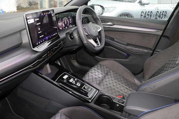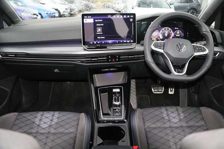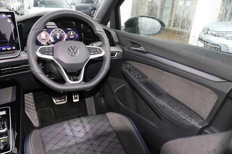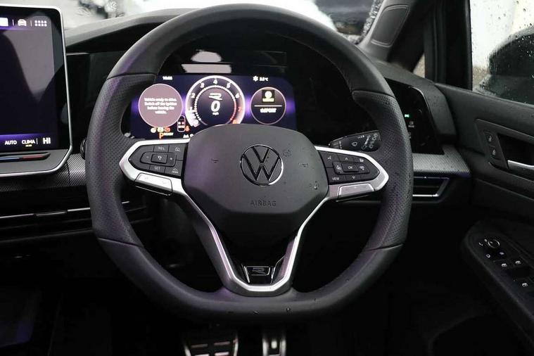 Activated carbon canister, Adaptive cruise control (ACC), Advanced driver attention and drowsiness monitor, Dynamic road sign display, Dynamic steering, E-Sim card for online connectivity, eCall emergency call system, Multi-color Digital cockpit pro, selection of different info profile possible, Multifunction front facing camera for distance control, Navigation system, Oncoming vehicle braking when turning including swerve support, Speed limiter, Speedo, rev counter, electronic odometer, trip, service interval display, exterior temperature and fuel gauge, Traffic jam assist, Voice enhancer and voice control, Warning signal and warning light for front and rear seatbelts not fastened, We connect plus preparation, We connect preparation, Wireless app connect, Hybrid propulsion system, Petrol Particulate Filter, Start-stop system with battery regeneration (recuperation - energy recovery during braking), XDS electronic differential lock for improved traction and handling, 2 USB C ports in front, 2 USB charging sockets on the centre console in the rear charging capacity upto 45W, Digital radio reception (DAB), Diversity antenna for FM reception, Gaming platform via car app, Infotainment system with 12.9" display, Mobile phone interface with inductive charging feature, 3rd brake light, Auto dimming rear view mirror, Automatic headlamp activation with Coming home and Leaving home feature, Body colored bumpers in R-Line style, Body colour door handles, Exterior ambient lighting, Exterior mirrors convex on the left and aspherical on the right, Front and rear electric windows, Heat insulating windshield made of laminated glass, LED separate daytime running light, Rain sensor, Rear exhaust tailpipe, Rear fog light on one side and reversing lights on both sides, Rear side wing doors, Rear windscreen washer and wiper with interval delay, Remote electrically foldable door mirrors, puddle lights and reverse activated passenger's door mirror, Volkswagen logo in front, illuminated lighting animation with wake up/goodbye scenario and illuminated door handles, Welcome light with surround lighting, 12V socket in front centre console, 12V socket in luggage compartment, 3 rear head restraints, 3 seat bench in 2nd row, Ambient lighting with 30 colour including LED light unit in front footwell with selectable light colour, Black roof lining, Brushed stainless steel pedals, Chrome plated radiator grille inserts, air vent surrounds and light switch surrounds, Door insert, side trim panel and arm support in leatherette, Front + rear black carpet mats, Front centre armrest, Front seat lumbar support adjuster, Integrated front head restraints, ISOFIX anchors for child seats on outer rear bench seats and on front passanger seat compatible for i-Size, Luggage compartment lighting, Manual height adjustable front passenger seat, Manually height adjustable driver seat, Plastic gear knob, Premium sports seats in front, Rear cupholder and loadthough, Sardegna cloth upholstery with front and outer rear seats Art Velour inner sides of bolsters, Single front passenger seat, Split folding backrest with centre armrest and unsplit rear seat bench, Sun visors with illuminated vanity mirrors, Titanium black instrument panel, Black exterior Styling package with Matrix LED headlights - Golf, Winter package - Golf DSG Estate/Hatchback, 3 point height adj front seatbelts + pretensioners, 3 rear three point seatbelts, ABS, Autonomous emergency braking front assist with pedestrian and cyclist monitoring, Child locks on rear doors, Driver and front passenger airbag with front passenger airbag deactivation, Electronic parking brake with auto hold, ESC (Electronic Stability Control), Extended pedestrian protection measures, Hill start assist, Rear disc brakes, Two tone horn, Tyre pressure loss indicator, Volkswagen roadside assistance, Anti theft wheel bolts, Preparation for alcohol interlock, Decorative inserts carbon grey for dashboard and front door trim panels, 18" Leeds alloy wheels, Tool kit for tyre mobility set, Tyre mobility kit Includes 12V compressor and tyre sealant,