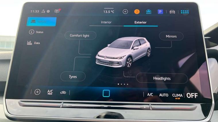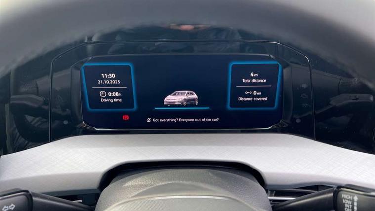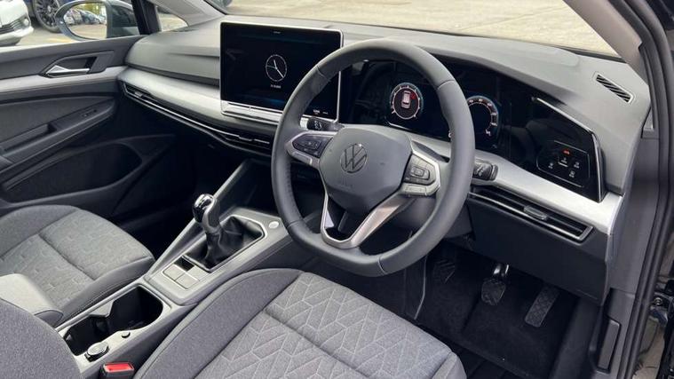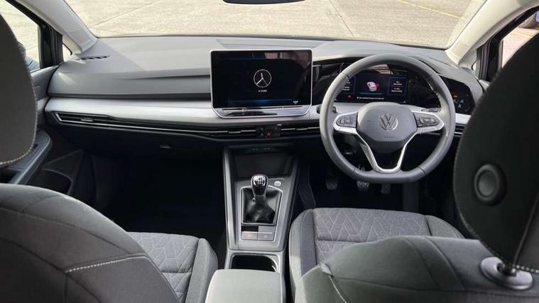Activated carbon canister, Adaptive cruise control (ACC), Advanced driver attention and drowsiness monitor, Dynamic road sign display, E-Sim card for online connectivity, eCall emergency call system, Multi-color Digital cockpit pro, selection of different info profile possible, Multifunction front facing camera for distance control, Navigation system, Oncoming vehicle braking when turning including swerve support, Speed limiter, Speedo, rev counter, electronic odometer, trip, service interval display, exterior temperature and fuel gauge, Voice enhancer and voice control, Warning signal and warning light for front and rear seatbelts not fastened, We connect plus preparation, We connect preparation, Wireless app connect, Petrol Particulate Filter, Start-stop system with battery regeneration (recuperation - energy recovery during braking), XDS electronic differential lock for improved traction and handling, 2 USB C ports in front, 2 USB charging sockets on the centre console in the rear charging capacity upto 45W, Digital radio reception (DAB), Diversity antenna for FM reception, Gaming platform via car app, Infotainment system with 12.9" display, Mobile phone interface with inductive charging feature, 3rd brake light, Automatic headlamp activation with Coming home and Leaving home feature, Body colour door handles, Body colour door mirrors, Exterior mirrors convex on the left and aspherical on the right, Front and rear electric windows, Heat insulating windshield made of laminated glass, LED separate daytime running light, Rear exhaust tailpipe, Rear fog light on one side and reversing lights on both sides, Rear side wing doors, Rear tinted glass 65% light absorbing from B pillar backwards, Rear windscreen washer and wiper with interval delay, Remote electrically foldable door mirrors, puddle lights and reverse activated passenger's door mirror, Standard bumpers, Welcome light with surround lighting, 12V socket in front centre console, 12V socket in luggage compartment, 3 rear head restraints, 3 seat bench in 2nd row, Chrome plated radiator grille inserts, air vent surrounds and light switch surrounds, Front centre armrest, Front head restraints, ISOFIX anchors for child seats on outer rear bench seats and on front passanger seat compatible for i-Size, Leather gearshift handle, Luggage compartment lighting, Manual height adjustable front passenger seat, Rear cupholder and loadthough, Single front passenger seat, Soul black instrument panel, Split folding backrest with centre armrest and unsplit rear seat bench, Standard pedal cluster, Storm grey roof lining, Sun visors with illuminated vanity mirrors, Parking and comfort pack - Golf Estate/Hatchback, 3 point height adj front seatbelts + pretensioners, 3 rear three point seatbelts, ABS, Autonomous emergency braking front assist with pedestrian and cyclist monitoring, Child locks on rear doors, Driver and front passenger airbag with front passenger airbag deactivation, Electronic parking brake with auto hold, ESC (Electronic Stability Control), Extended pedestrian protection measures, Rear disc brakes, Two tone horn, Tyre pressure loss indicator, Volkswagen roadside assistance, Anti theft wheel bolts, Preparation for alcohol interlock, Nature cross brushed decorative inserts for dashboard and front door panels,