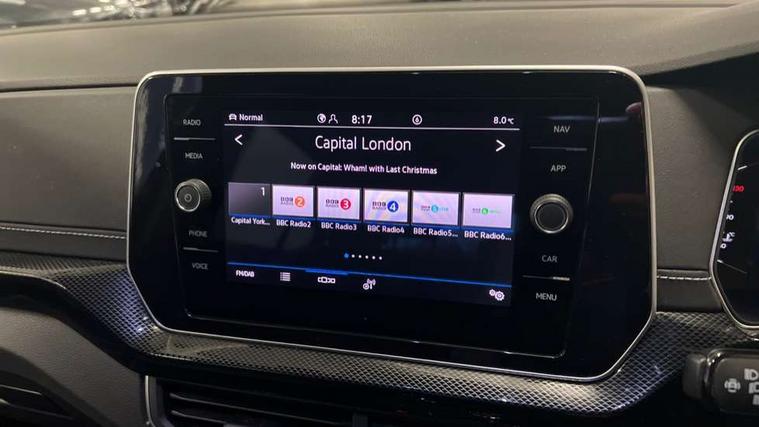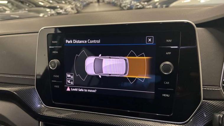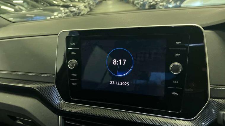 'Lights On' Reminder warning buzzer, 10.25" Digital cockpit pro, Advanced driver attention and drowsiness monitor, Blind spot monitoring, Car information display, Driver profile selection including ECO function, Dynamic road sign display, E-Sim card for online connectivity, eCall emergency call system, Front and rear parking sensors, Front assist, forward collision warning, autonomous emergency braking and speed limiter, Low washer fluid warning light, Multifunction computer with visual gear change recommendation for fuel consumption, Multifunction front facing camera for distance control, Operating permit alteration, Power assisted steering, Predictive adaptive cruise control, Preparation for navigation system with media and internet package, Preparation for We connect and We connect plus, Semi-automated driving assistance, travel assist including lane keeping system Lane Assist and emergency assisst, Speedo, rev counter, electronic odometer, trip, service interval display, exterior temperature and fuel gauge, Warning sound and light for doors and tailgate open, Warning sound and light for front seatbelts unfastened, Wireless Car net app connect with Apple CarPlay, combined functionality of Apple CarPlay/Android Auto and MirrorLink, Wireless charging, Misfuel prevention device, Start-stop system with battery regeneration (recuperation - energy recovery during braking), 2 USB C ports in front, 2 USB charging sockets on the centre console in the rear charging capacity upto 45W, Diversity antenna for FM reception, Music playback - MP3, WMA and AAC files, Radio, Automatic dimming interior rear view mirror, Automatic hazard lights activation under emergency braking, Automatic headlight control with LED separate daytime running light and coming home and leaving home feature, Body colour door handles, Body colour door mirrors, Body coloured bumpers, Dynamic headlight range control with self adjusting whilst driving, Electric folding door mirror, adjustable, heated with front passenger exterior mirror lowering function, Exterior mirrors convex on the left and aspherical on the right, Front and rear electric windows, Front door sill protectors with R-Line logo, Galvanised body, Heat insulating and laminated safety glass windshield, Heat insulating darkened glass in side and rear windows, High Beam Assist, automatic sensing for switching between dipped and main beam, LED rear combination lights, LED third brake light, Lower door sills and door pillars in black, Privacy glass for rear side windows and rear window, Rain sensor, Rear fog light on one side, reversing light on both sides, Rear side wing doors, Rear window aerial, Rear window wiper with intermittent control, Reflectors in all doors, Scuff plates, Tailgate with integrated roof spoiler, 12V Accessory socket in centre console, 2 Front and rear reading lights incorporating LED technology, 3 rear head restraints, 3 seat bench in 2nd row, 60/40 split folding rear seat backrest, Air care climatronic 2 zone air conditioning system, Ambient lighting, Brushed stainless steel pedals, Chrome plated radiator grille inserts, air vent surrounds and light switch surrounds, Cloth upholstery, Comfort front sport seats, Door and side trim panel, Drawer under drivers seat, Driver and front passenger sunvisor with vanity mirror, Dust and pollen filter, Front + rear carpet mats, Front centre armrest with storage compartment, Front footwell illumination, Front seat back storage pockets, Glove compartment door with light, Heated front seats, Heating and fresh air system with 4 stage blower, Height/reach adjust steering wheel, Instrument lighting white adjustable panel illumination, Interior light with switch off delay and dimmer, Isofix anchors for child seats on outer rear seats and front passenger seats, Leather gearshift handle, Leather wrapped multifunction steering wheel, Luggage compartment floor, Luggage compartment lighting, Manual front seats with height adjustment, Padded dashboard, Removable luggage compartment cover, Single front passenger seat, Storage compartment in drivers and front passengers door, Titanium black roof lining, Unsplit sliding rear seat bench, 3 point outer rear seat belts with ECE label, 3 Point seatbelt for centre rear seat, Anti-lock Braking System (ABS) with Hydraulic Brake Assist (HBA), Automatic post collision braking system, Disc brakes in front, Disc brakes in rear, Driver and front passenger safety-optimised head restraints, Drivers and Front Passengers airbags with front passengers airbag deactivation switch, ESC with EDL and ASR (traction control), Extended and predictive pedestrian/cyclist protection, Front and rear passenger curtain airbag system including front side airbags, Height adjustable front 3 point seatbelts + pretensioners, Hill start assist, Pre crash preventive occupant protection, Proactive passenger protection system in combination with front assist, Rear door child safety locks, Rigid safety cell with front and rear crumple zones, Single tone horn, Tyre pressure loss indicator, Volkswagen roadside assistance, Alarm with interior protection, Anti theft alarm system, Electronic engine immobiliser, Remote tailgate unlocking using key fob, Titanium Black Decorative inserts - R Line, Low rolling resistance tyres,