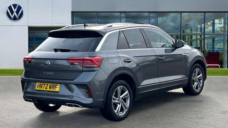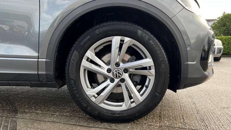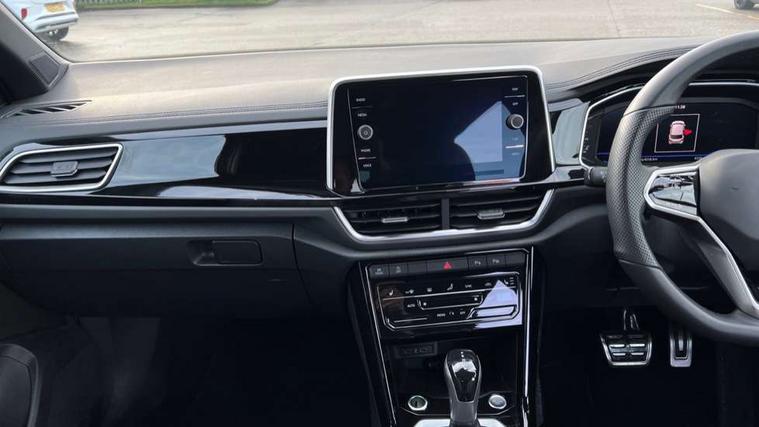 10.25" Digital cockpit pro, Bluetooth mobile phone interface, Driver alert system with fatigue detection, Driver tips and journey analysis, Emergency call service, Lane keeping system Lane Assist, Modified key software - reduce switch off time for key status change to Long no motion, Online services, Park assist including front and rear parking sensors, Service interval indicator, Tailgate/trunk lid release from outside, Think blue trainer driver tips and journey analysis, Warning sound and light for front seatbelts unfastened, Wireless app connect, Battery regeneration during braking, Start/stop function with battery regeneration, Diversity antenna for FM reception, Front and rear 6 speakers, Music playback - MP3, WMA and AAC files, Premium USB cable in choice of either Apple or Android smartphone compatibility, SD card slot, Simultaneous pairing of 2 compatible mobile devices, Title and cover art display, We Connect and We Connect Plus functionality, 3rd brake light, Auto dimming interior rear view mirror, Automatic hazard lights activation under emergency braking, Automatic headlight control with LED separate daytime running lights with coming/leaving home function, Extended roof spoiler, Exterior mirrors aspherical on driver side, convex on front passenger side, External USB type C socket and charging sockets, Front windscreen wiper with intermittent wipe and 4 position delay, Heated rear window, LED Plus headlamps, LED rear combination lamps, LED rear number plate lights, LED tail lamp rear comination lamps, Power windows with comfort operation and circuit breaker, R-Line design body coloured bumpers, Rain sensor, Rear exhaust tailpipe, Rear fog light on one side and reversing lights on both sides, Rear side wing doors, Rear wash/wipe with intermittent wipe setting, Remote electrically foldable door mirrors, puddle lights and reverse activated passenger's door mirror, 12V power socket in centre console, 3 rear head restraints, 3 seat bench in 2nd row, 4 load lashing points in luggage compartment, Air care climatronic air conditoning system with active combination filter and 2-zone temperature control, Black roof lining, Chrome plated radiator grille inserts, air vent surrounds and light switch surrounds, Door and side trim panel with leatherette insert, Drawer under drivers seat, Front + rear carpet mats, Front centre armrest, Front cupholders x 2, Front footwell illumination, Front reading light, Front scuff plates with R logo, Instrument lighting, white adjustable panel illumination, Interior ambient lighting and surround lighting, Interior light delay, Isofix child seat preparation, Leather gearshift handle, Load-through provision with cup holder when folded down ('Unsplit rear seat bench, split folding backrest, with centre armrest), Luggage compartment lighting, Single front passenger seat, Stainless steel pedals, Storage compartment in left and right luggage area, Storage compartment in rear doors, Storage compartments in driver and front passenger doors, Sunvisors with illuminated vanity mirrors, Variable boot floor, height adjustable and removable, Driver assistance pack without proactive passenger protection - T-Roc, 3 point height adj front seatbelts + pretensioners, 3 point seatbelts in outer rear with ECE label, ABS, Child locks on rear doors, Driver and front passenger airbag with front passenger airbag deactivation, Driver and front passenger safety-optimised head restraints, Drivers seatbelt reminder, Electronic parking brake, Electronic Stability Control (ESC) inc EDL (Electronic Differential Lock) and ASR (Traction Control), Front and rear passengers curtain airbag system including front side airbags, Front assist with city emergency braking and pedestrian monitoring, Front seat side impact airbags, Hill start assist, Predictive pedestrian protection, Rear disc brakes, Single tone horn, Tyre pressure loss indicator, Volkswagen roadside assistance, Alarm with interior protection, Anti-theft alarm system with interior monitoring, backup horn, and towing protection, Remote central locking with SAFELOCK, radio remote control with 2 remote control folding keys, Trims for alloy wheels,