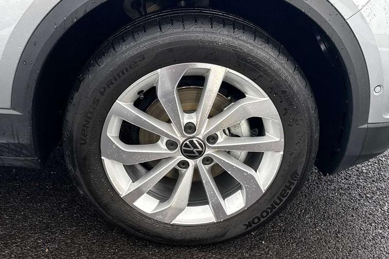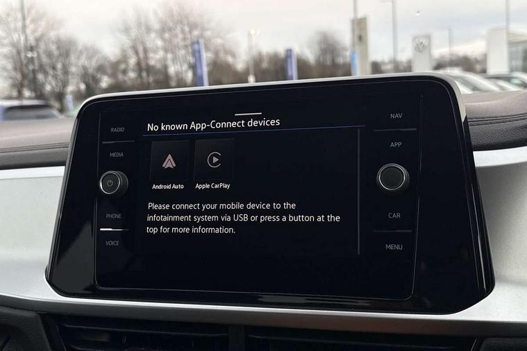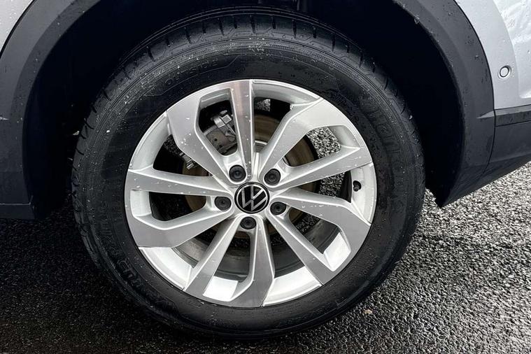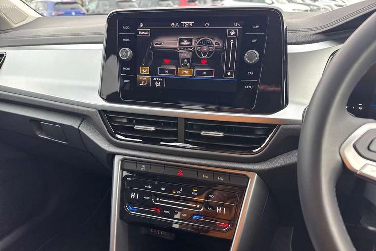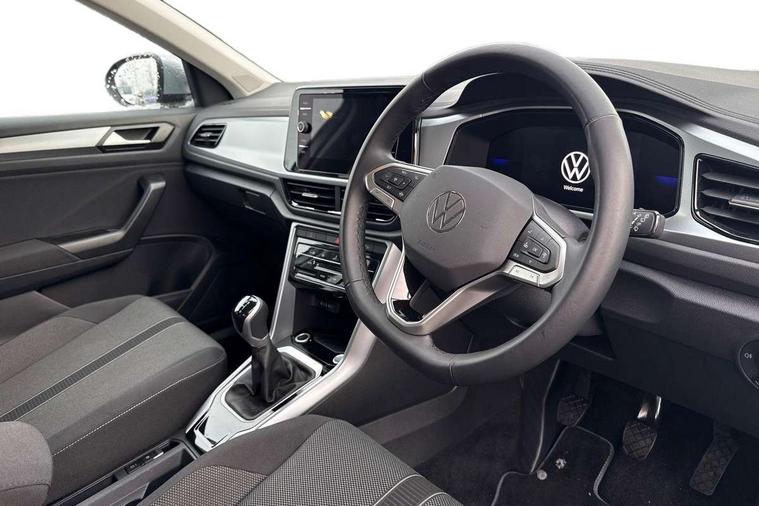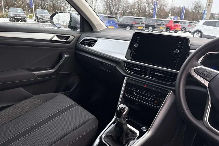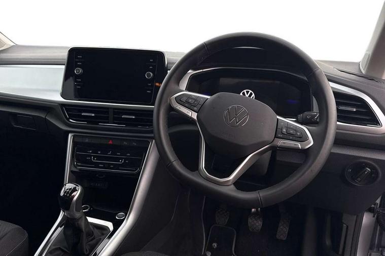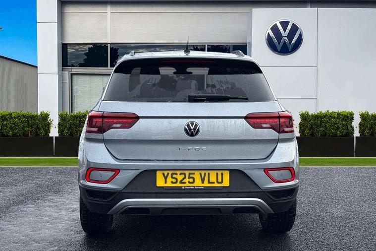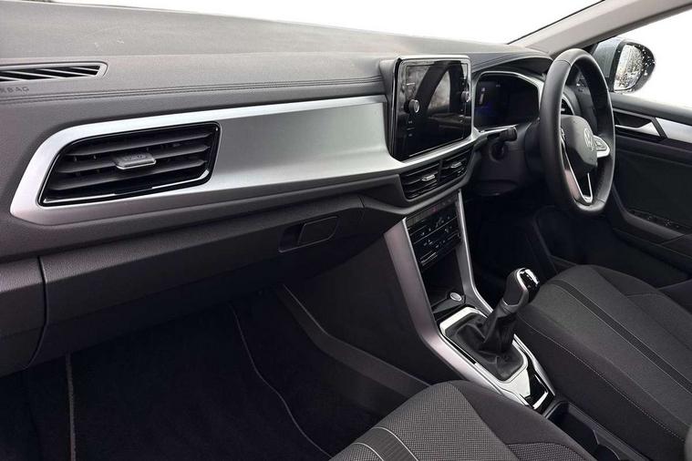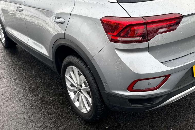 Advanced driver attention and drowsiness monitor, Dynamic road sign display, Emergency call service, Lane keeping system Lane Assist, Mobile phone interface, Modified key software - reduce switch off time for key status change to Long no motion, Online services, Park assist including front and rear parking sensors, Power assisted speed sensitive steering, Rear view camera, Service interval indicator, Tailgate/trunk lid release from outside, Think blue trainer driver tips and journey analysis, Warning sound and light for front seatbelts unfastened, Wireless app connect, Battery regeneration during braking, Front shock absorption, Rear shock absorption chassis with increased ride height, Start/stop function with battery regeneration, DAB Digital radio, Diversity antenna for FM reception, Music playback - MP3, WMA and AAC files, SD card slot, Simultaneous pairing of 2 compatible mobile devices, Title and cover art display, We Connect and We Connect Plus functionality, Auto dimming interior rear view mirror, Automatic hazard lights activation under emergency braking, Automatic headlight control with LED separate daytime running lights with coming/leaving home function, Black roof rails, Body coloured bumpers and radiator grille with chrome trim and front fog lamps with chrome bezel, Body coloured exterior mirror housings and door handles, Electrically adjustable and heated door mirrors, Extended roof spoiler, Exterior mirrors aspherical on driver side, convex on front passenger side, External USB type C socket and charging sockets, Front windscreen wiper with intermittent wipe and 4 position delay, Heated rear window, LED 3rd brake light, LED rear combination lamps, LED rear number plate lights, Power windows with comfort operation and circuit breaker, Privacy glass for rear side windows and rear window, Rain sensor, Rear exhaust tailpipe, Rear fog light on one side and reversing lights on both sides, Rear side wing doors, Rear wash/wipe with intermittent wipe setting, Remote electrically foldable door mirrors, puddle lights and reverse activated passenger's door mirror, 12V power socket in centre console, 3 rear head restraints, 3 seat bench in 2nd row, 4 load lashing points in luggage compartment, Air care climatronic air conditoning system with active combination filter and 2-zone temperature control, Black stitching for floor mats, Ceramique roof liner, Cloth upholstery, Door and side trim panel in cloth, Drawer under drivers seat, Driver/front passenger seat height adjustment, Front centre armrest, Front comfort sports seats, Front cupholders x 2, Front reading light, Front seat back storage pockets, Glove compartment door with light, Instrument lighting, white adjustable panel illumination, Interior ambient lighting and surround lighting, Interior light delay, Isofix child seat preparation, Leather gearshift handle, Load-through provision with cup holder when folded down ('Unsplit rear seat bench, split folding backrest, with centre armrest), Luggage compartment lighting, Lumbar support for driver's and front passengers seat, Non-folding front passenger seat backrest, Single front passenger seat, Storage compartment in left and right luggage area, Storage compartment in rear doors, Storage compartments in driver and front passenger doors, Sunvisors with illuminated vanity mirrors, Variable boot floor, height adjustable and removable, Driver assistance pack without proactive passenger protection - T-Roc Life/Match, 3 point height adj front seatbelts + pretensioners, 3 point seatbelts in outer rear with ECE label, ABS, Child locks on rear doors, City emergency braking and pedestrian monitoring, Driver and front passenger airbag with front passenger airbag deactivation, Driver and front passenger safety-optimised head restraints, Drivers seatbelt reminder, Electronic parking brake, Electronic Stability Control (ESC) inc EDL (Electronic Differential Lock) and ASR (Traction Control), Front and rear passengers curtain airbag system including front side airbags, Front disc brakes, Hill start assist, Predictive pedestrian protection, Rear disc brakes, Two tone horn, Tyre pressure loss indicator, Volkswagen roadside assistance, Alarm with interior protection, Keyless locking and starting system keyless access with safelock, Pewter matt decorative inserts for intrument panel, centre console and door panels at the front, Trims for alloy wheels,