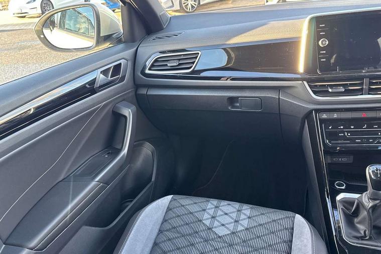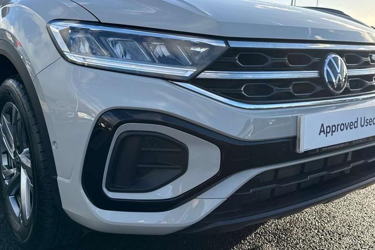10.25" Digital cockpit pro, Advanced driver attention and drowsiness monitor, Emergency call service, Lane keeping system Lane Assist, Mobile phone interface, Modified key software - reduce switch off time for key status change to Long no motion, Online services, Park assist including front and rear parking sensors, Service interval indicator, Tailgate/trunk lid release from outside, Think blue trainer driver tips and journey analysis, Warning sound and light for front seatbelts unfastened, Wireless app connect, Battery regeneration during braking, Start/stop function with battery regeneration, DAB Digital radio, Diversity antenna for FM reception, Front and rear 6 speakers, Music playback - MP3, WMA and AAC files, Premium USB cable in choice of either Apple or Android smartphone compatibility, SD card slot, Simultaneous pairing of 2 compatible mobile devices, Title and cover art display, We Connect and We Connect Plus functionality, Auto dimming interior rear view mirror, Automatic hazard lights activation under emergency braking, Automatic headlight control with LED separate daytime running lights with coming/leaving home function, Body coloured exterior mirror housings and door handles, Electrically adjustable and heated door mirrors, Extended roof spoiler, Exterior mirrors aspherical on driver side, convex on front passenger side, External USB type C socket and charging sockets, Front windscreen wiper with intermittent wipe and 4 position delay, Heated rear window, LED 3rd brake light, LED rear combination lamps, LED rear number plate lights, Power windows with comfort operation and circuit breaker, Privacy glass for rear side windows and rear window, R-Line design body coloured bumpers, Rain sensor, Rear exhaust tailpipe, Rear fog light on one side and reversing lights on both sides, Rear side wing doors, Rear wash/wipe with intermittent wipe setting, Remote electrically foldable door mirrors, puddle lights and reverse activated passenger's door mirror, 12V power socket in centre console, 3 rear head restraints, 3 seat bench in 2nd row, 4 load lashing points in luggage compartment, Air care climatronic air conditoning system with active combination filter and 2-zone temperature control, Black roof lining, Chrome plated decorative trims, Chrome plated radiator grille inserts, air vent surrounds and light switch surrounds, Door and side trim panel with leatherette insert, Front + rear carpet mats, Front centre armrest, Front cupholders x 2, Front footwell illumination, Front reading light, Front scuff plates with R Line logo, Front seat back storage pockets, Glove compartment door with light, Instrument lighting, white adjustable panel illumination, Interior ambient lighting and surround lighting, Interior light delay, Isofix child seat preparation, Leather gearshift handle, Load-through provision with cup holder when folded down ('Unsplit rear seat bench, split folding backrest, with centre armrest), Luggage compartment lighting, Single front passenger seat, Stainless steel pedals, Storage compartment in left and right luggage area, Storage compartment in rear doors, Storage compartments in driver and front passenger doors, Sunvisors with illuminated vanity mirrors, Variable boot floor, height adjustable and removable, Driver assistance pack without proactive passenger protection - T-Roc, 3 point height adj front seatbelts + pretensioners, 3 point seatbelts in outer rear with ECE label, ABS, Child locks on rear doors, City emergency braking and pedestrian monitoring, Driver and front passenger airbag with front passenger airbag deactivation, Driver and front passenger safety-optimised head restraints, Drivers seatbelt reminder, Electronic parking brake, Electronic Stability Control (ESC) inc EDL (Electronic Differential Lock) and ASR (Traction Control), Front and rear passengers curtain airbag system including front side airbags, Hill start assist, Predictive pedestrian protection, Rear disc brakes, Two tone horn, Tyre pressure loss indicator, Volkswagen roadside assistance, Piano black decorative inserts in dashboard and front door trim panels, Trims for alloy wheels,