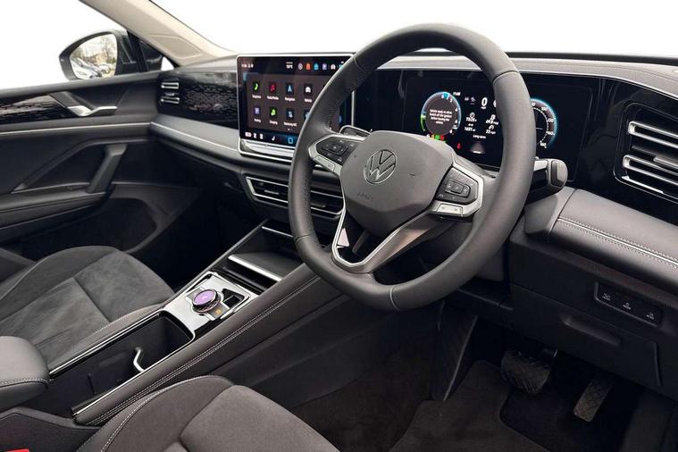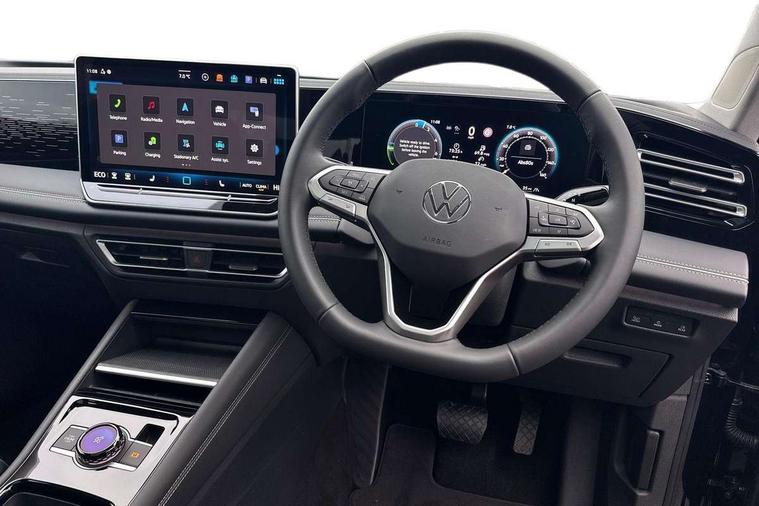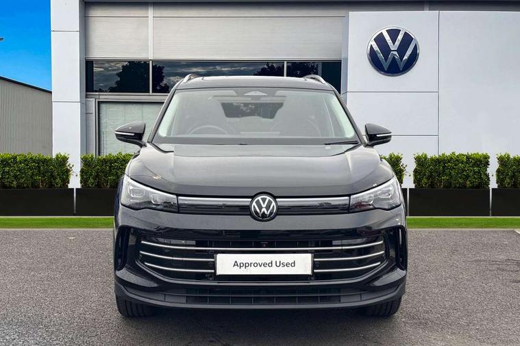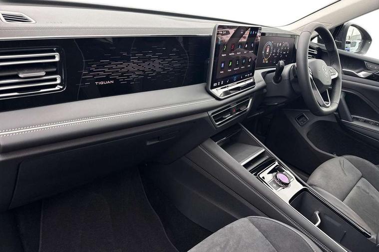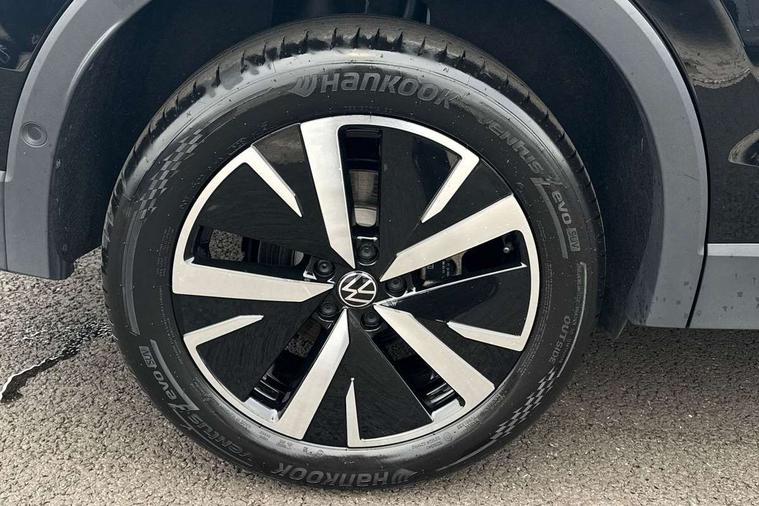 Adaptive cruise control (ACC), Advanced driver attention and drowsiness monitor, Bluetooth mobile phone interface, Car2X technology, Comfort drive travel assist, lane keeping system, lane assist and emergency assist, Digital Cockpit Pro - 10.25" high resolution dash display screen with customisable menus and information, Dynamic road sign display, E-Sim card for online connectivity, eCall emergency call service, Front Assist - Autonomous emergency braking with pedestrian and cyclist monitoring, Lane change system, Side assist, Rear traffic alert and Exit warning system, Multifunction front facing camera, Oncoming vehicle braking when turning including swerve support, Park assist pro with park distance control (Remote park assist), Power assisted steering with speed sensitive, Start/stop system with regenerative braking, Warning signal and warning light for front and rear seatbelts not fastened, Wireless App-Connect, Adaptive chassis control DCC pro includes driving mode selection, Charging cable Mode 3 Type 2 / 3 (16A), Front shock absorption, Front wheel drive, Rear shock absorption, Digital radio reception (DAB), Diversity antenna for FM reception, Air intake with Chrome trim, Ambient lighting with logo projection, Auto dimming interior rear view mirror, Automatic headlight control system, Body colored bumpers in R-Line style, Body coloured door handles, Body-coloured exterior mirror housings, Chrome moldings on the side windows, Coming/leaving home lighting function, Heat insulating glass in side and rear windows, Heated rear window, Heated windscreen washer jets, High level 3rd brake light, Illuminated door handle recesses, Illuminated lightline between headlamps, Laminated safety glass from B-pillar backwards 90% tinted, Laminated safety glass windshield, LED Day time running light, Rain sensor windscreen wipers, Rear fog light on one side, reversing light on both sides, Rear side wing doors, Rear wiper, Silver roof rails, 12V outlet in center console rear and in luggage compartment, 12V socket in centre console, 3 bench rear seats in 2nd row, Air care climatronic 3 zone air conditioning system with rear air conditioning control panel, Carpet mats, front and rear, Centre console with illuminated storage compartment with sliding cover and two drinks holders, Ceramique headlining, Chrome elements on the mirror switch and power window switches and door pulls, Door and side trim panel with leatherette insert, Door sill protectors, Front centre armrest, Interior ambient lighting with 30 colour options, ISOFIX anchors for child seats on outer rear seats and front passenger seat compatible with i-Size, Mechanical rear seat release, Power adjustable lumbar support in front, Rear bench seat, split folding, longitudinally movable and folding with load-through hatch and centre armrest, Safety optimised front head restraints, Single front passenger seat, Sports comfort seats in front, Sun visors with illuminated vanity mirrors, Three rear head restraints, Variable luggage compartment floor, Comfort package with park assist plus and Safelock - Tiguan, Driver assistance package - Tiguan, 3 point seat belt for centre rear seats, 3 Point seat belts in front with pretensioners, 3 point seatbelts in outer rear with ECE label, Driver and front passenger airbag with front passenger airbag deactivation, Electronic parking brake with auto hold, Front and rear curtain airbags, Front and rear side airbags, Front centre airbag, Front disc brakes, Hill start assist, Manual child proof rear door locks, Rear disc brakes, Two tone horn, Warning triangle, Decorative inserts Cross in dash and front door panels, Interior door handle in matte chrome, Soul instrument panel, Tyre mobility kit including compressor and sealing foam,