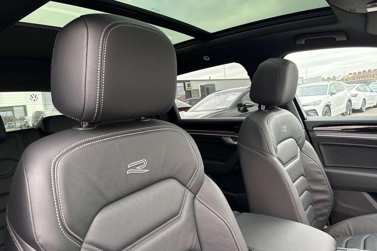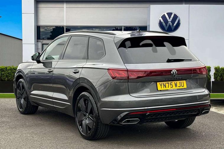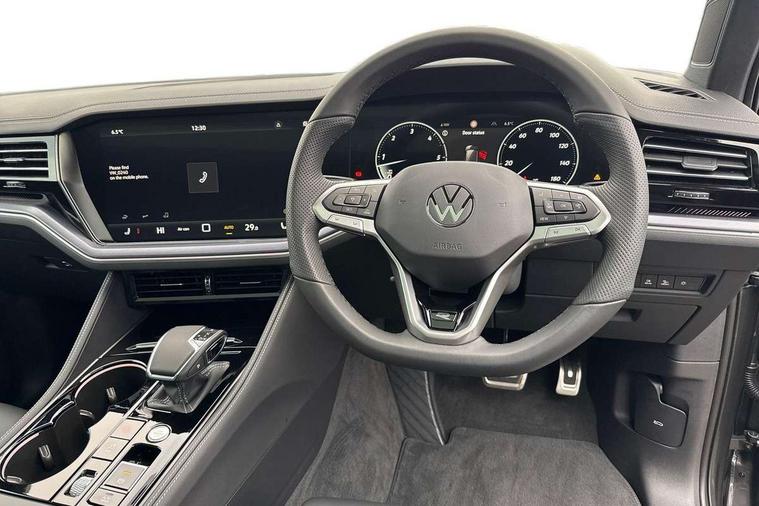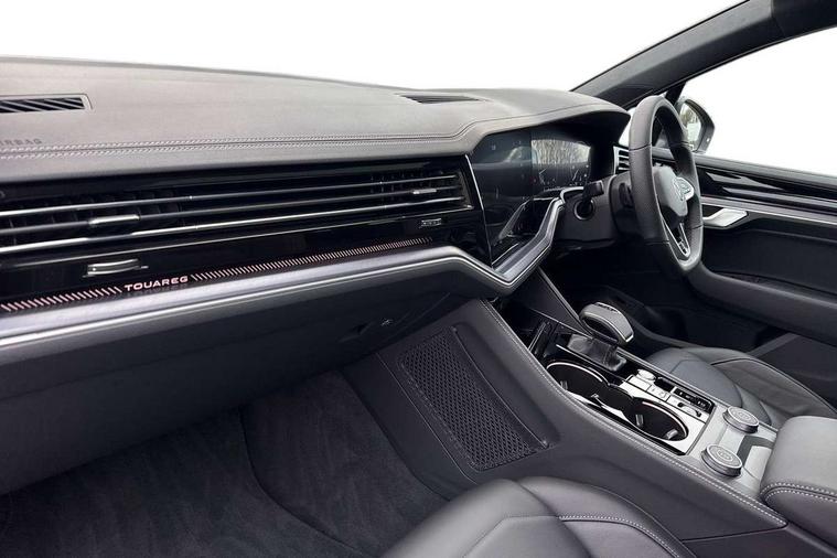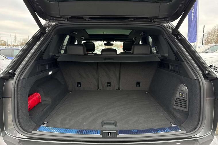 15" Screen Top infotainment system Premium (MIB3), Adaptive cruise control, Advanced driver attention and drowsiness monitor, Driver profile selection, Dynamic road sign display, E-Sim card for online connectivity, eCall emergency system, Innovision cockpit, Intelligent park assist, Mobile phone interface with inductive charging, Multi-colour Active Info display, Park Assist - Sensor controlled steering aid to assist parallel or bay parking, PAS, Warning signal and warning light for front and rear seatbelts not fastened, Wireless app connect, Adaptive chassis control, DAB Digital radio, Diversity antenna for AM/ FM reception, We Connect and We Connect Plus functionality, Automatic coming/leaving home lighting function, Automatic headlights, Black door mirrors, Black style comfort bumpers, Dynamic headlight range control with dynamic cornering light, Electric front tilt/slide panoramic sunroof and fixed rear sunroof, Electrically power adjustable, heated, folding, auto dimming, front passenger exterior door mirror lowering function, External USB type C socket and charging sockets, Gloss black roof rails, HD LED Matrix beam plus digital headlight projection with variable light distribution, Headlight washers, Heat insulating darkened glass in side and rear windows, Highway light, LED 3rd brake light, LED daytime running lights, LED rear combination lamp with variable lighting functions and special styling, Poor weather light, Privacy glass for rear side windows and rear window, tinted glass from B pillar backwards - 80%, Rain sensor, Rear exhaust tailpipe, Rear fog light with back up light on both sides, Rear light bar and illuminated logo, Rear side wing doors, Rear wiper, Stainless steel door sill protection, 12V socket in centre console, 3 rear headrests, 3 seat bench in 2nd row, 4 zone climate control, Airbag label on sun visor and B-pillar, Brushed stainless steel pedals, Double sun visors with illuminated vanity mirrors, Front + rear carpet mats, Front centre armrest, Leather wrapped multifunction sports steering wheel, heated, with touch control and shift paddles, Mechanical rear seat release, Power adjustable lumbar support in front, Power seats in front, right side with memory features and seat cushion depth adjustment, Rear seat backrest and split folding with center armrest, Single front passenger seat, Extra acoustics pack - Touareg, Memory pack plus - Touareg, 3 point seatbelts, outer rear with ECE lable, ABS, Child locks on rear doors, Curtain airbags, Driver and front passenger safety-optimised head restraints, Driver/Front Passenger airbags, Extended pedestrian protection measures, Front assist, Front seat side impact airbags, Generative braking with start and stop system, Height adjustable 3 point front seatbelts with pre tensioners, Passenger airbag deactivate switch, Three 3 point rear seatbelts, Two tone horn, Warning triangle and first aid kit, Alarm system with interior protection, Easy open and close sensor controlled luggage compartment opening and closing with remote unlocking, Keyless Access Keyless locking and starting system with SAFELOCK, Aluminium decorative inserts, Black decorative trims, Gloss black decorative inserts in centre console, Tool kit,