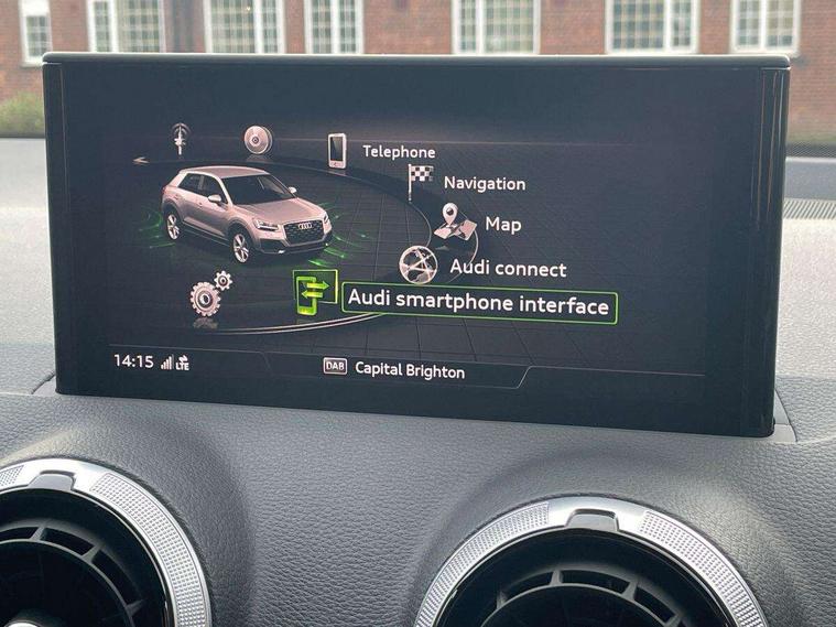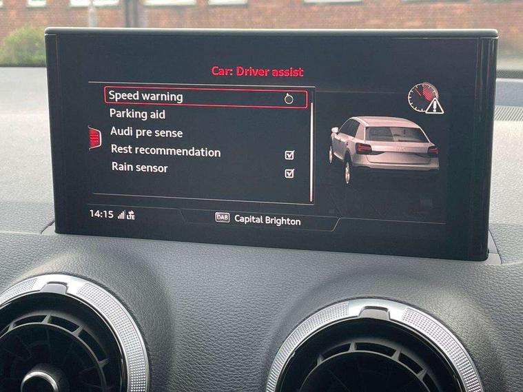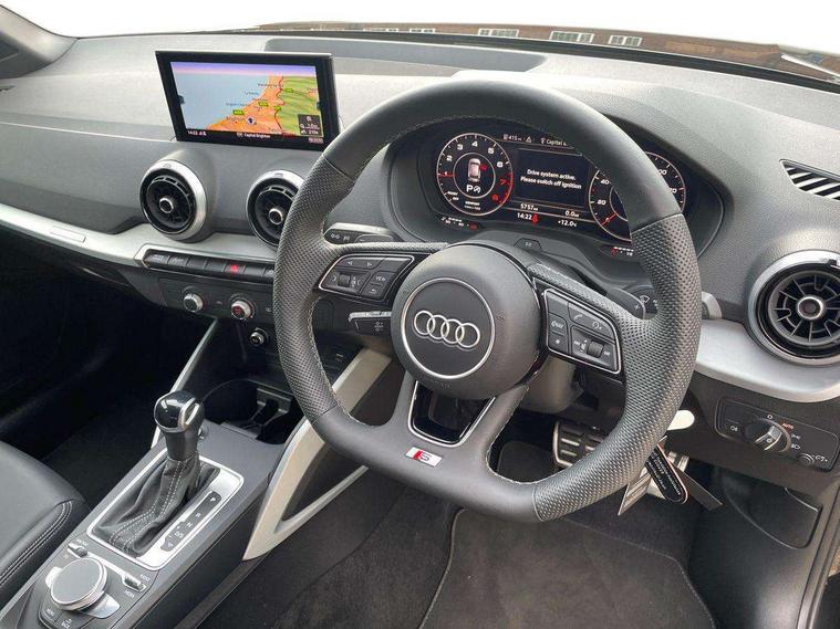 3D map display, Audi connect navigation and infotainment includes innovative services, Audi connect remote and control connects your vehicle to your smartphone, Audi drive select: S tronic - power steering assistance + engine + gearshift (modes: comfort, auto, dynamic, efficiency, individual), Audi smartphone interface - Apple carplay/Android Auto, USB connect, 2xSDXC card readers, voice control for navi, telephone, music and 3rd party apps, Audi virtual cockpit, Automatic start/stop system with recuperation, Bluetooth interface includes bluetooth audio streaming, Cruise control, E-call, Jukebox hard drive memory for music (10GB), MMI navigation plus with 8.3" colour MMI screen and MMI touch, Natural voice recognition, Power operated tailgate, Progressive steering, Rear parking sensors, Sport suspension, 6 passive loudspeakers, DAB Digital radio, Audi beam, Auto dimming rear view mirror, Black window trims, Bumper in full body colour paint finish, Electrically adjustable, folding, auto dimming and heated door mirrors with integrated LED side indicators, Front windscreen with grey tinted sunband, LED daytime running lights, LED headlights with dipped beam, high beam, position lights, indicators, LED rear lights, LED third brake light, Privacy glass - dark tinted rear and rear side windows from B-pillar backwards, Rear side wing doors, Rear wiper, Variable front intermittent wipers, Wheel arch trims in manhattan grey, 12v socket in front, 3 seat bench in 2nd row, 3 spoke flat bottomed multi-function leather sport steering wheel with gear shift paddles, 4-way electric lumbar support for front seats including manual seat height adjustment for both front seats, 60/40 split folding rear seat bench, Black carpets, Black cloth headlining, Front and rear head restraints, Front centre armrest, Front sport seats, Front/rear floor mats, Height/reach adjust steering wheel, Illuminated door sill trims with S logo, ISOFIX child seat mounting in front passenger and rear outer seats, Manual air conditioning, Single front passenger seat, Stainless steel pedals, Tool kit, Black styling pack - Q2, 3x3 point rear seatbelts, 6 airbags - Front, curtain and front side airbags, Electromechanical parking brake, Electronic stabilisation control including ABS, ASR and EDL, Front passenger airbag deactivation, Hill hold assist, Pre-sense front with pedestrian recognition, Seatbelt monitoring, Tyre pressure warning light with visual and acoustic warning, Warning triangle and first aid kit, Anti theft alarm, Anti theft wheel bolts, Electronically operated child locks, Remote central door locking, Aluminium interior element, Black dashboard, Matt brushed aluminium trim inlays,