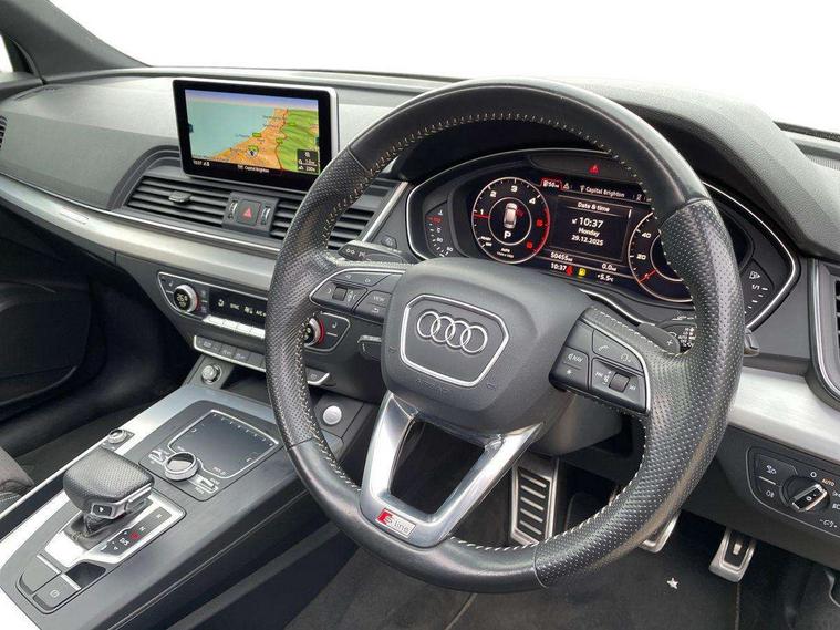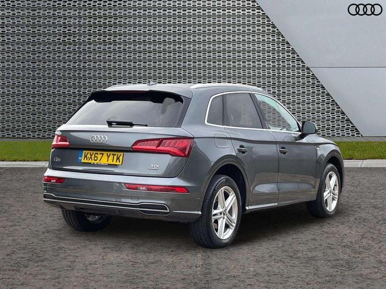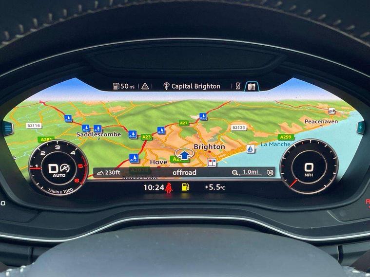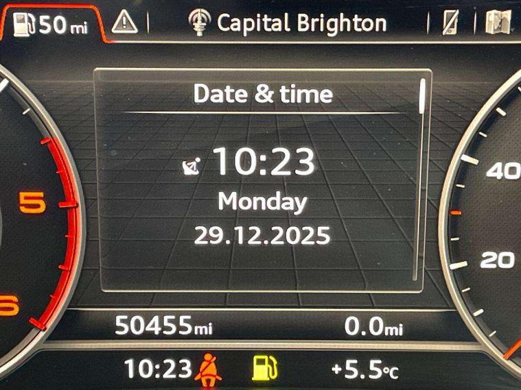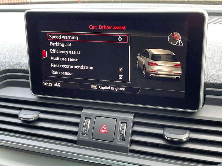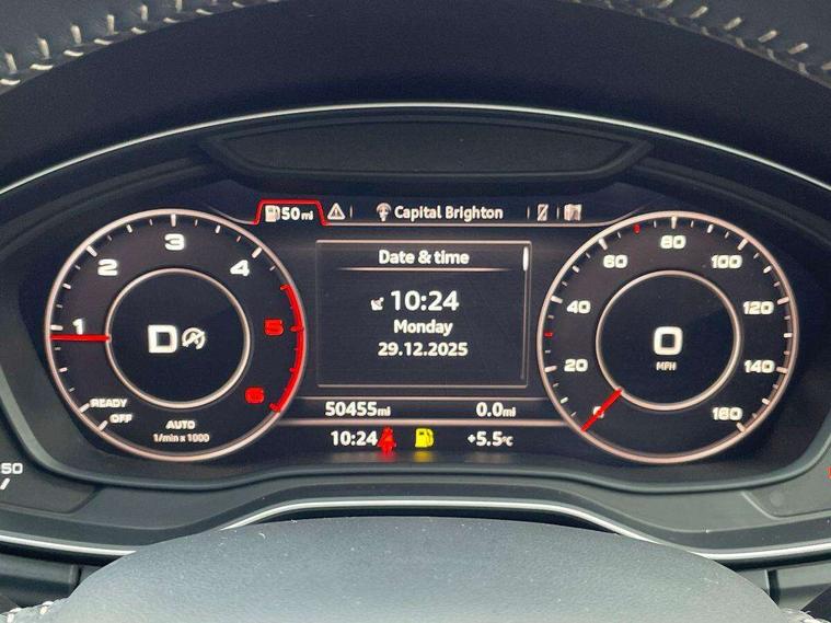 Audi connect, Audi drive select, Audi Pre sense collision avoidance, Audi smartphone interface, Driver information centre with colour display in instrument panel, Electric power steering, Power tailgate, SD card based MMI navigation, Service interval indicator, Voice control system, Diesel particulate filter, 2 USB ports, Auxiliary input socket, CD player, DAB Digital radio, MMI radio plus with 7" colour MMI screen and MMI controller, Acoustic windscreen, Aluminium roof rails, Aluminium sill plates, Auto dimming rear view mirror, Black high gloss front air inlet in matt aluminium effect, Body colour bumpers, Body colour door mirrors, Body colour rear diffuser insert, Chrome exhaust tailpipe, Electric headlight adjustment, Electrically adjustable and heated door mirrors, Front and rear electric windows, Front fog lights, Headlight range control, Headlight washers, Honeycomb side air inlet in titan black, Light and rain sensor for auto activation of lights and windscreen wipers, Loading sill protector in stainless steel, Privacy glass with front acoustic glazing, Rear diffuser strip in matt aluminium silver, Rear spoiler, Rear wiper, S Line side skirts, Selenite silver underbody guard, Twilight grey matt radiator grille with matt aluminium horizontal chrome struts, 3 rear headrests, 3 zone climate control, 4 way electric lumbar support for driver and front passenger, 40:20:40 split folding rear bench seat, Black cloth headlining, Front centre armrest with 12v socket, Front sports seats, Front/rear floor mats, Height adjustable driver's seat, Height adjustable front head restraints, Illuminated door sills, Isofix front passenger and rear seat preparation, Jack and tool kit, Load compartment cover, Luggage compartment carpet, Matt selenite silver door inserts, Perforated leather gearknob, Reach + rake adjustable steering column, Removable luggage compartment floor, Removable net partition, Roller blind loadspace cover, Stainless steel pedals, Sunvisors with vanity mirrors, Non Smokers pack, 3 point seatbelts on all seats, ABS, Curtain airbags, Driver and passenger airbags, Driver and passenger side airbags, Electromechanical parking brake, ESC with ASR, ESP, First aid kit, Front passenger airbag deactivation, Hill descent control, Seat belt force limiter, Seatbelt warning lamp, Traction control, Tyre pressure monitor, Warning triangle, Locking wheel bolts, Remote central locking, Thatcham category 1 alarm + immobiliser, Contrast stitching,