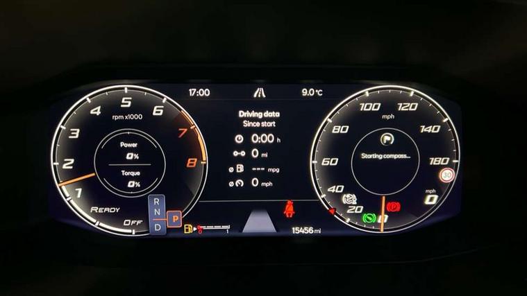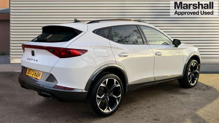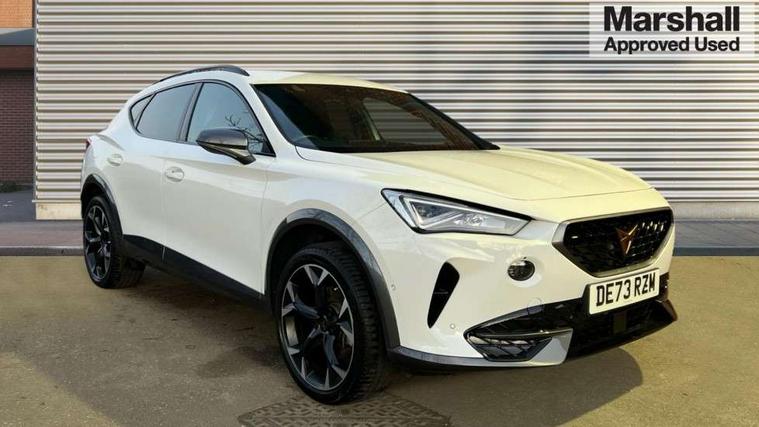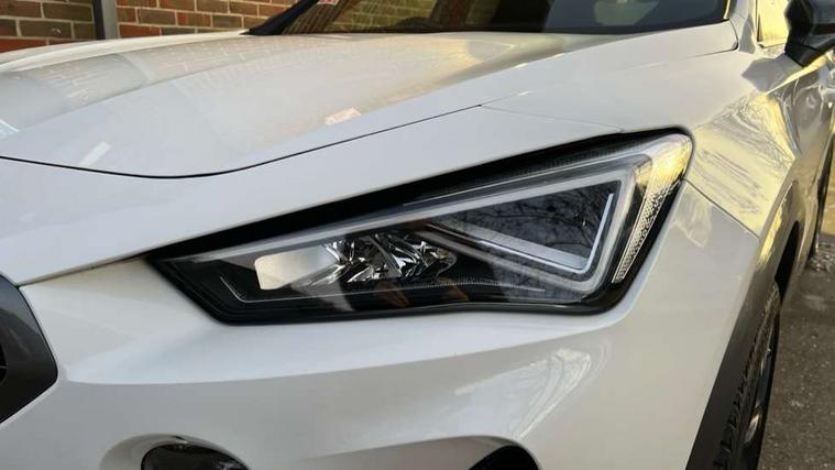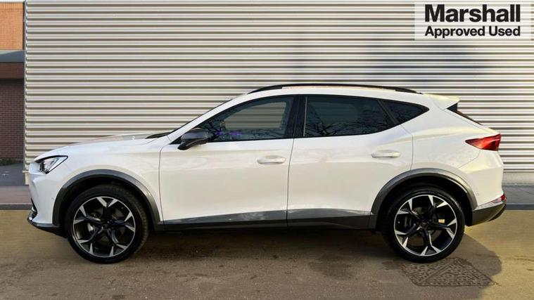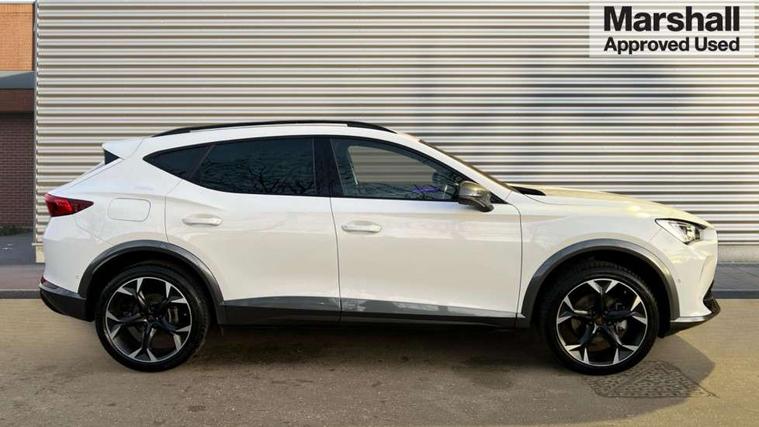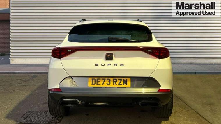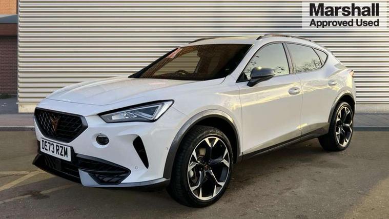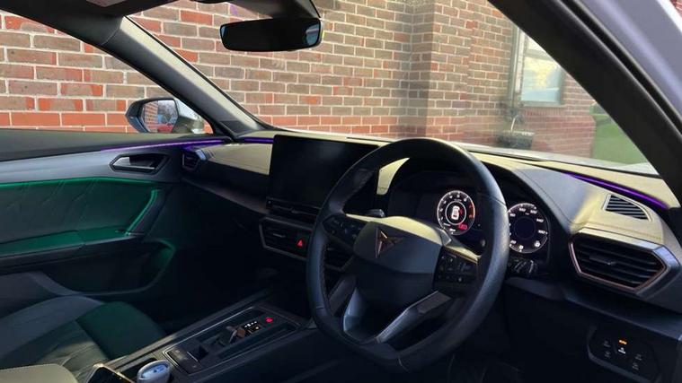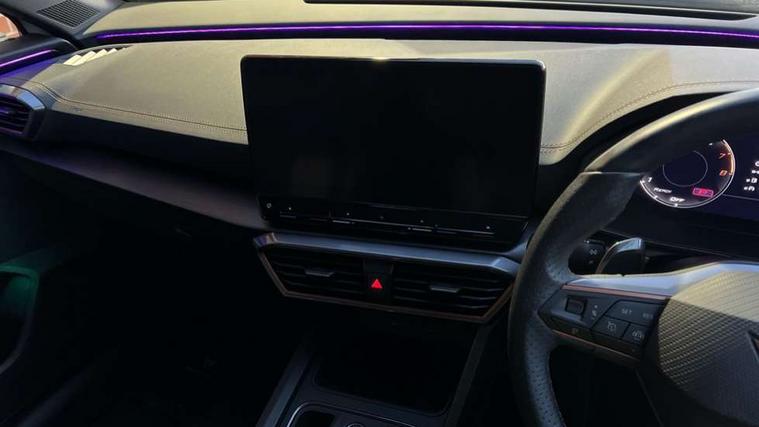 Digital cockpit and configurable dashboard, Driver alert system, Driving profile selection, Forward collision warning with automatic braking, Lane assist, Navigation system with 12'' Touchscreen Display, Park assist (inc front/rear parking sensors), PAS, Predictive adaptive cruise control with speed limiter, Rear view camera, RPM, trip computer, outside temp gauge, instrument light brightness, low fuel warning light, lights on reminder, gearshift indicator, Service interval indicator, Start/stop system with regenerative braking, Voice control system, Wired Android Auto, Wireless apple carplay, Wireless phone charger, Electronic locking differential and dynamic traction support, Standard suspension, 2 front and 2 rear USB type C sockets, Auxiliary input socket, DAB radio, Auto dimming rear view mirror, Body colour door handles, Body coloured bumpers, Dark grey wing mirror, Daytime running light with automatic headlight control and coming home feature, Dynamic headlight range control, Electric front/rear windows, Electrically adjustable heated and folding door mirrors with memory function, Front fog lamps with cornering function, Gloss black roof rails and window surrounds, LED Headlights, LED Taillights with dynamic indicator, Rain sensing wipers, Rear diffuser with black simulated exhaust pipes, Rear side wing doors, Rear wash/wipe, Third brake light, Tinted rear windows, Welcome lights, 12v power supply in centre console, 12V socket, 12v socket in loadspace, 2 front and 2 rear reading lights, 230V socket, 3 seat bench in 2nd row, 60/40 split rear bench seat with armrest and mechanical seat release, Black headlining, Dust/pollen filter, Front and rear head restraints, Front centre armrest, Height/reach adjust steering wheel, Illuminated interior front door sills, Illuminated sunvisor with mirror, Isofix, Leather multi function heated steering wheel with gear shift paddles, Luggage tie-down hooks, Single front passenger seat, Three zone climate control with control panel in rear, Variable luggage/load compartment floor, Wraparound lighting, Genuine Nappa leather Pack - Cupra, 3 point seatbelts on all rear seats, ABS, Brake control system - ESC and brake booster, Child proof door locks, Driver and front passenger airbags with front passenger airbag de-activation, Electronic parking brake, Front and rear disc brakes, Front side curtain airbags, Hill hold control, Public e-call, Seat belt reminder for front and rear seats, Tyre pressure monitoring system, Anti theft alarm system, Keyless entry and start system (KESSY), Locking wheel bolts, Copper and aluminium interior detailing, 19" 'Exclusive' machined sport matte black and silver alloy wheels,